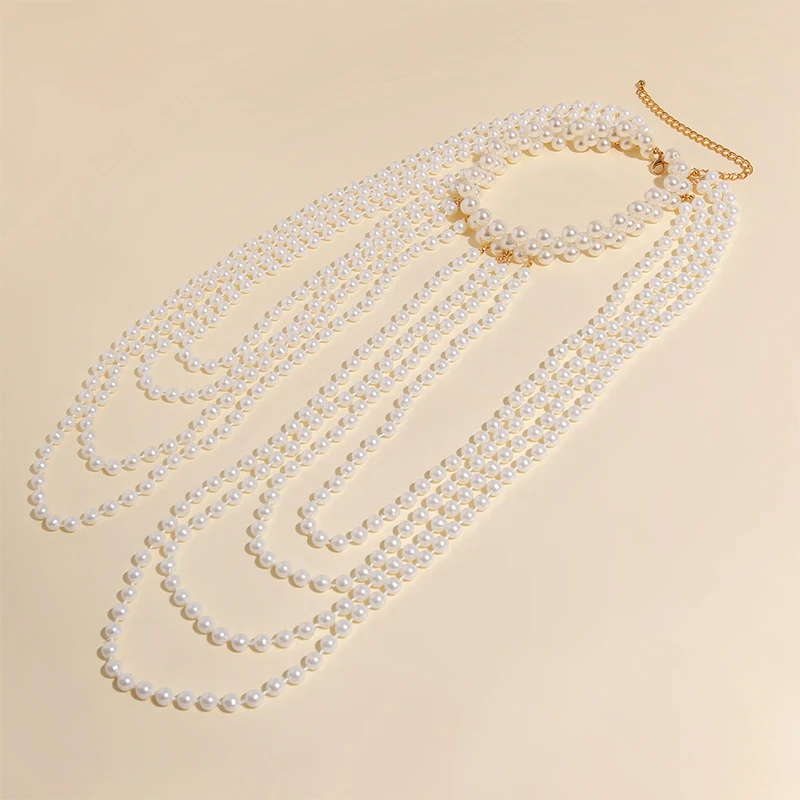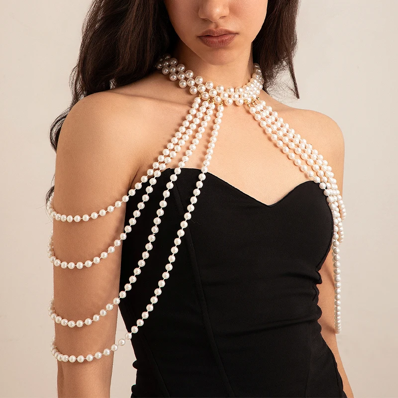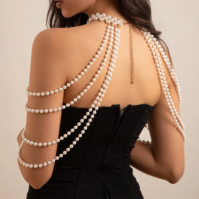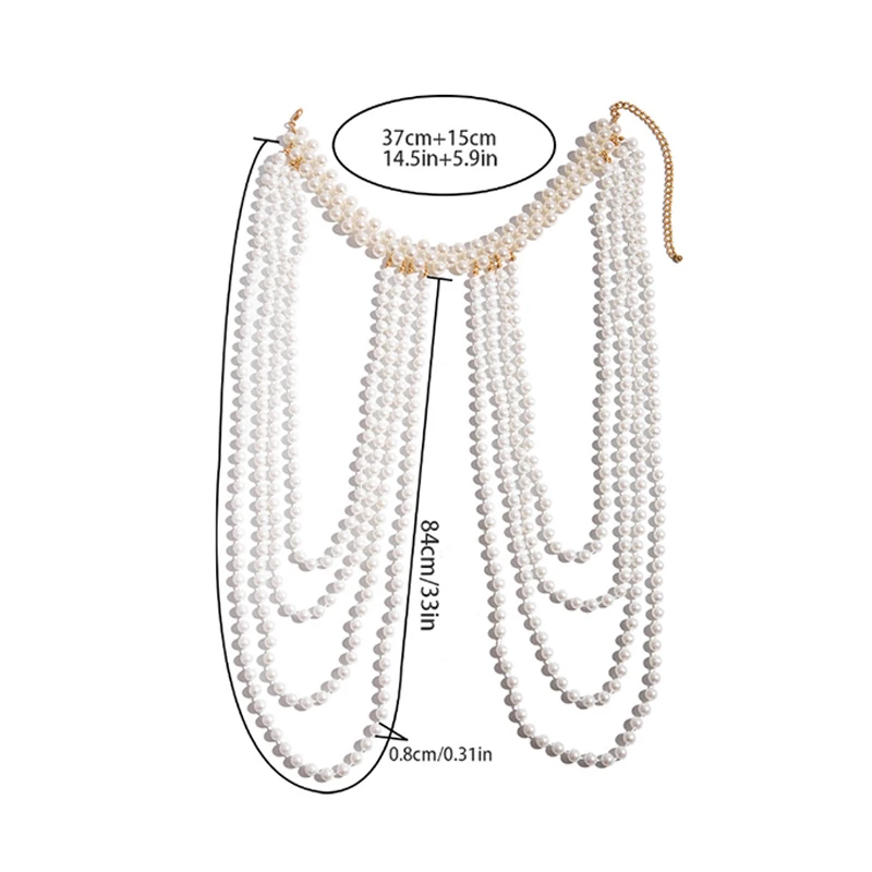 Boho Tassel Imitation Pearl Bridal Shoulder Chain Necklace for Women Elegant Shawl Jewelry Accessories Bridal Tassel Body Chain
