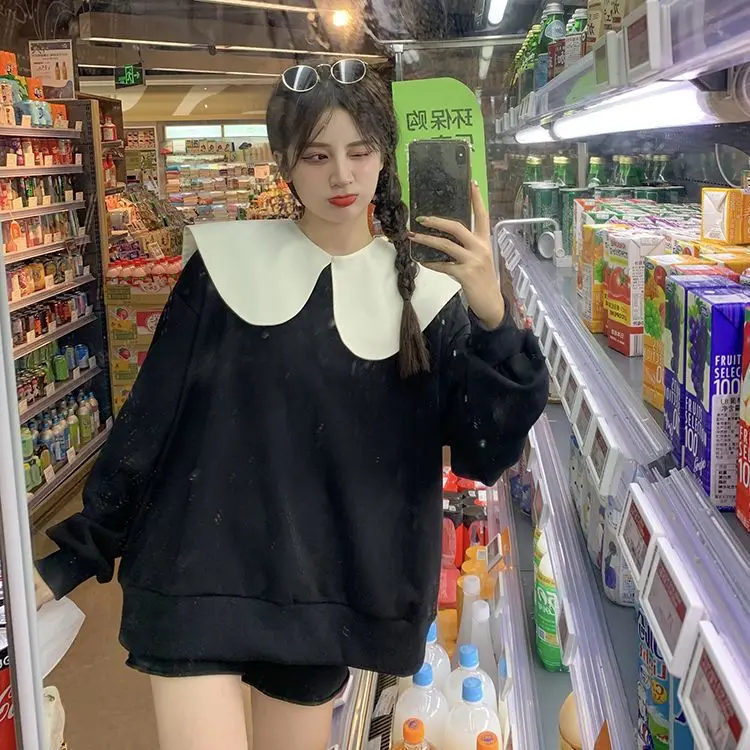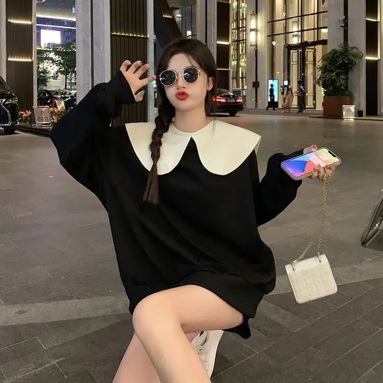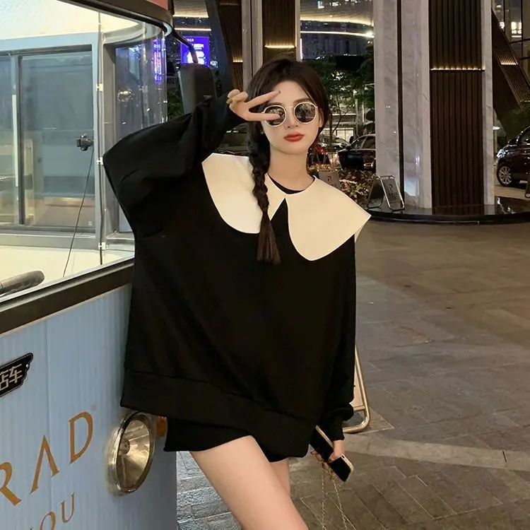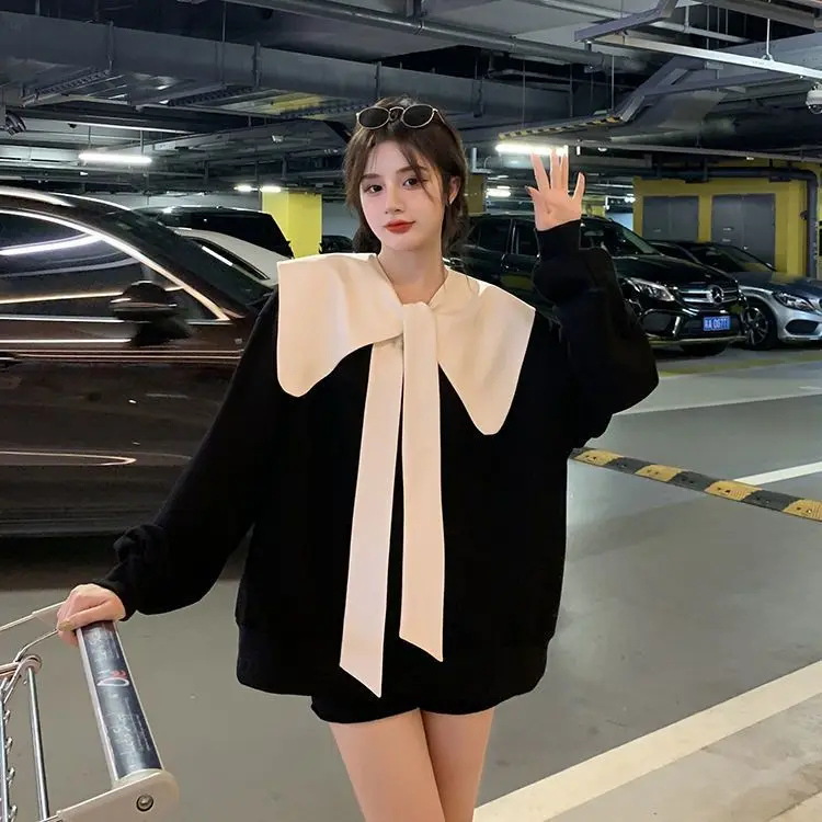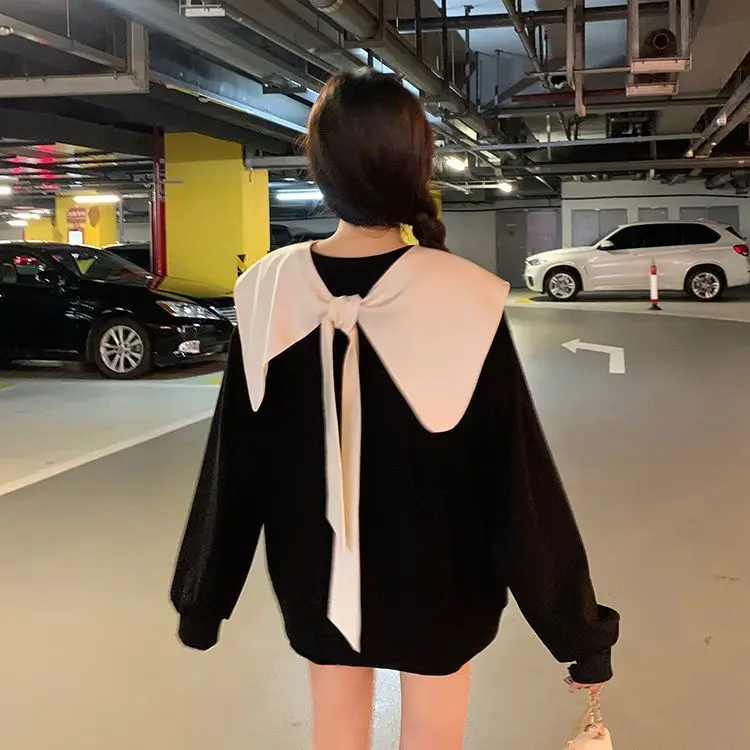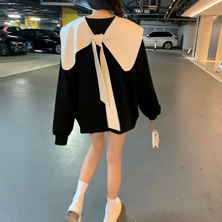 Bow Doll Collar Sweatshirt for Women New Style Loose Sweet Hoodless Petite Fashionable Age-reducing Top clothes