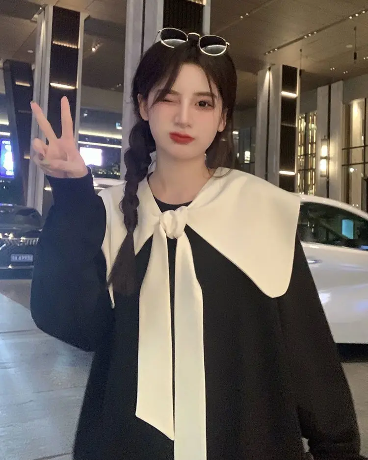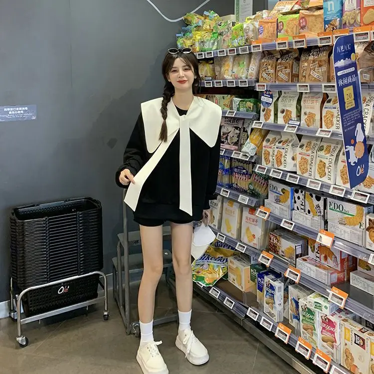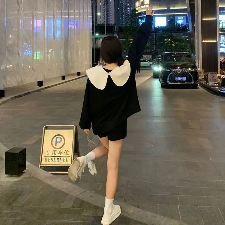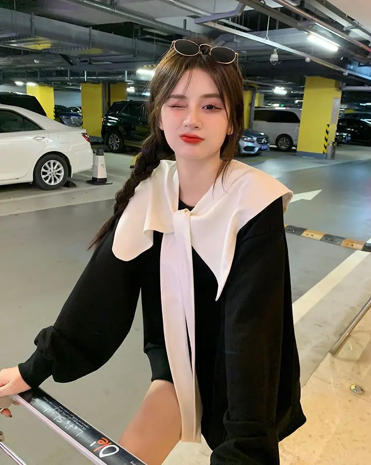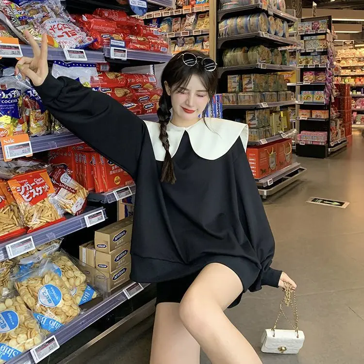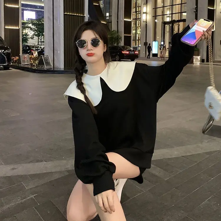 Bow Doll Collar Sweatshirt for Women New Style Loose Sweet Hoodless Petite Fashionable Age-reducing Top clothes