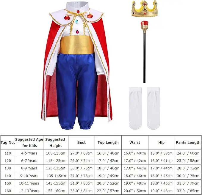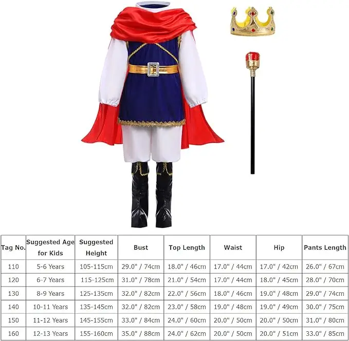 Boys Prince Charming Costume for Toddler Kid Medieval Royal Prince Jacket Pants Crown Dress Up Party Outfit