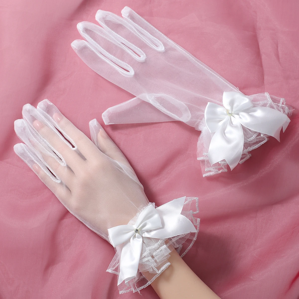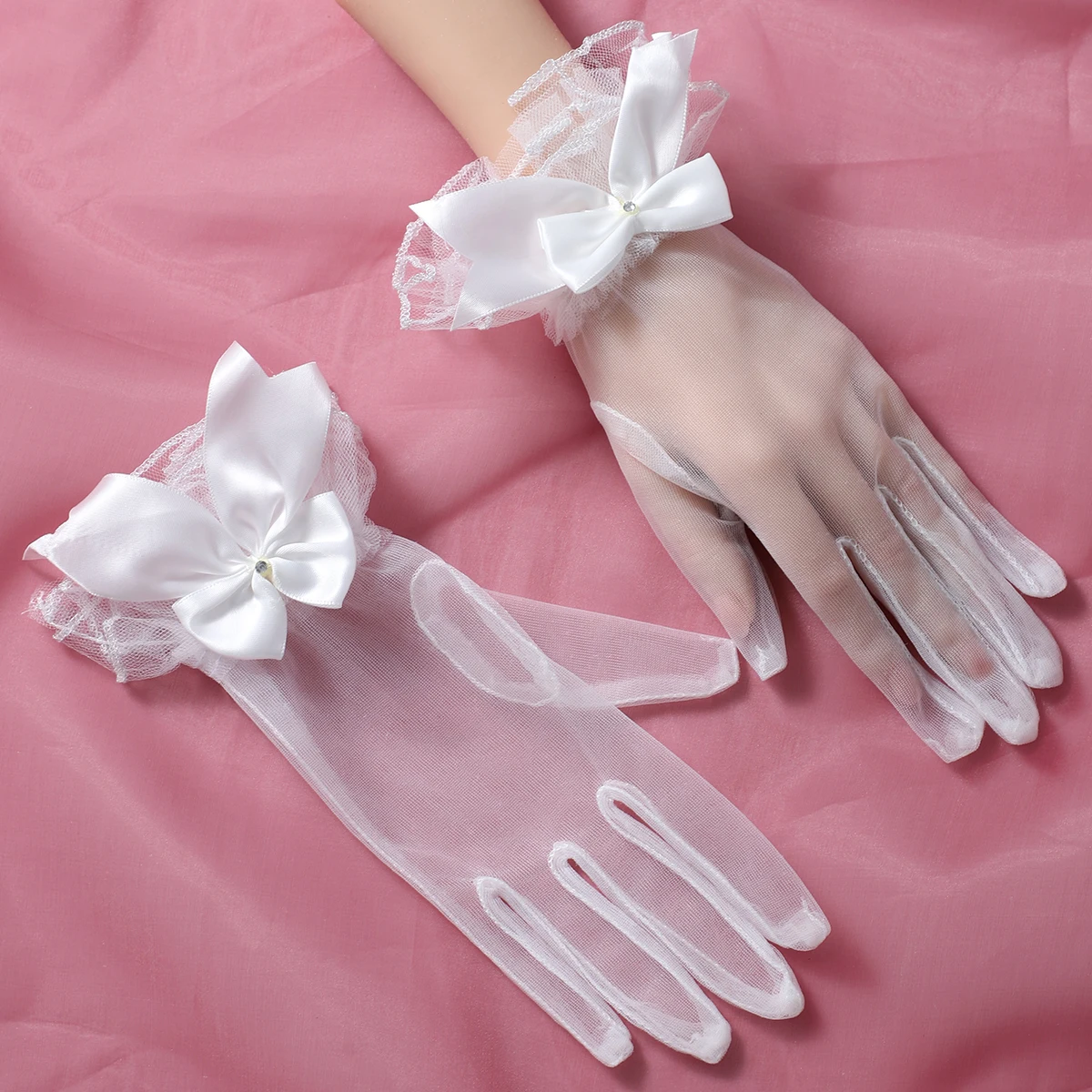 Bridal Gloves Full Of Romantic Style Ladies' Cute Ball Party Dress Up Gloves With Bow
