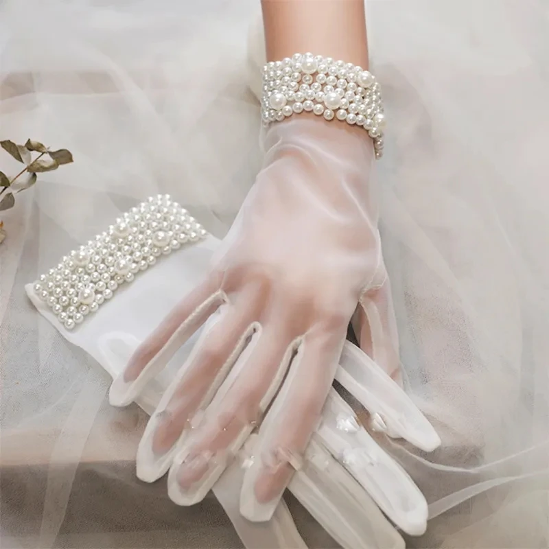 Bride Mesh Thin Short Pearl Imitation Gloves