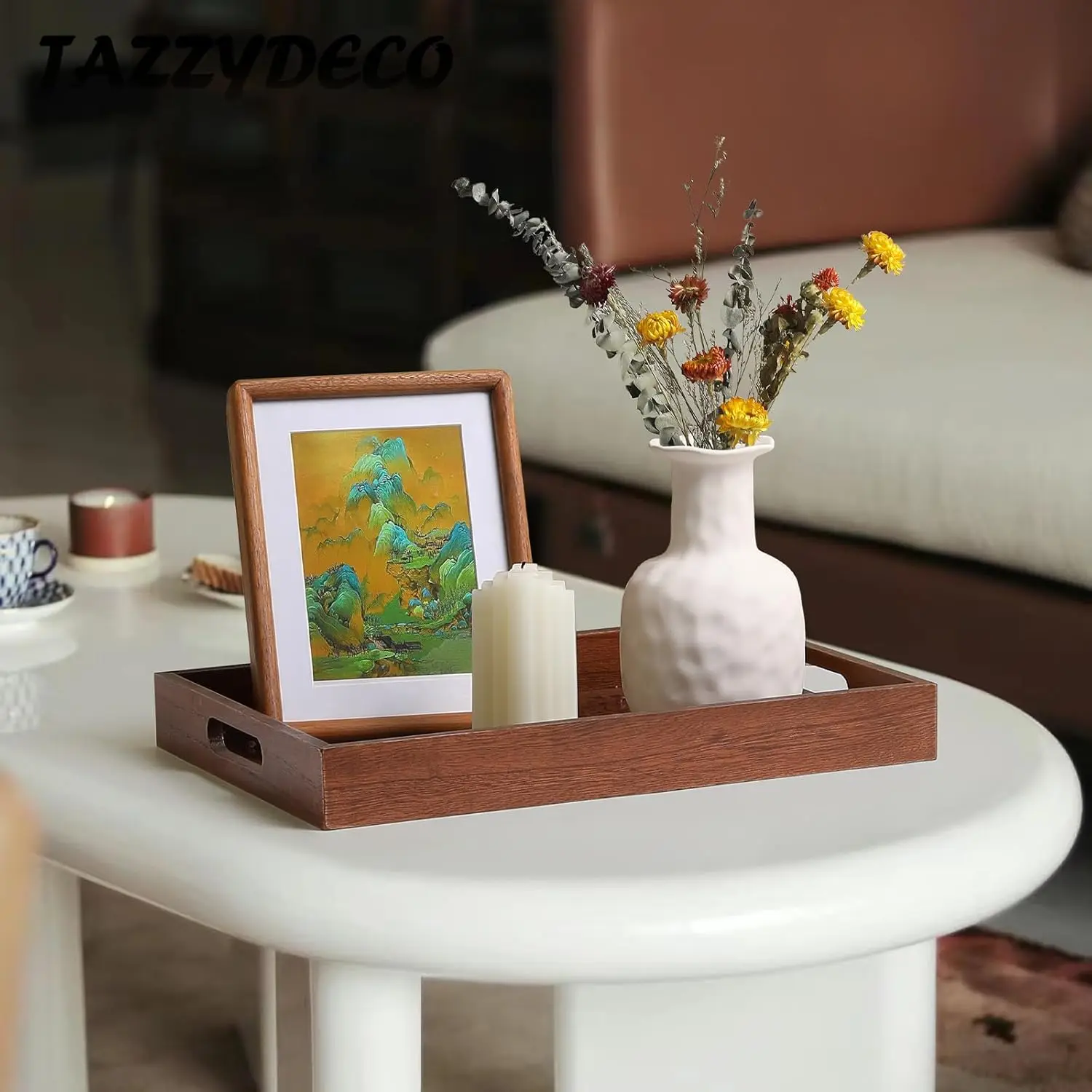 Brown Wooden Rectangle Tray with Handles Boho Decorative Serving Tray for Coffee Table Bedroom Kicthen Home Decor Otttoman Tray