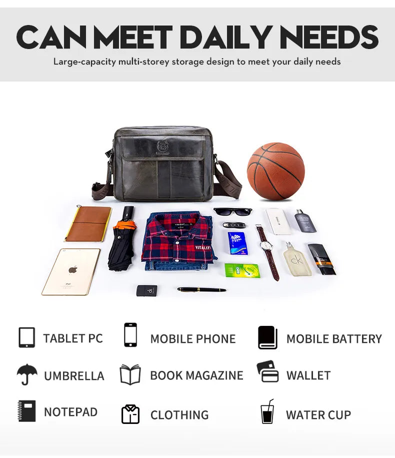 BULLCAPTAIN Genuine Leather Men's Crossbody Bag Large Capacity Casual Multifunctional Handbag A Fashion Business Briefcase