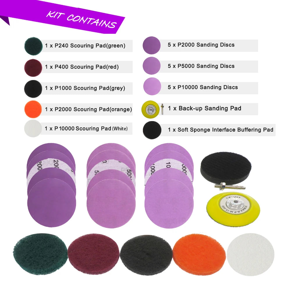 ✔ Ermöglicht eine gründliche Reinigung vergilbter, trüber Scheinwerfer mithilfe speziell entwickelter Scheuerschwämme und hochpräziser, wasserfester Schleifscheiben.