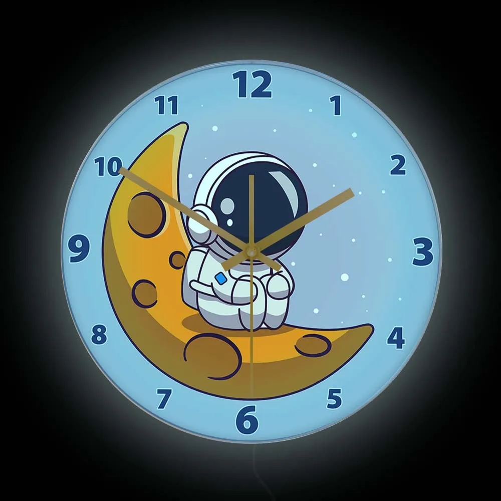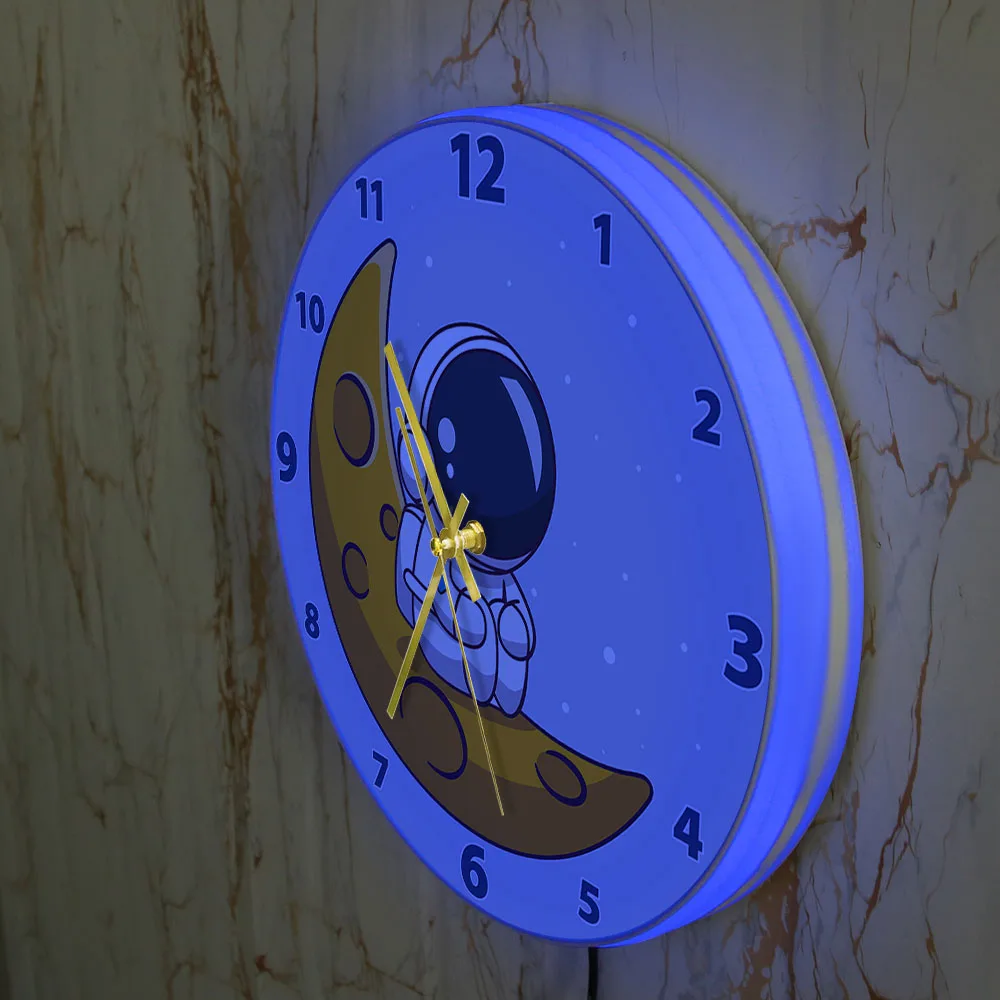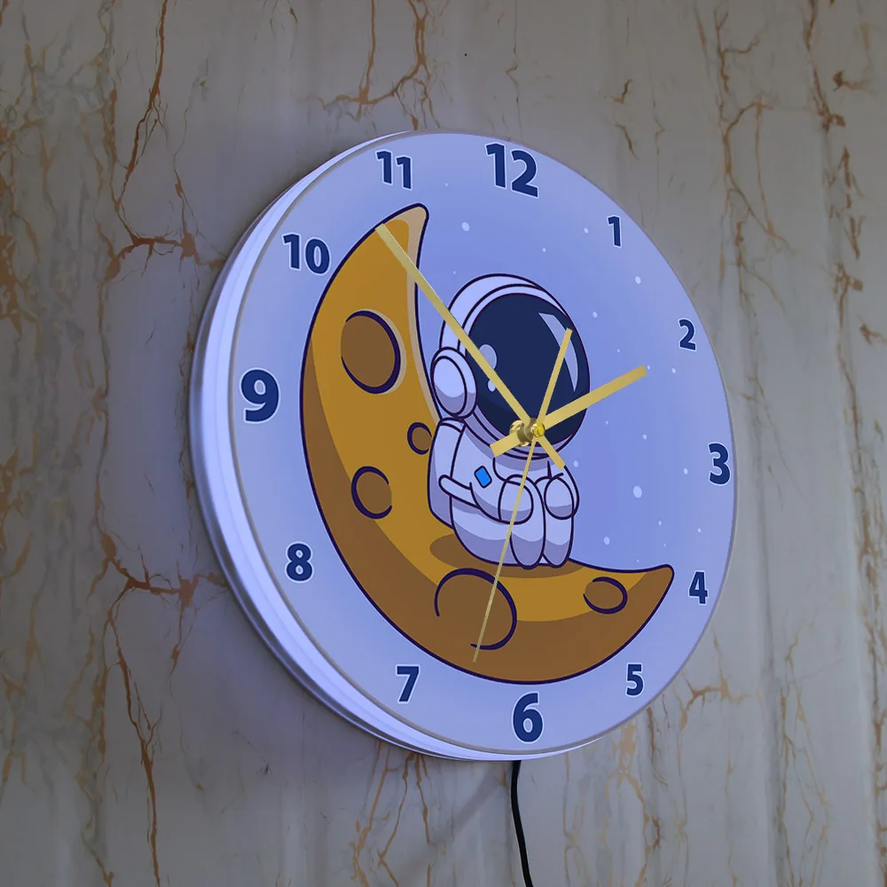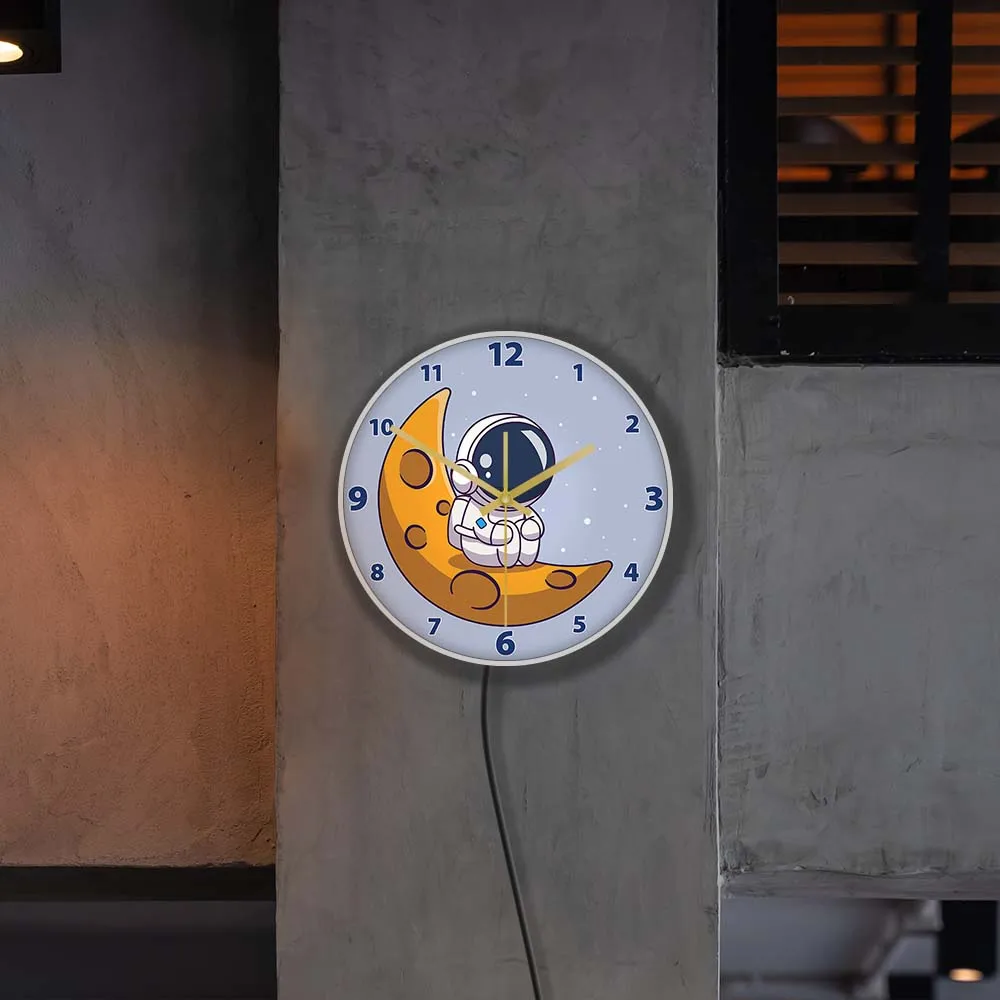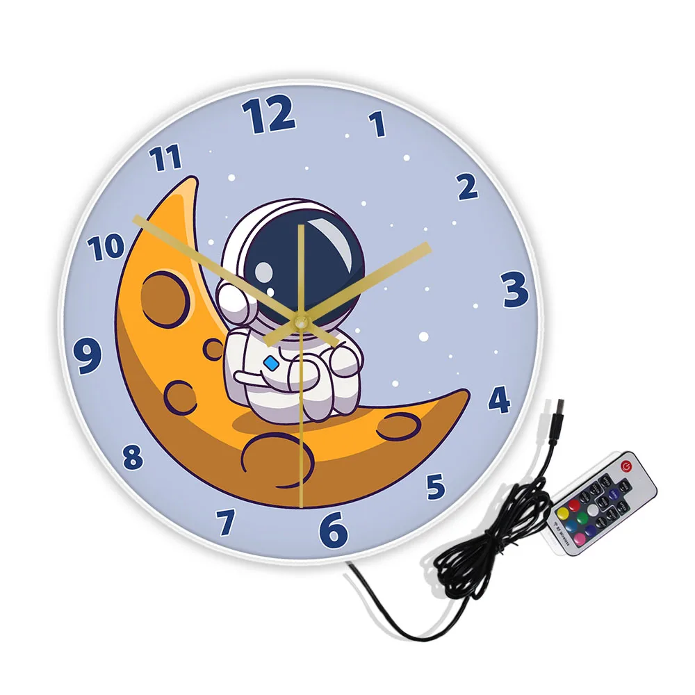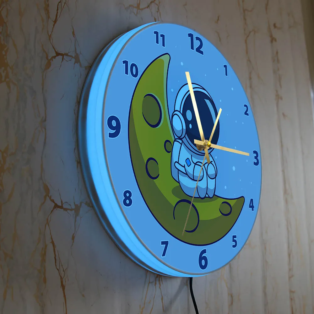 Cartoon Astronaut LED Lighting Wall Clock for Kids Room Nursery Universe Home Decor Outer Space Art Cosmonaut Neon Light Clock