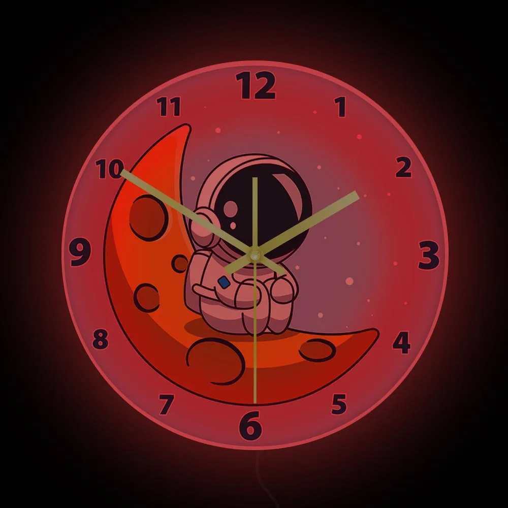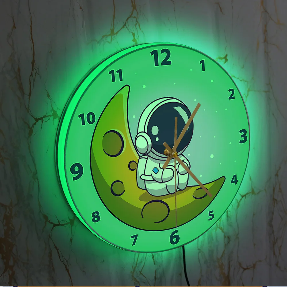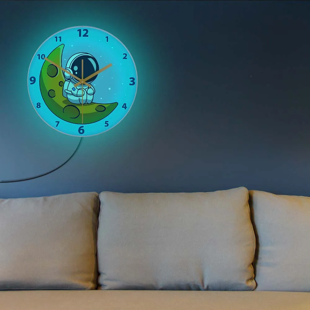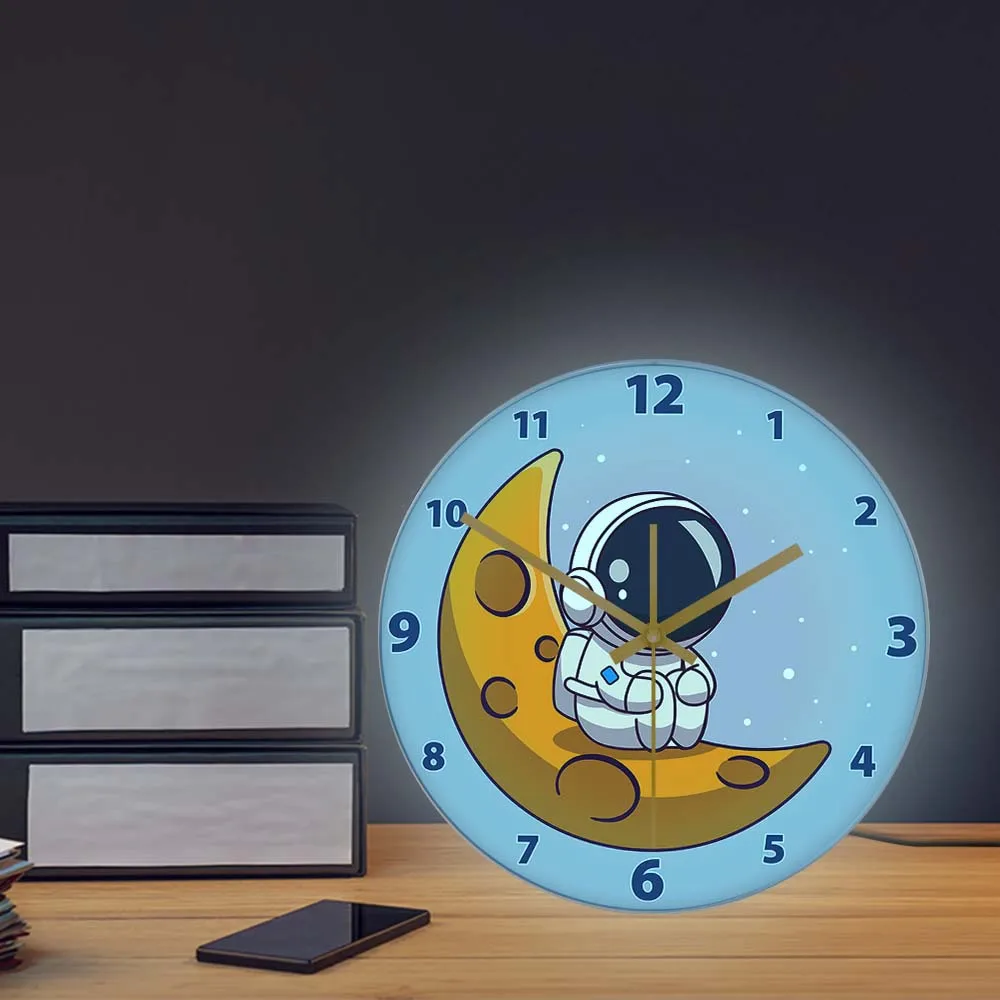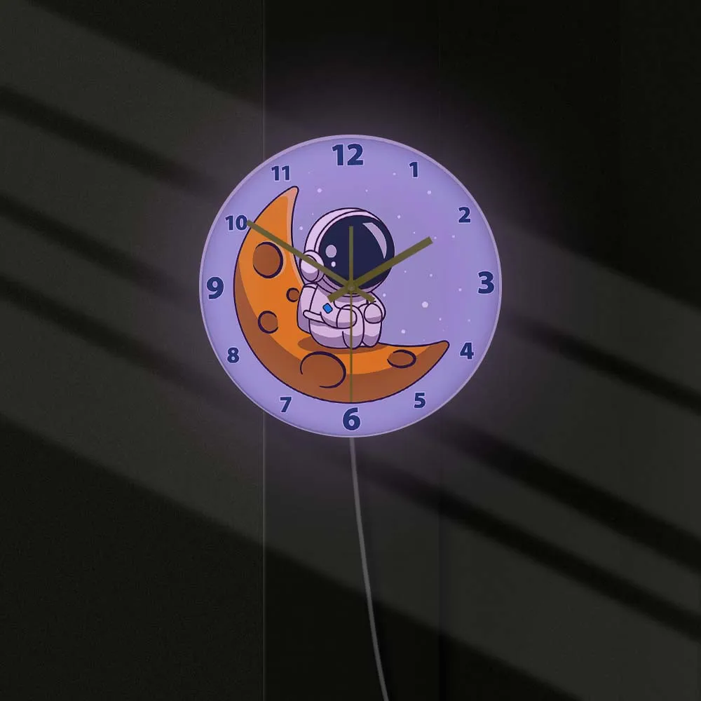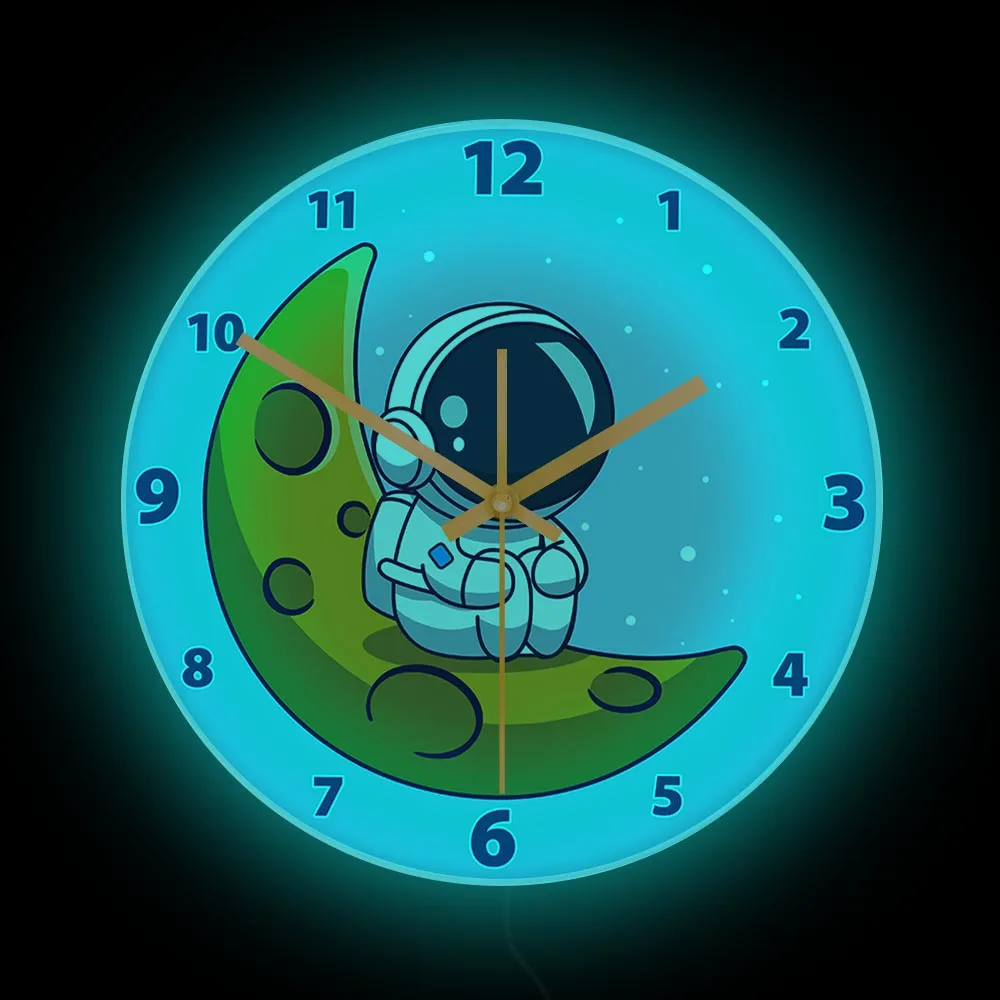 Cartoon Astronaut LED Lighting Wall Clock for Kids Room Nursery Universe Home Decor Outer Space Art Cosmonaut Neon Light Clock