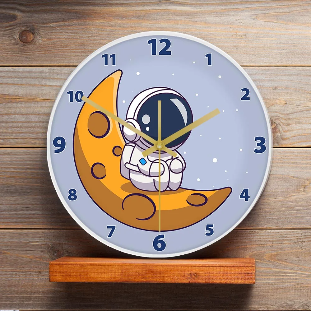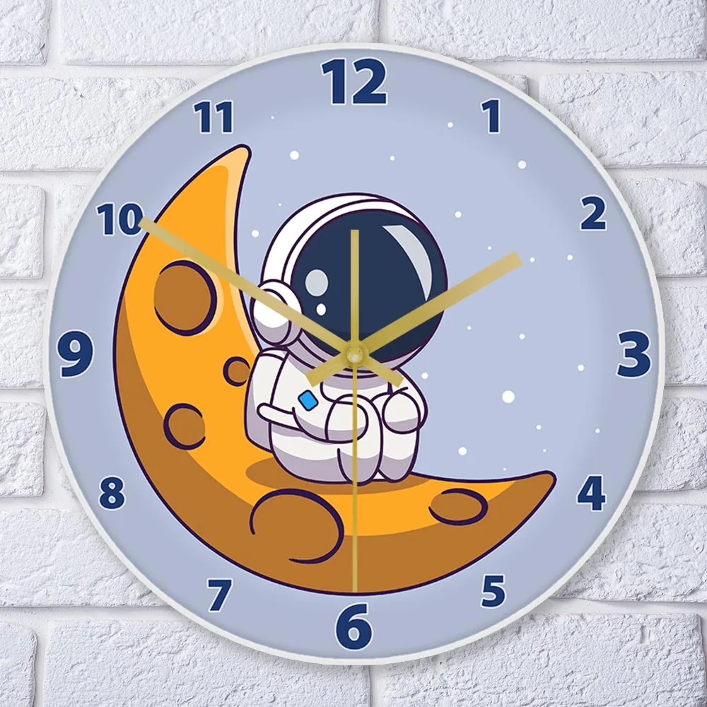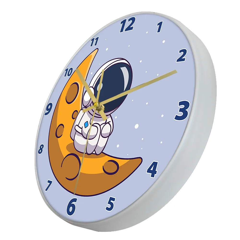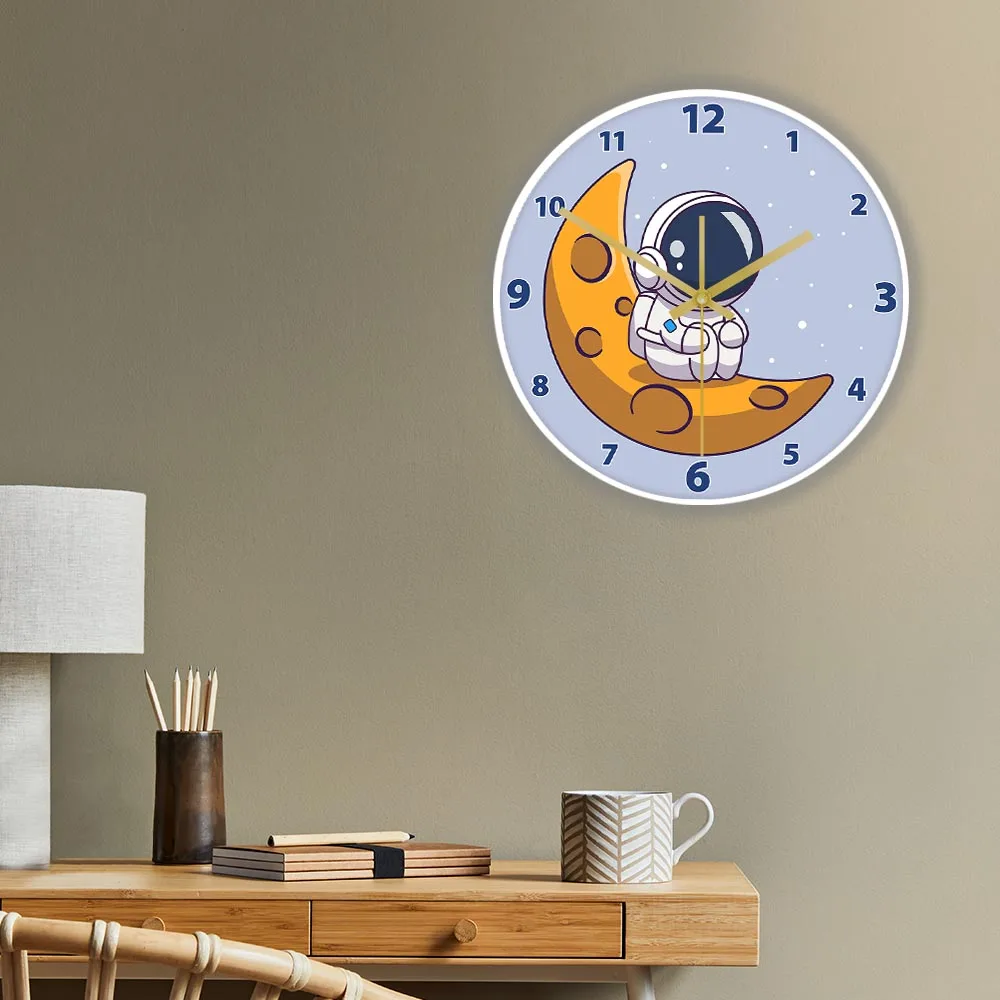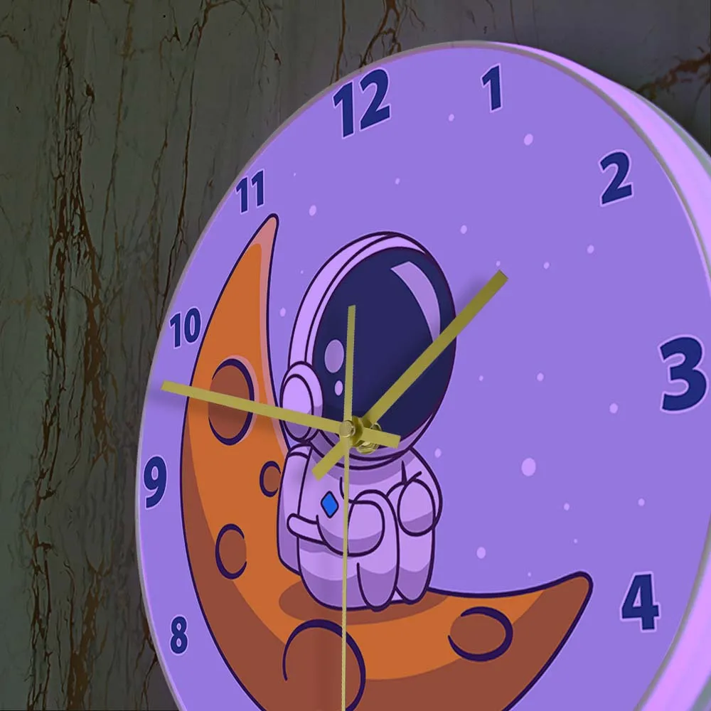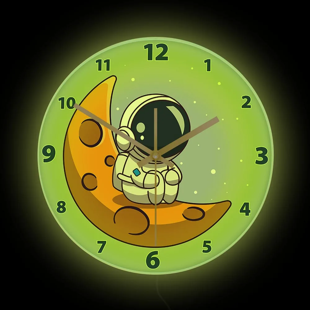 Cartoon Astronaut LED Lighting Wall Clock for Kids Room Nursery Universe Home Decor Outer Space Art Cosmonaut Neon Light Clock
