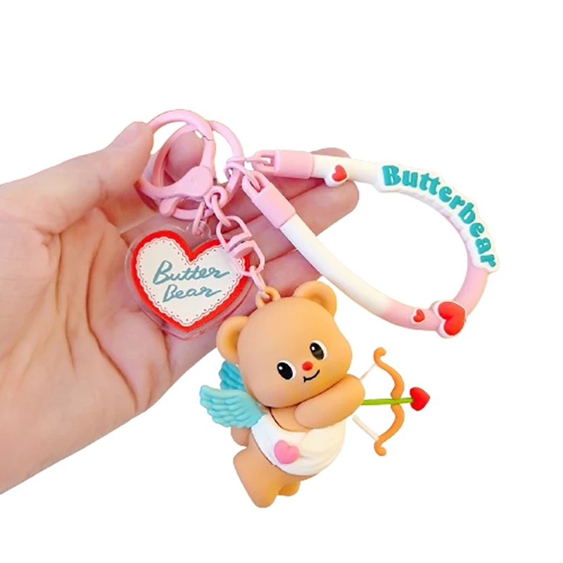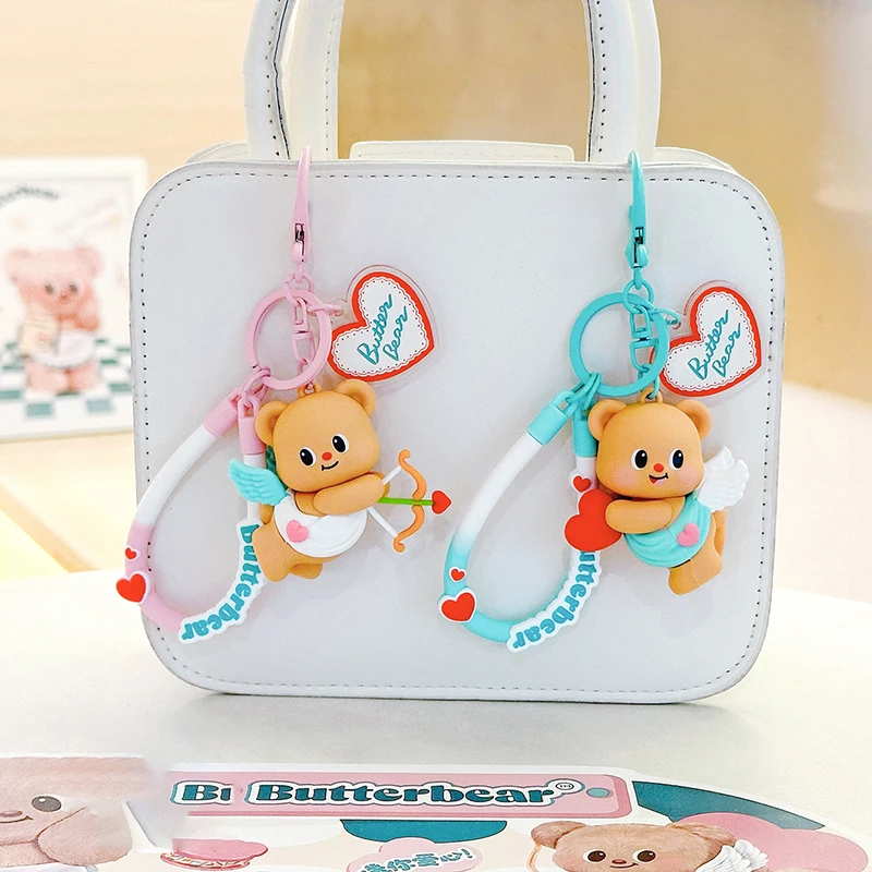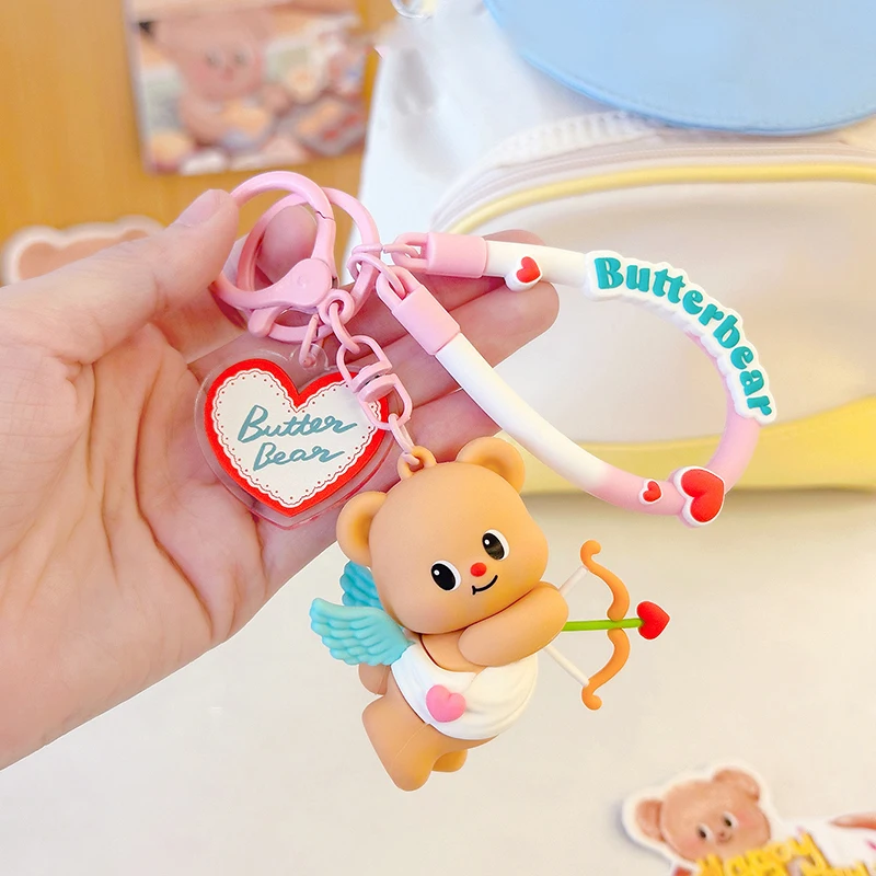 Cartoon Butter Bear Keychain Cute Anime PVC Bear Keyring Toys For Women Girls Cupid Dolls Pendant Bag Accessories Couple Gift