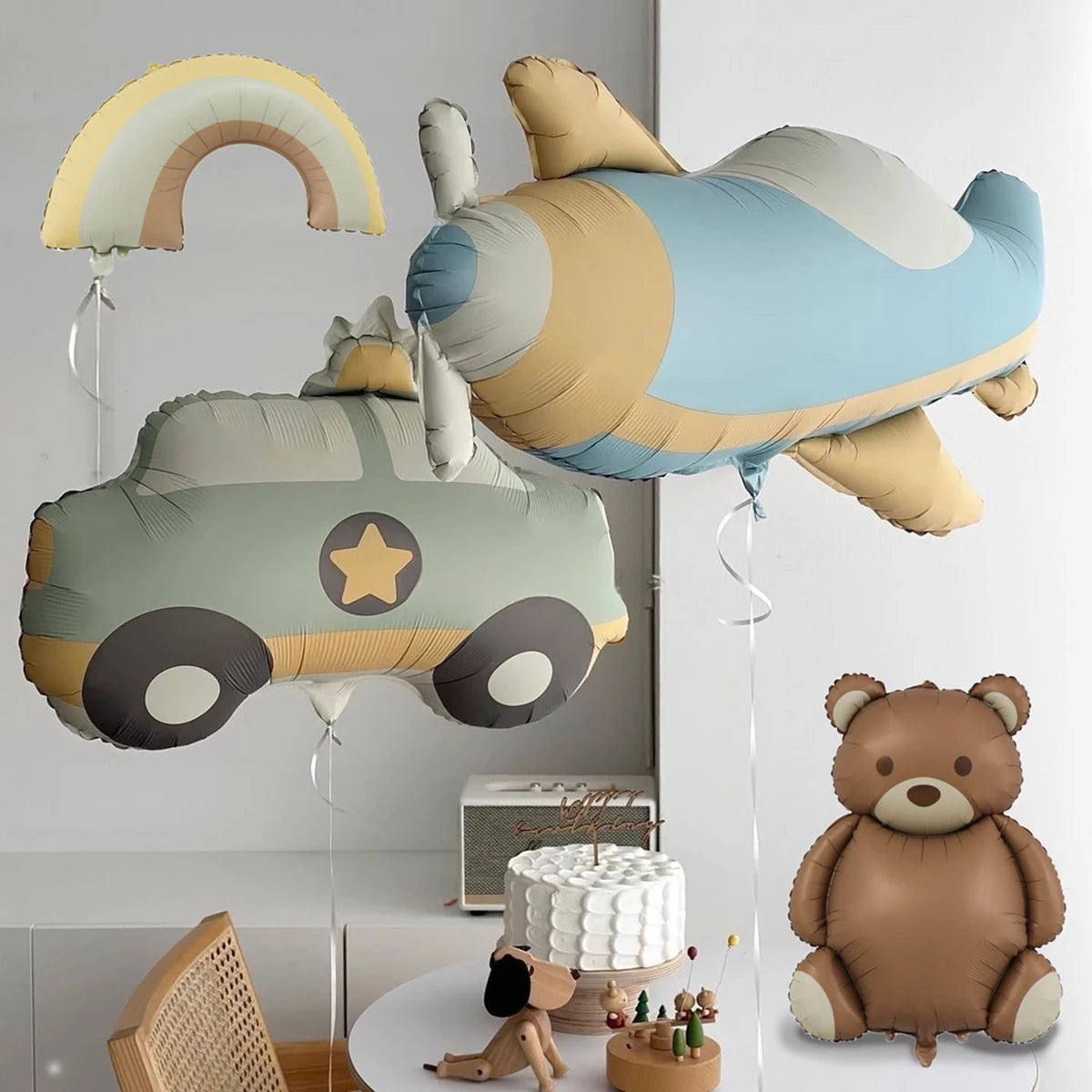 Cartoon Matte Bär Regenbogen Flugzeug Auto Folienballons Happy Birthday Party Dekorationen Kinder Mädchen Junge Baby Shower Spielzeug Zubehör