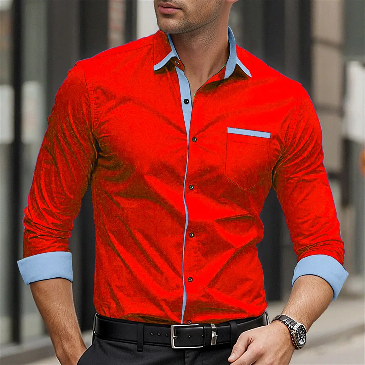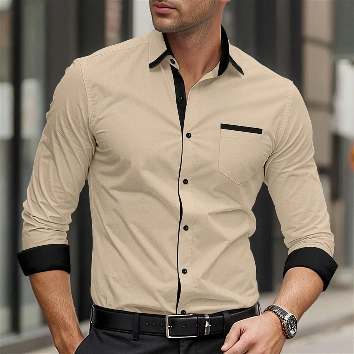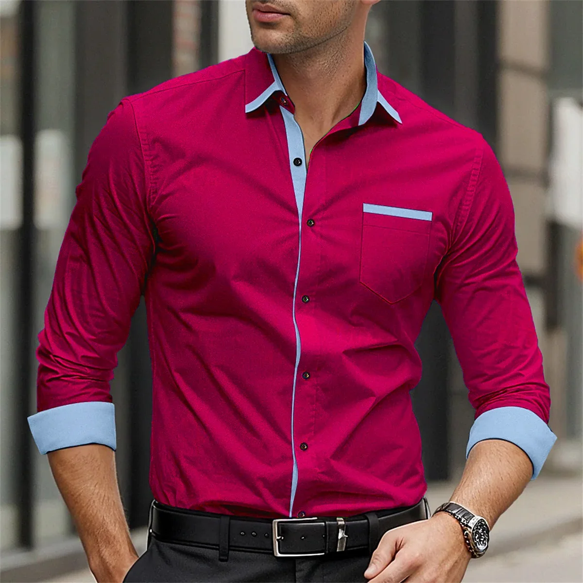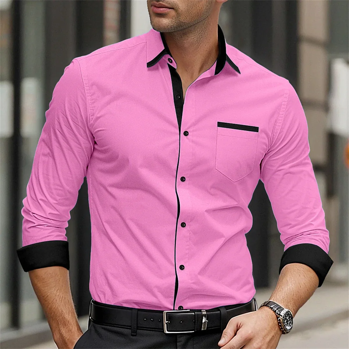 Classic business men's shirt casual breathable solid color long sleeved shirt daily street fashion wearing men's top