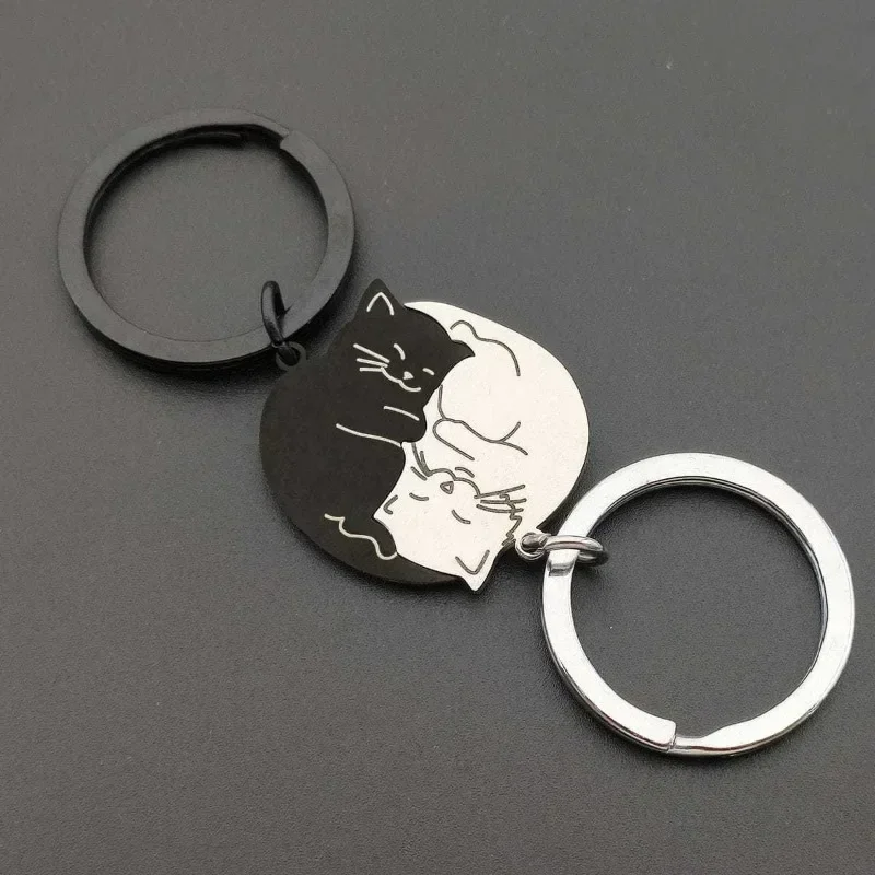 Couple Keychain Matching Cat Gift for Pet Lovers Cute Valentine's Day Jewelry Black Cat Puzzle Pendant for Girlfriend Boyfriend