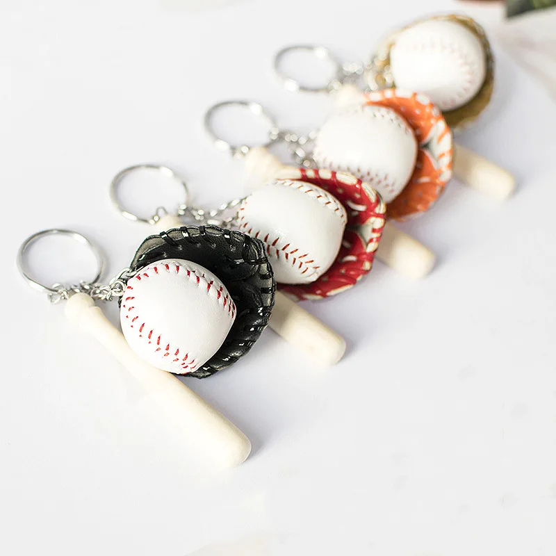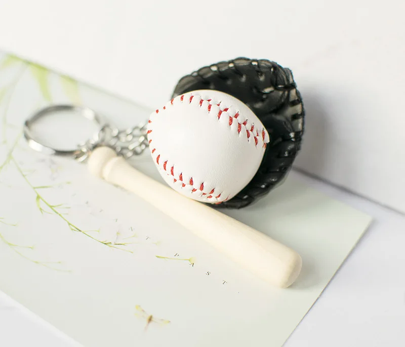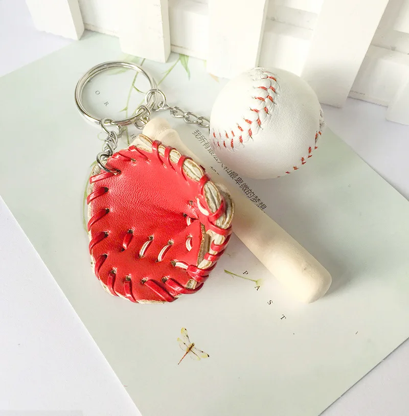 Creative Baseball Three-Piece Baseball Glove Wooden Key Chain Sports Car Key Ring Gifts For Men And Women Gifts For Men