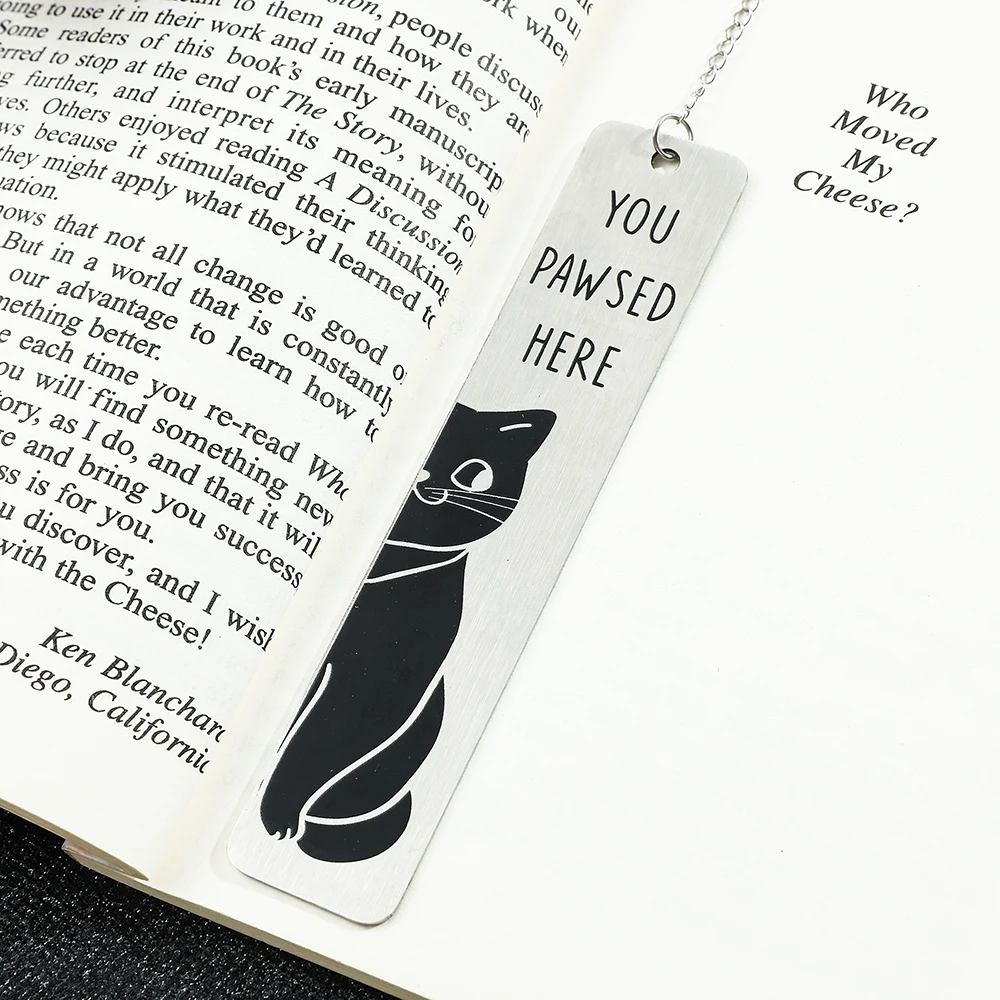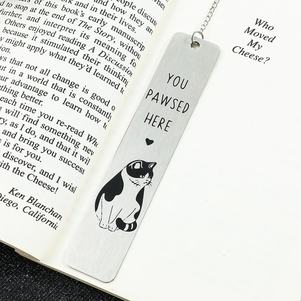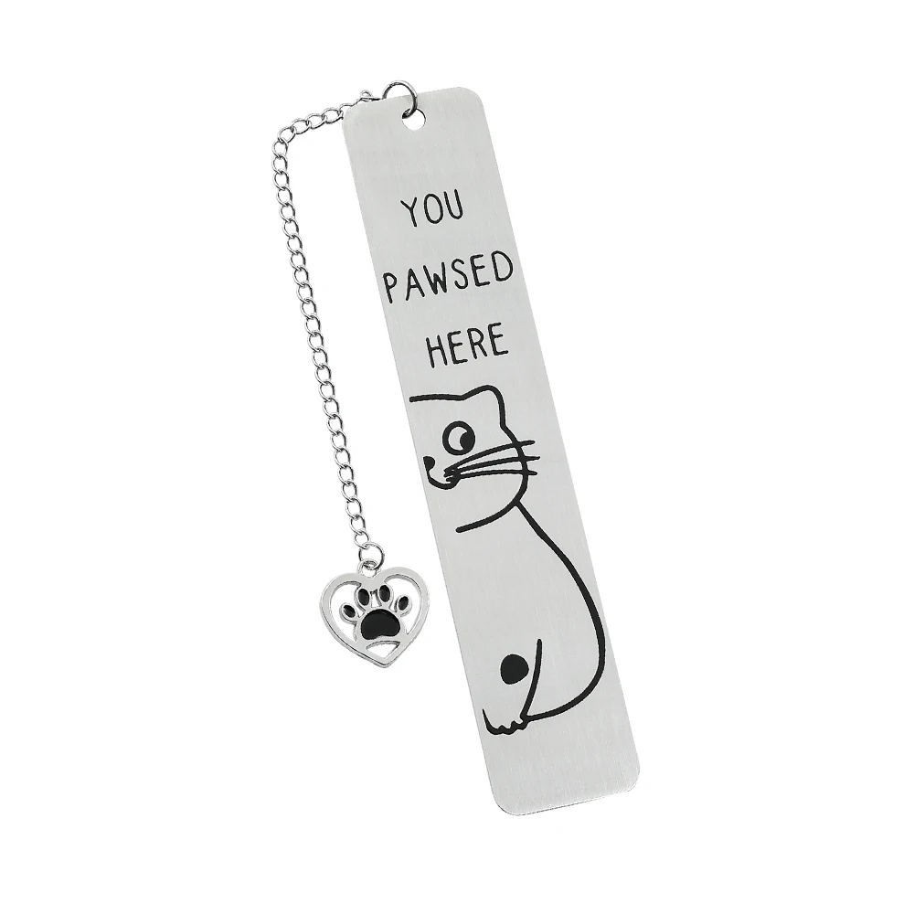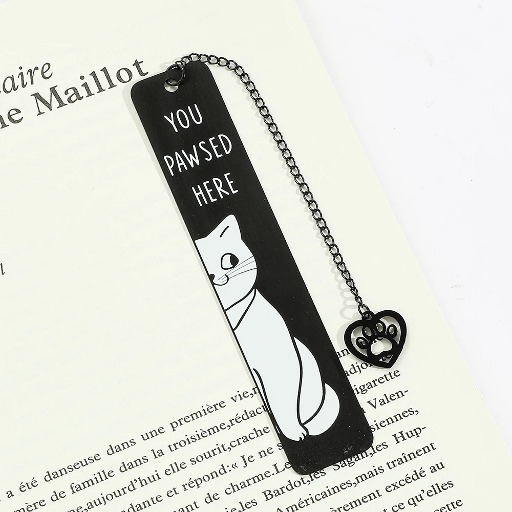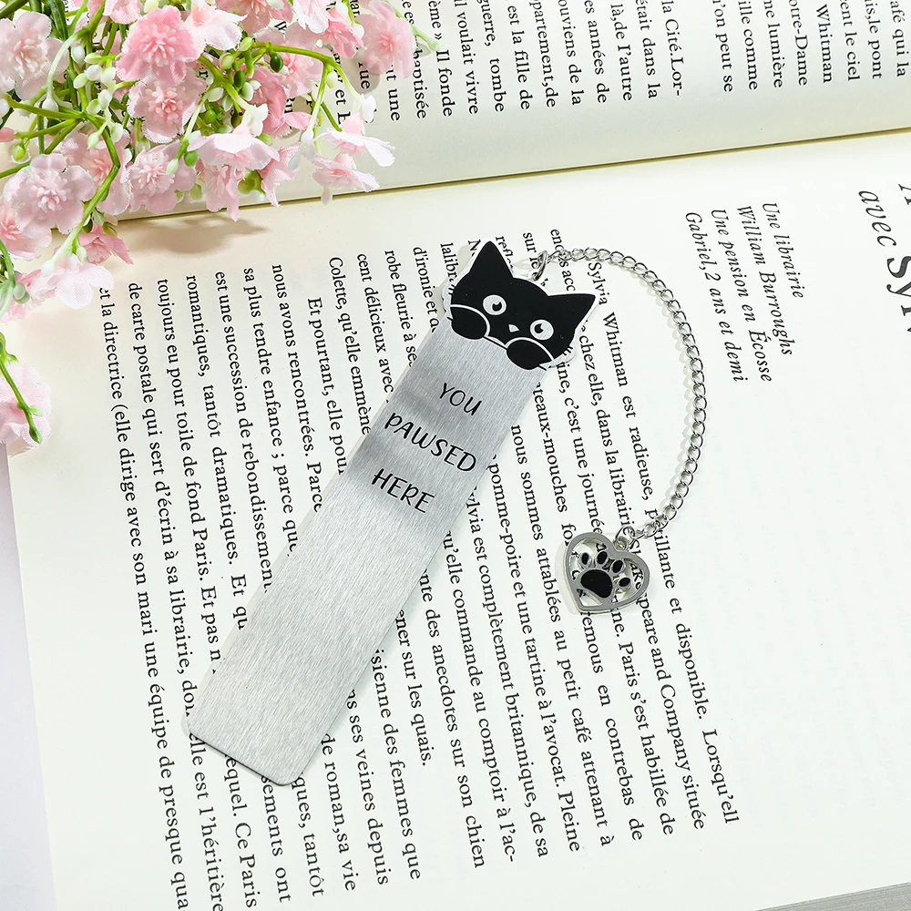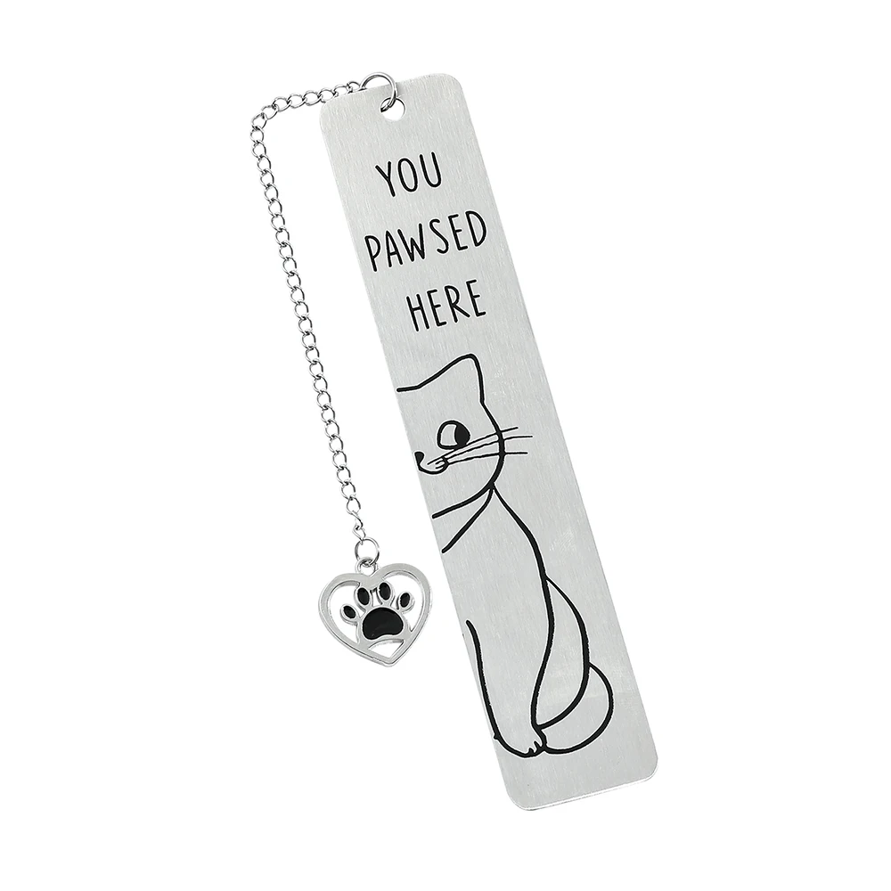 Cute Cat Metal Bookmark,Funny You Pawsed Here Cat Stainless Steel Bookmarks with Tassel, Reading Supplies Gift for Cat Book Love