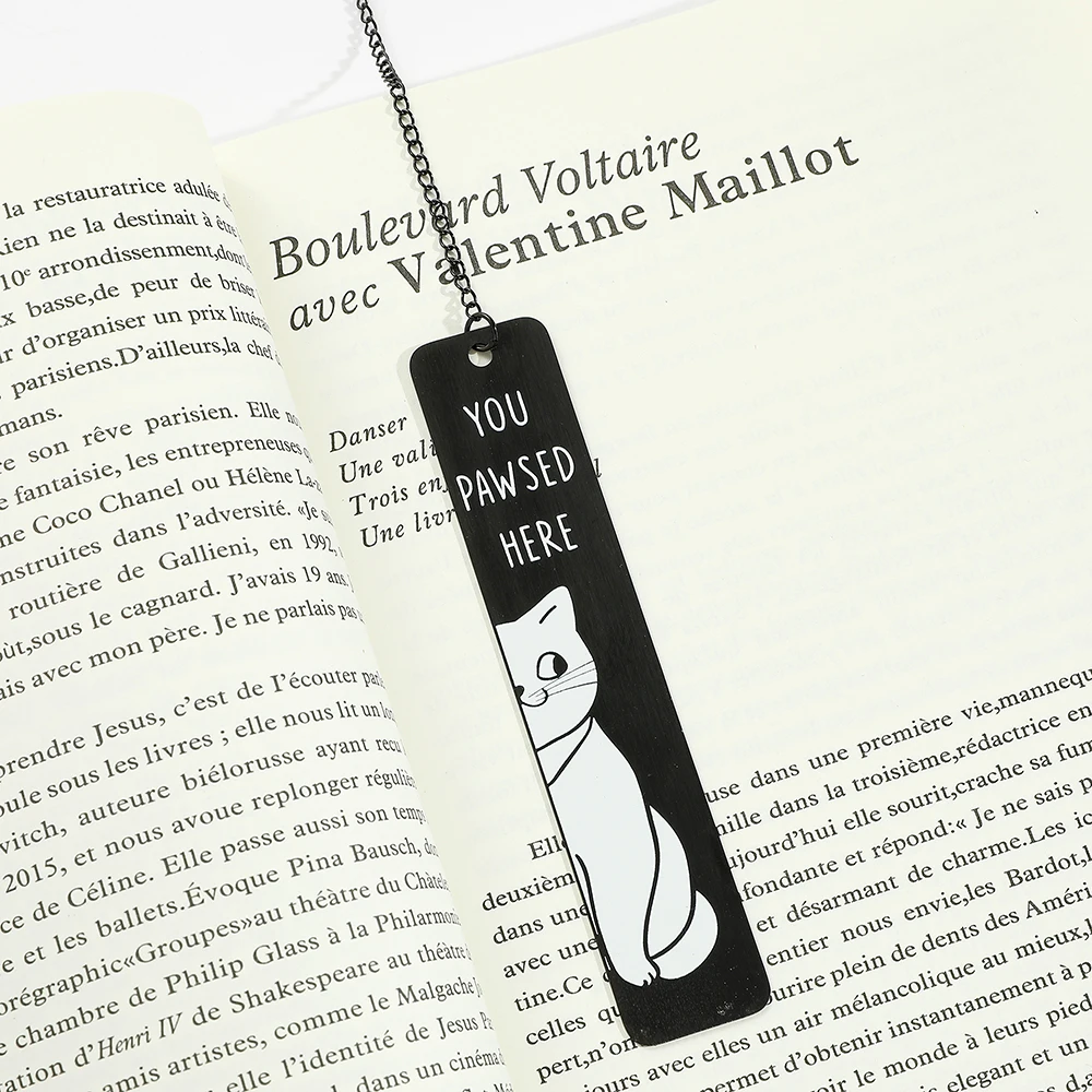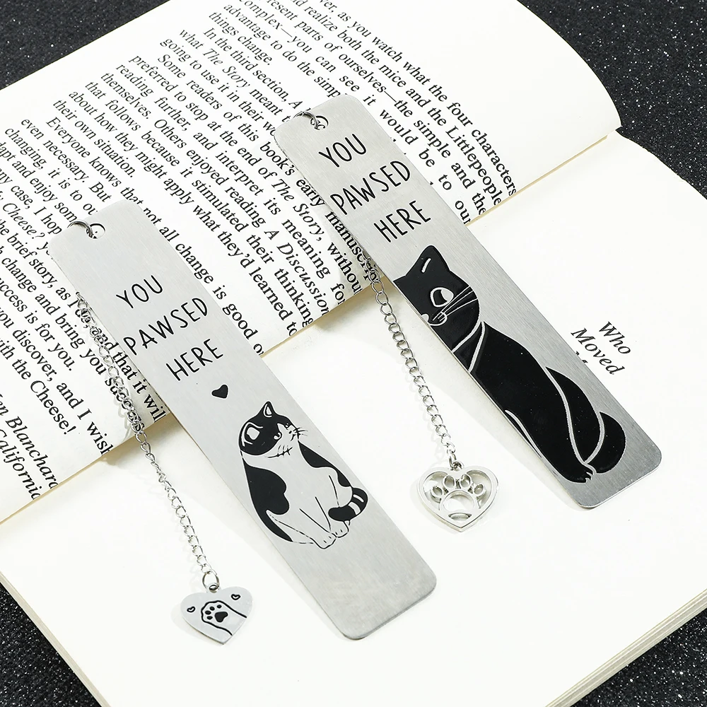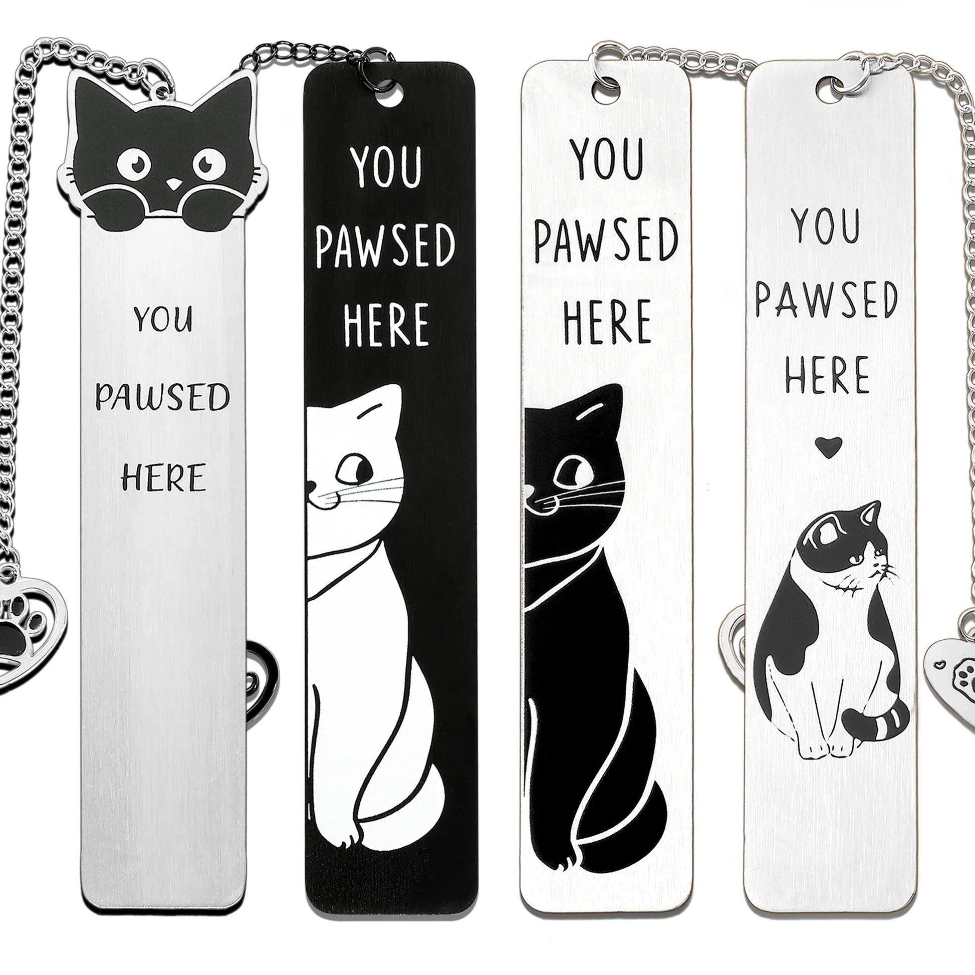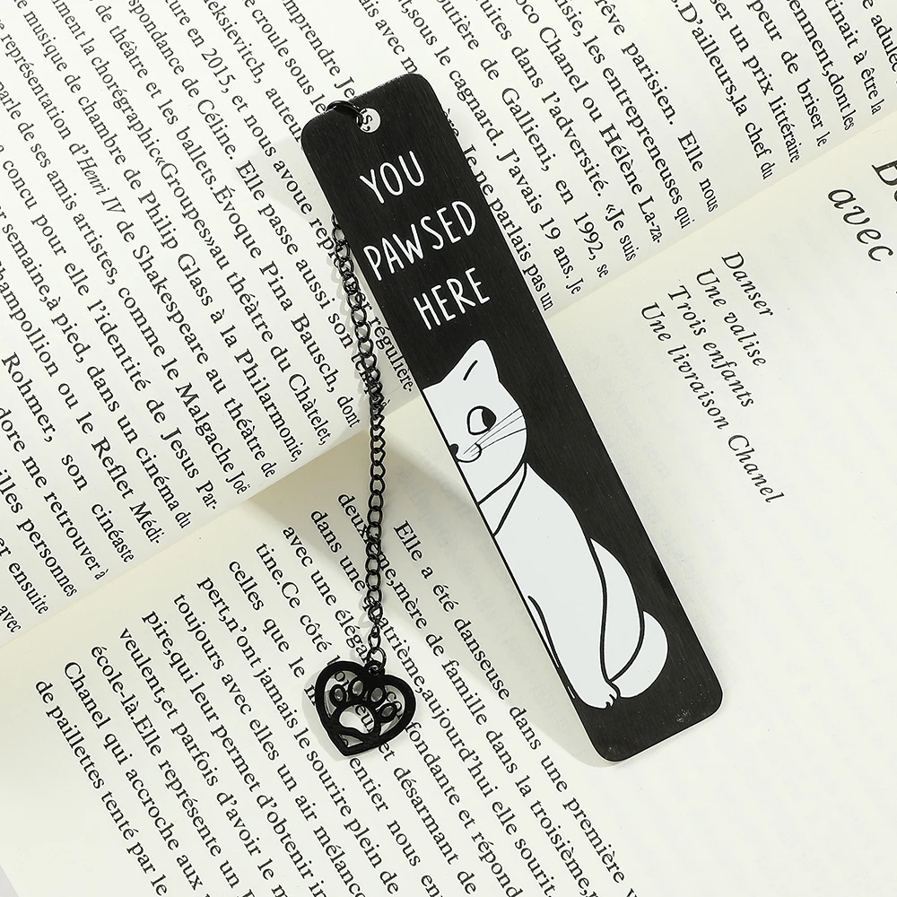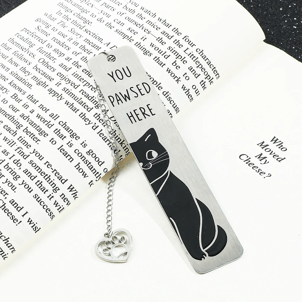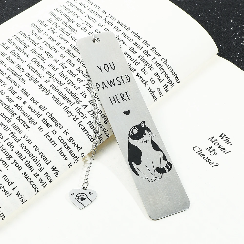 Cute Cat Metal Bookmark,Funny You Pawsed Here Cat Stainless Steel Bookmarks with Tassel, Reading Supplies Gift for Cat Book Love