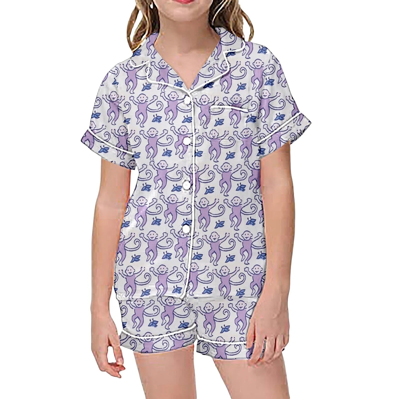 2 Piece Sets Pajamas For Kids Children Graphic Print Short Sleeve Button Shirt Shorts Pajama Set