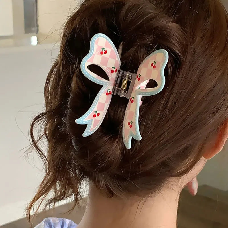 Cute Sweet Colorful Stripes Flowers Cherry Bow Clip for Women Girl Hair Claws HUANZHI 2024 NEW Y2k Hair Clip