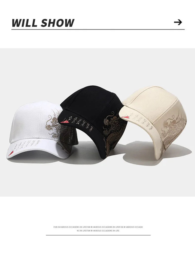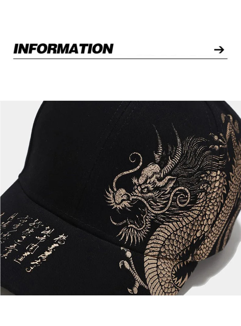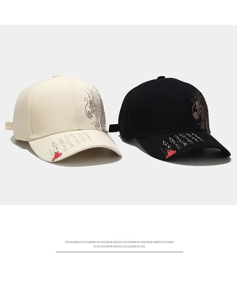 • Chinese Style Design :This baseball hat features a unique Chinese style dragon pattern, adding an exotic touch to your outfit. Perfect for those who appreciate international culture and design.