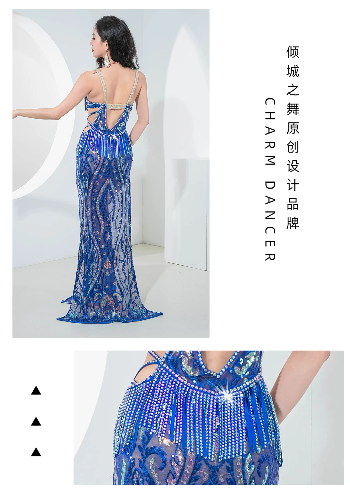 Egyptian Belly Dance Costume BALADI Dress Competition Group Performance Set Embroider Long Maxi Dresses Brilliant Sequins Dress