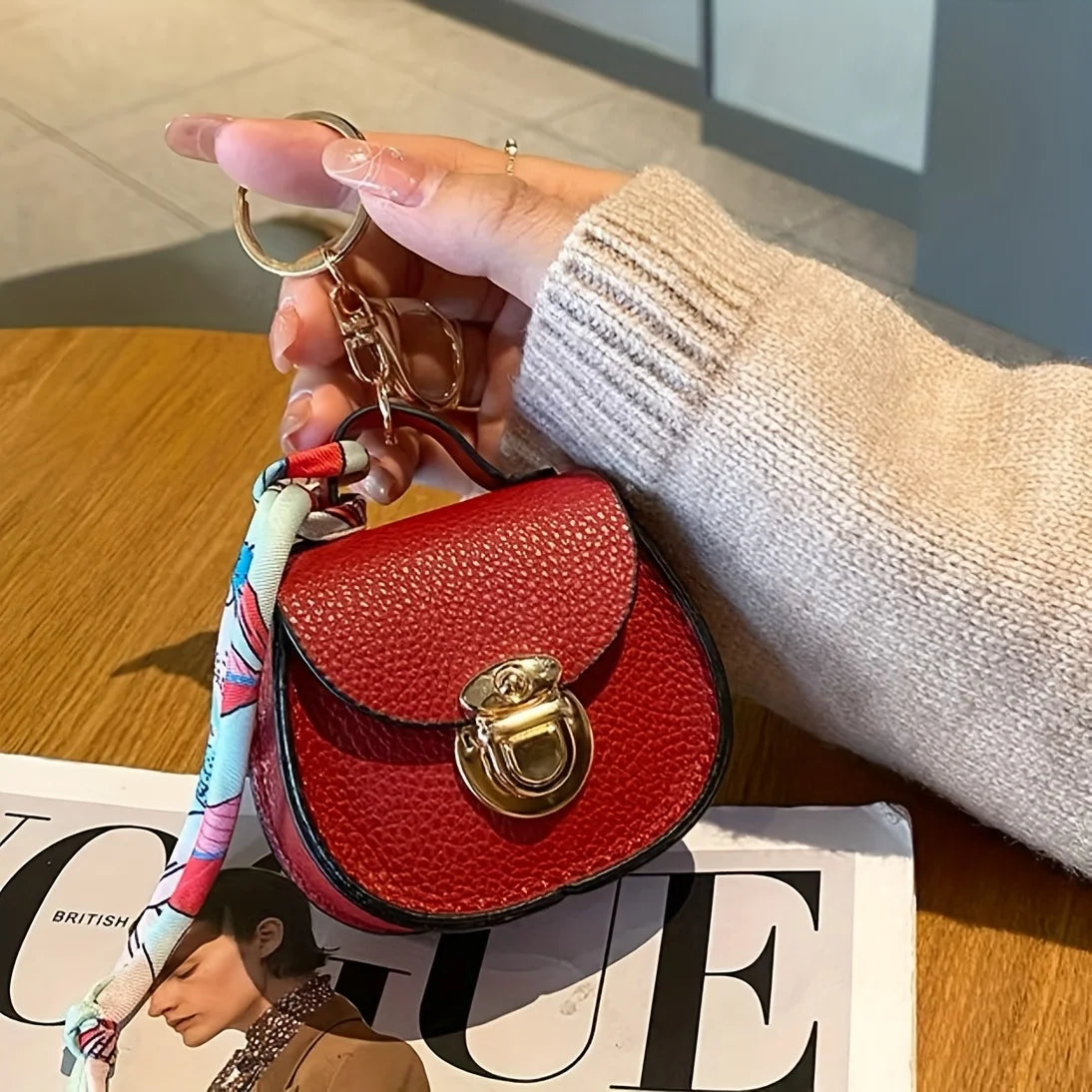 Elegant Mini Saddle Bag, Keychain with Premium Silk Scarf, Lightweight Faux Leather Coin Purse, Small Tote Bag Perfect Chic Gift