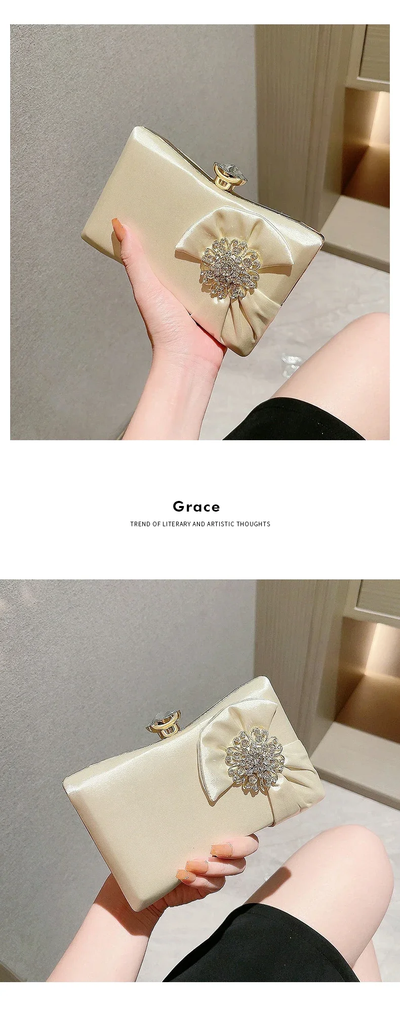 Elegant Rhinestone Decor Evening Bag, Classic Formal Dinner Handbag, Women's Stylish Clutch Purse For Party Wedding & Prom