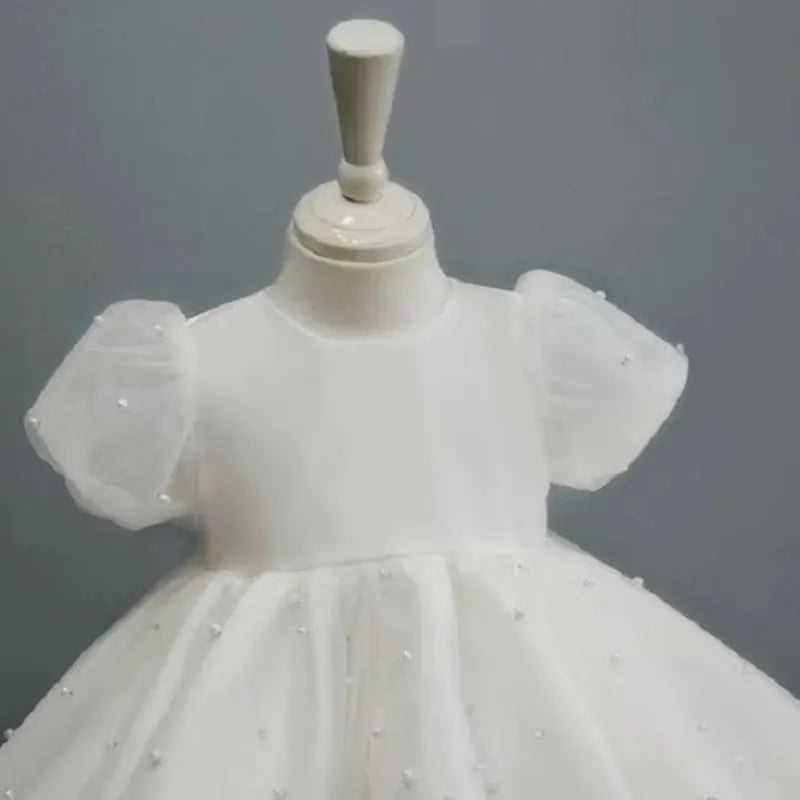 Mode Mädchen Prinzessin Vintage Perle Kleid Tüll Kind Vestido Puff Sleeve Hochzeit Party Geburtstag Tutu Kleid Kind Kleidung 1-10Y