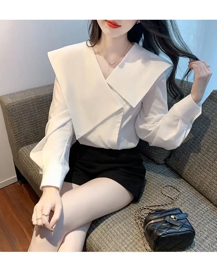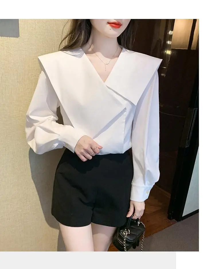 Fashion V-Neck Irregular Lantern Sleeve Blouses Female Clothing Solid Color Women Shirts