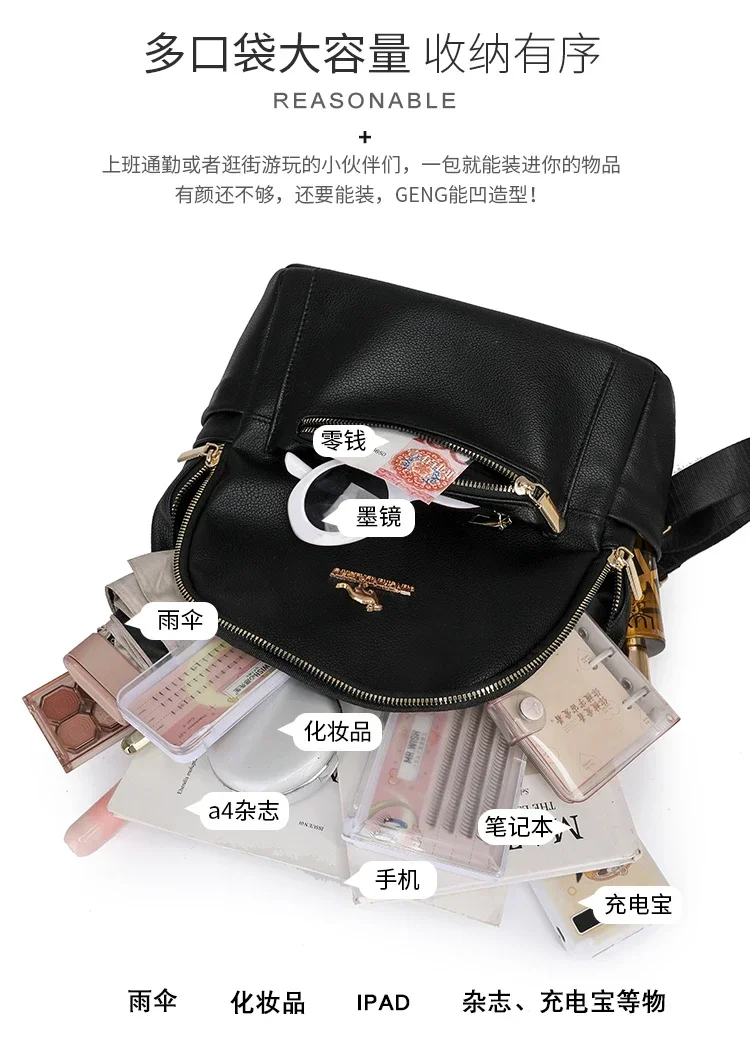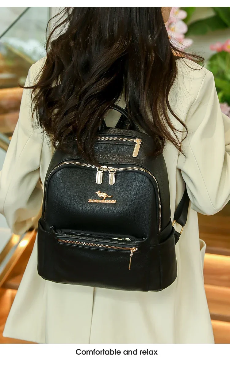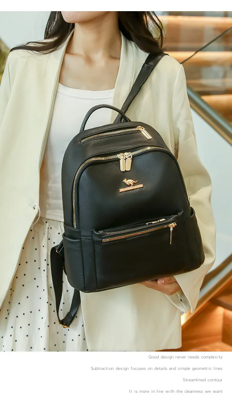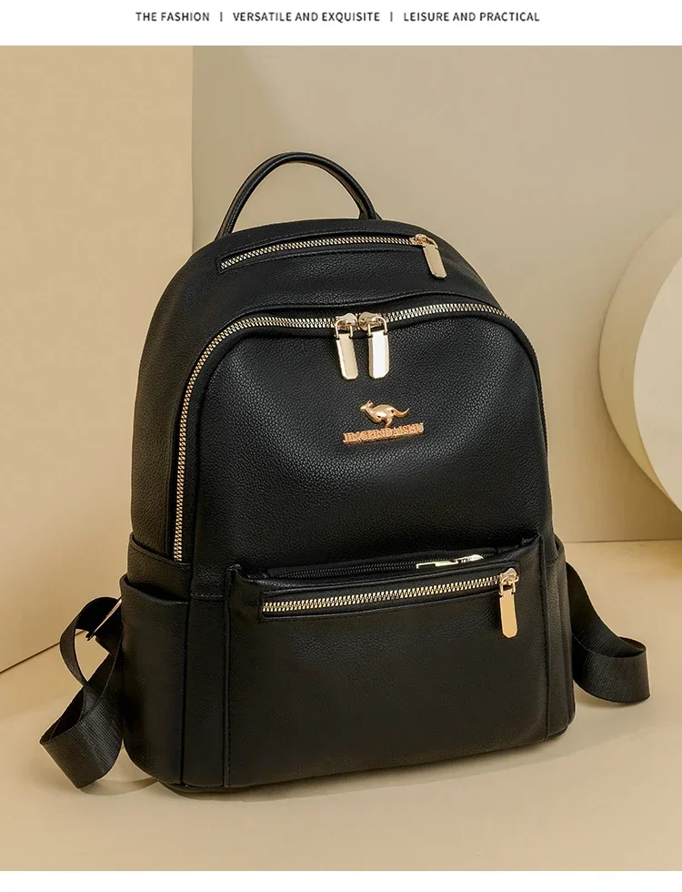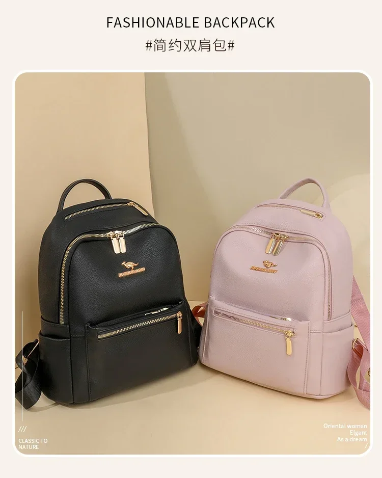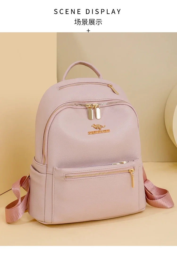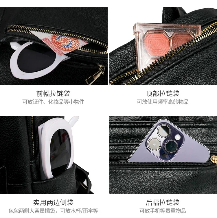 Fashion Zipper Pu Solid Causal Large Capacity Youth Backpacks 2025 Hot Sale Sewing Thread Versatile Classic Schoolbags for Women