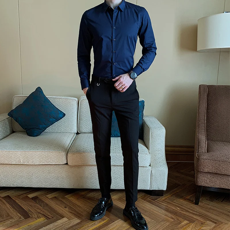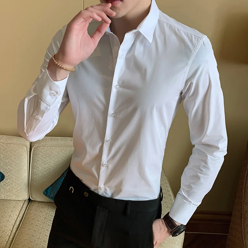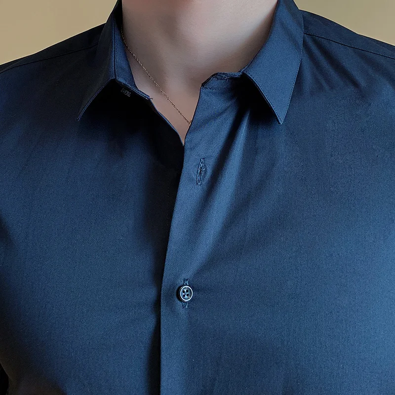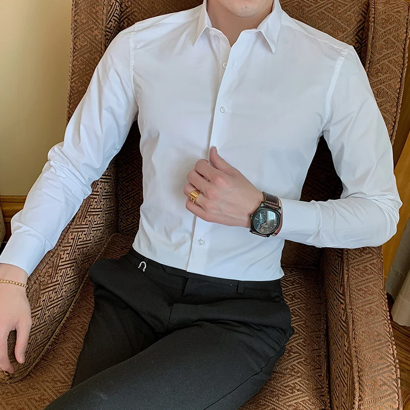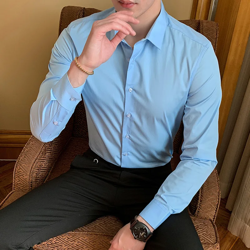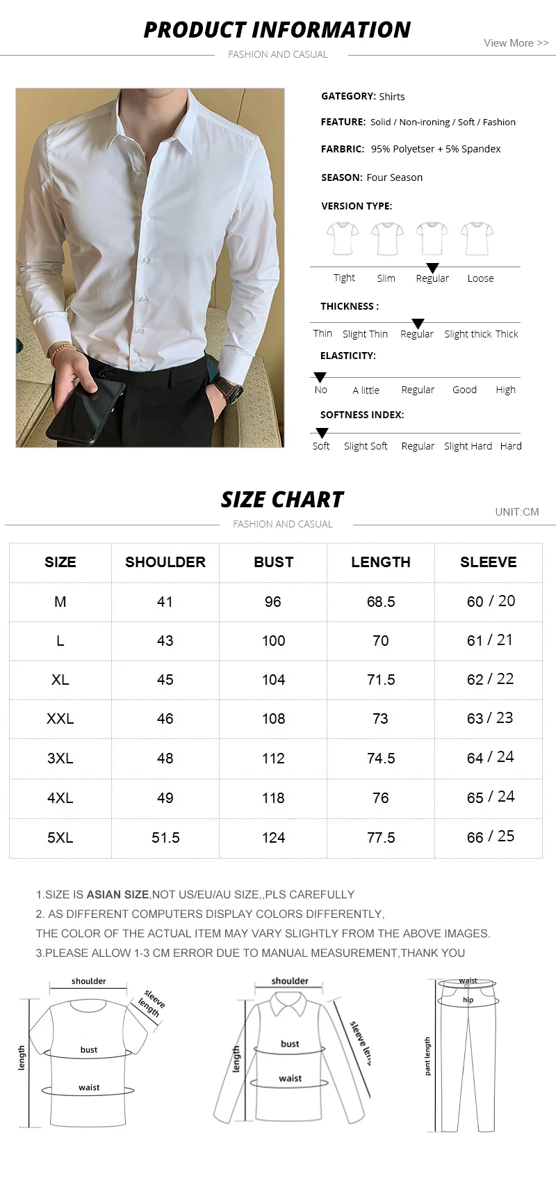 Four Season Non-ironing Regular Fit Business Casual Long Sleeve Shirt Anti-Wrinkle Solid Color Male Social Formal Shirts