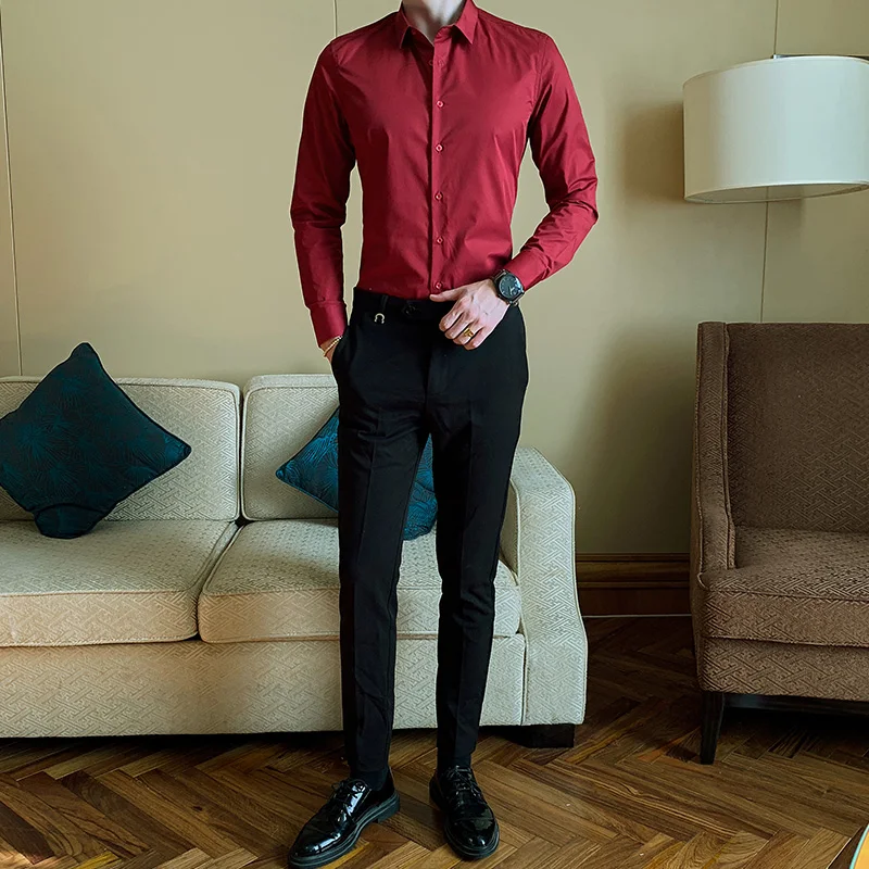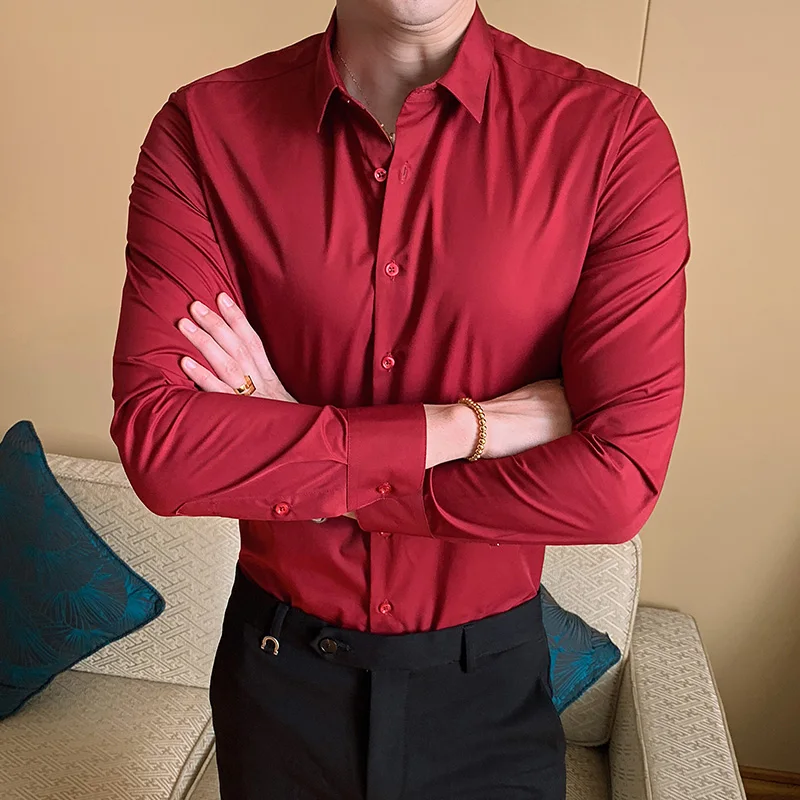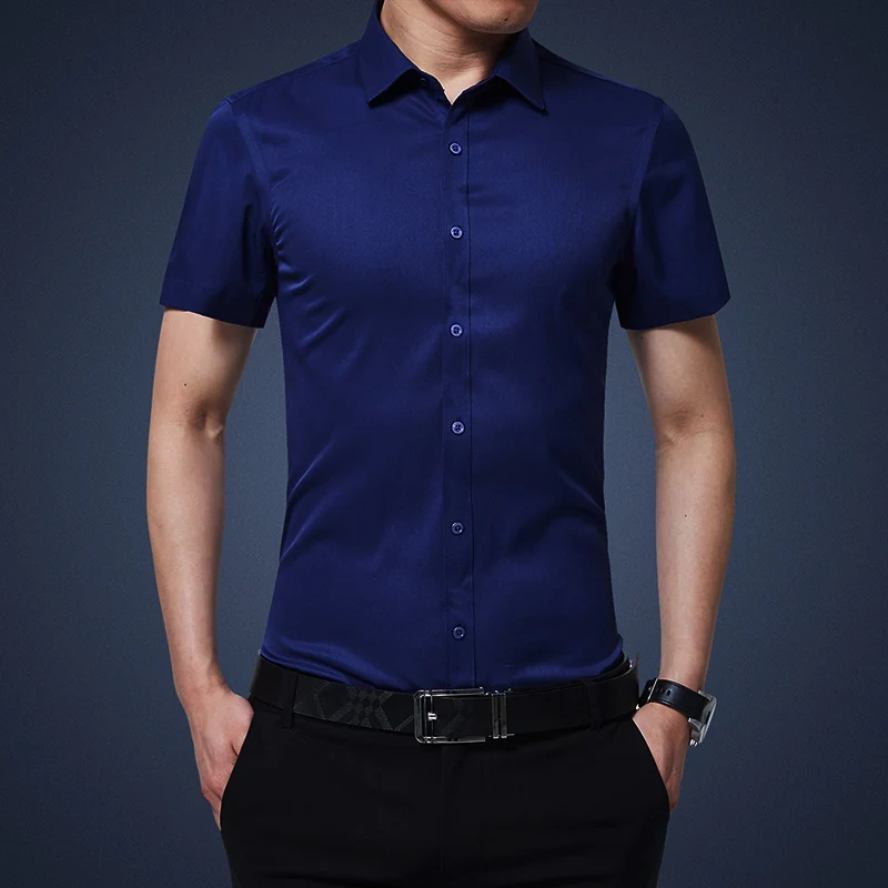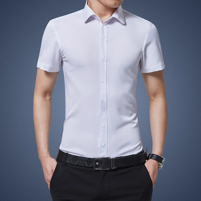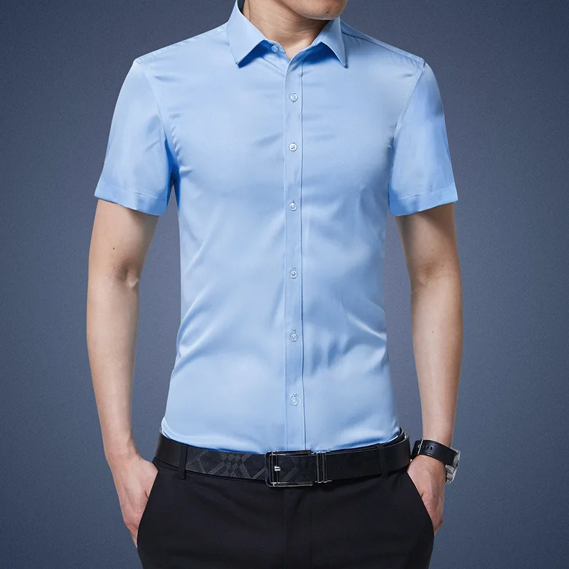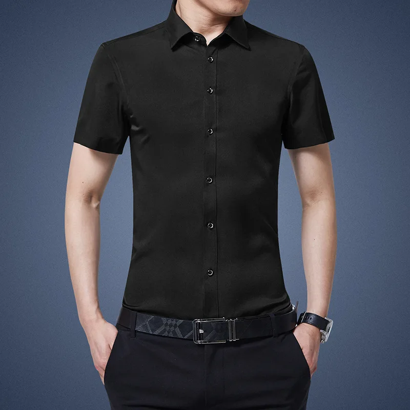 Four Season Non-ironing Regular Fit Business Casual Long Sleeve Shirt Anti-Wrinkle Solid Color Male Social Formal Shirts