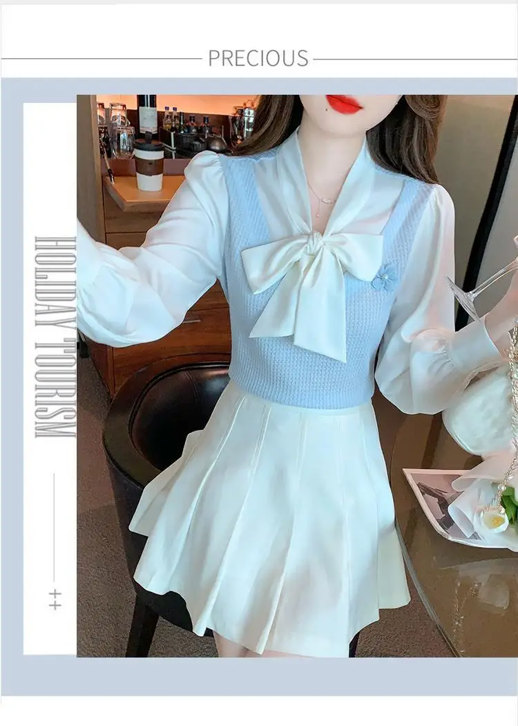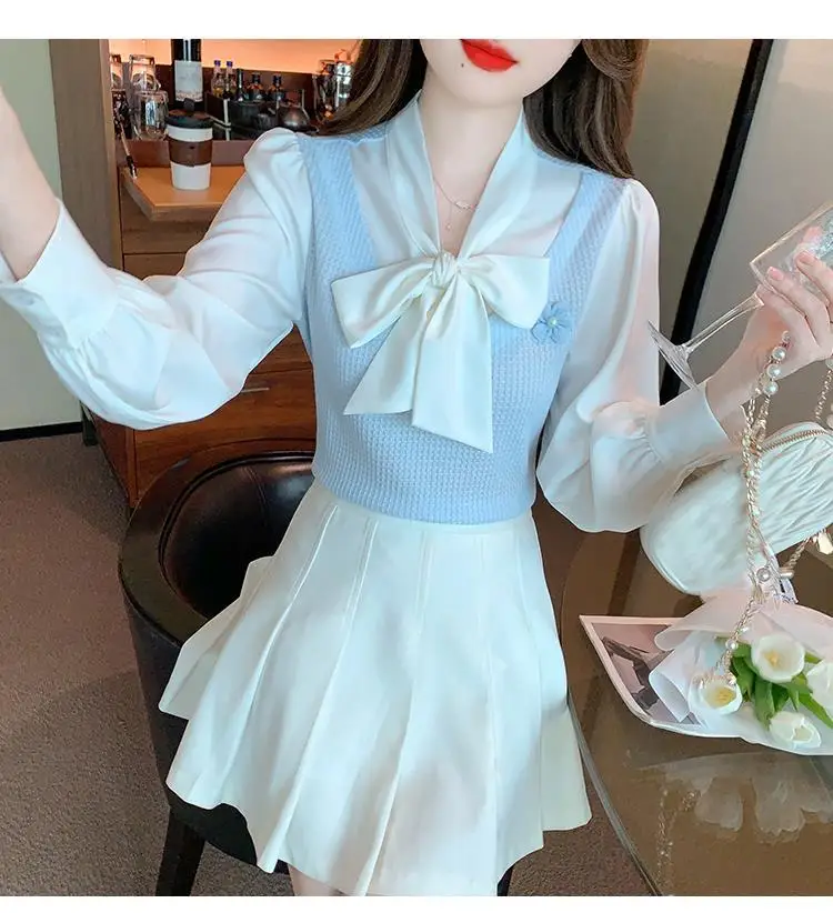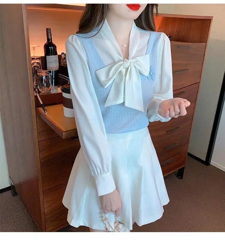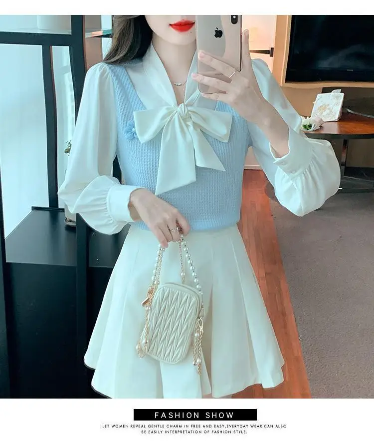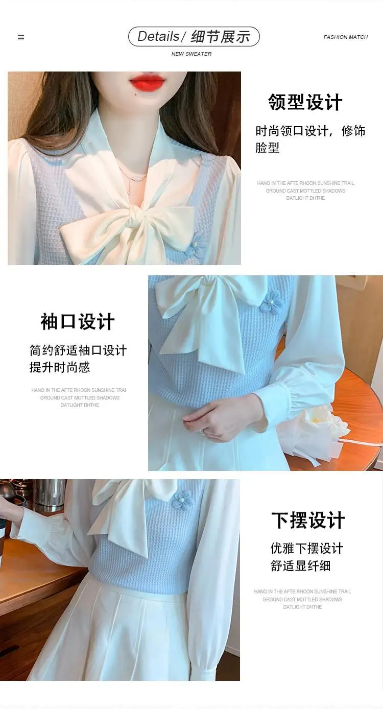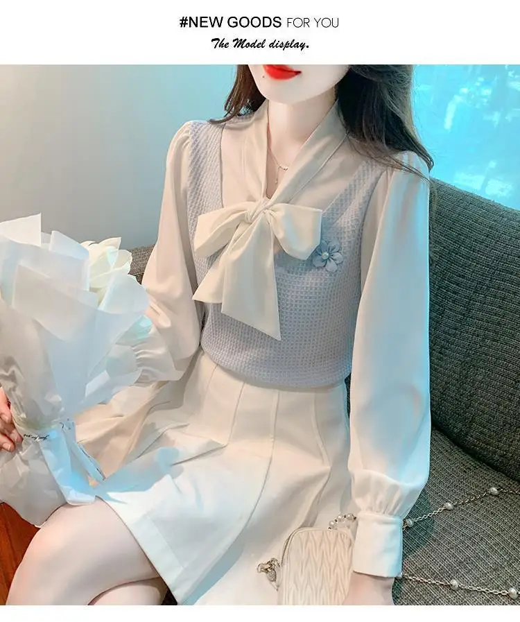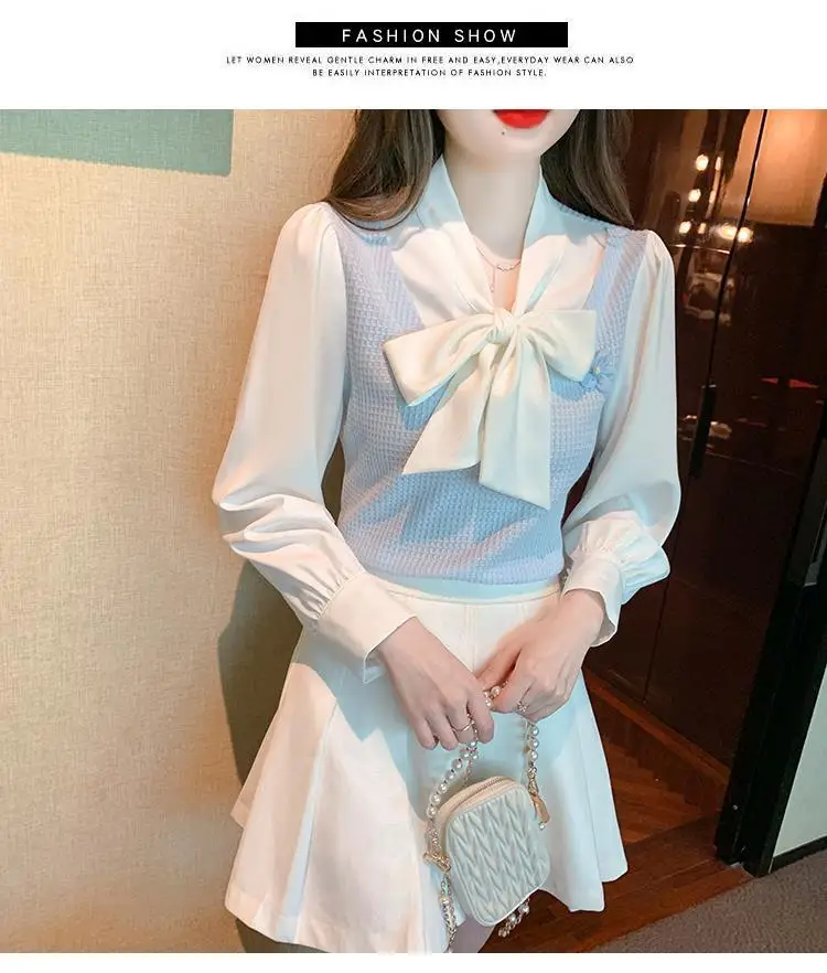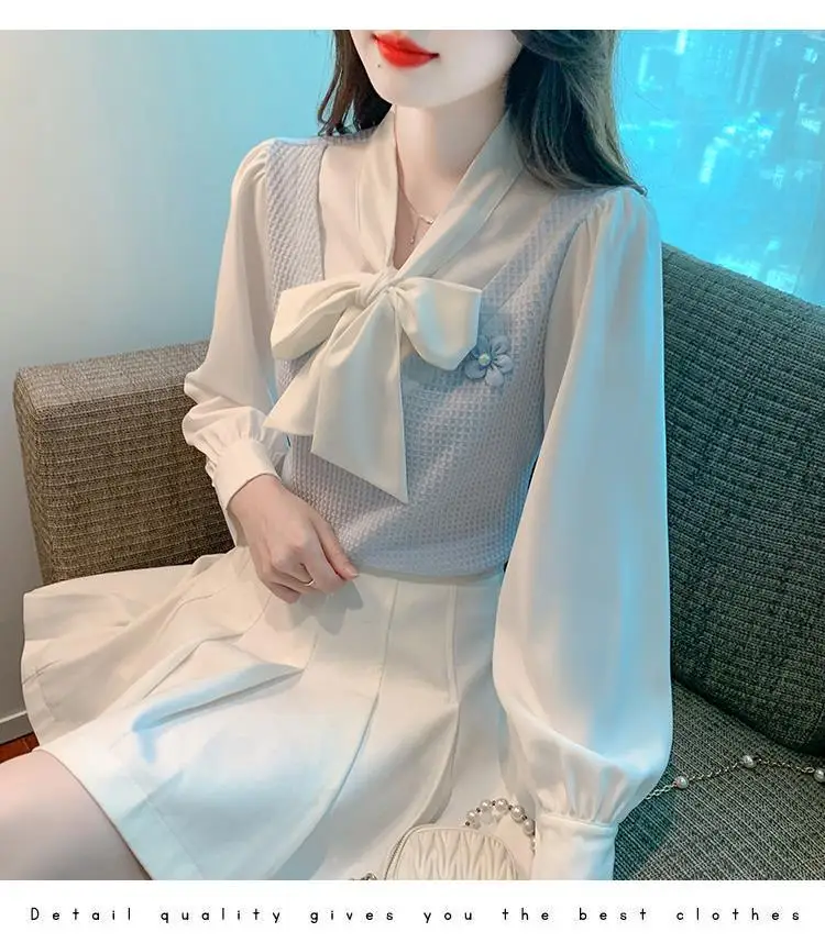 French Bow Chiffon Shirt for Petite Women Sweet and Elegant Top clothes
