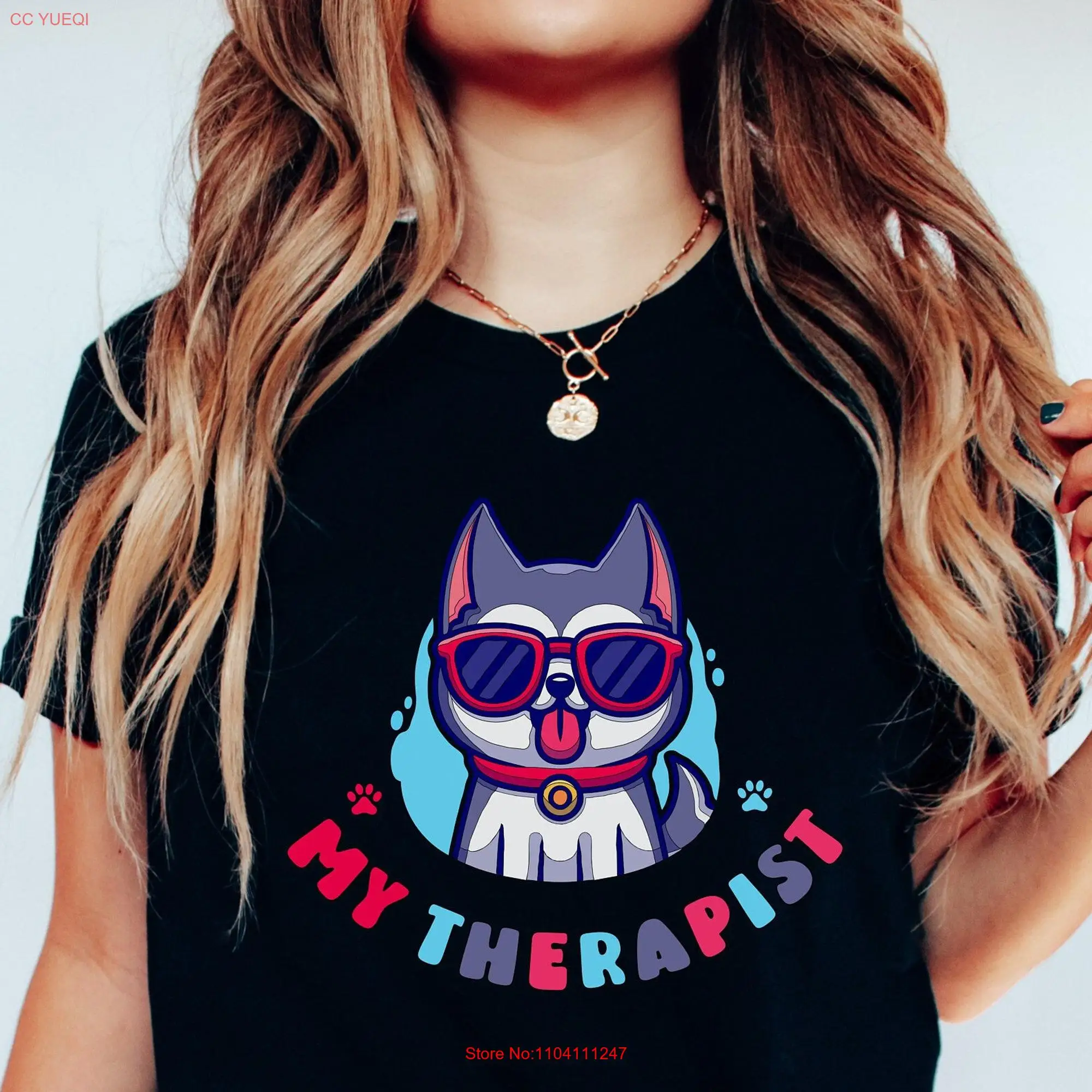 Funny Dog T Shirt My Therapist Has Paws Cute Paw Print Lover Perfect for Moms Dads Trainer Canine Apparel