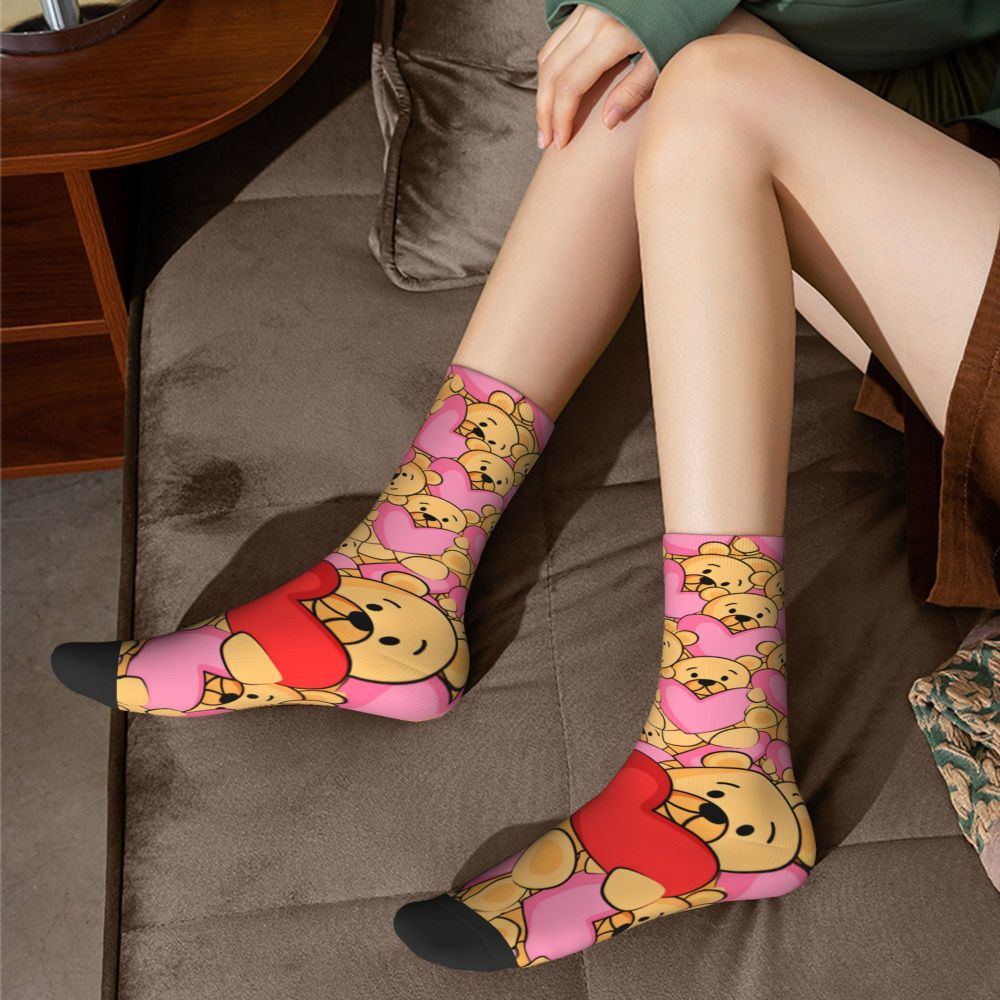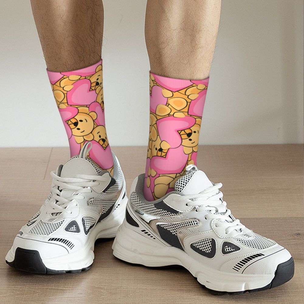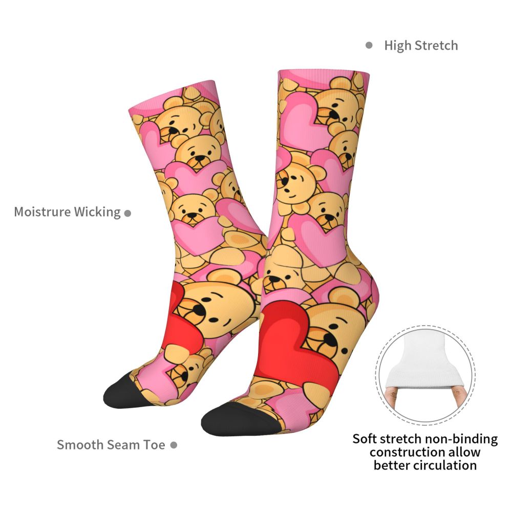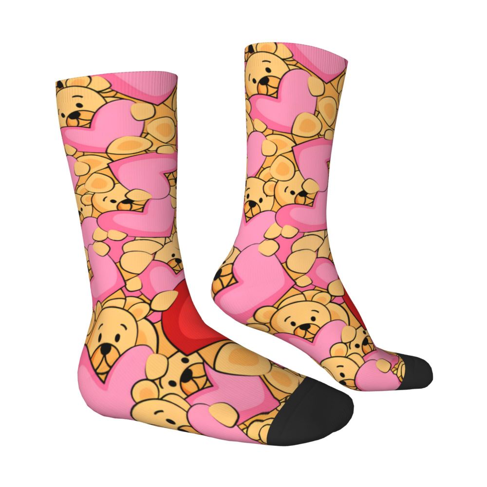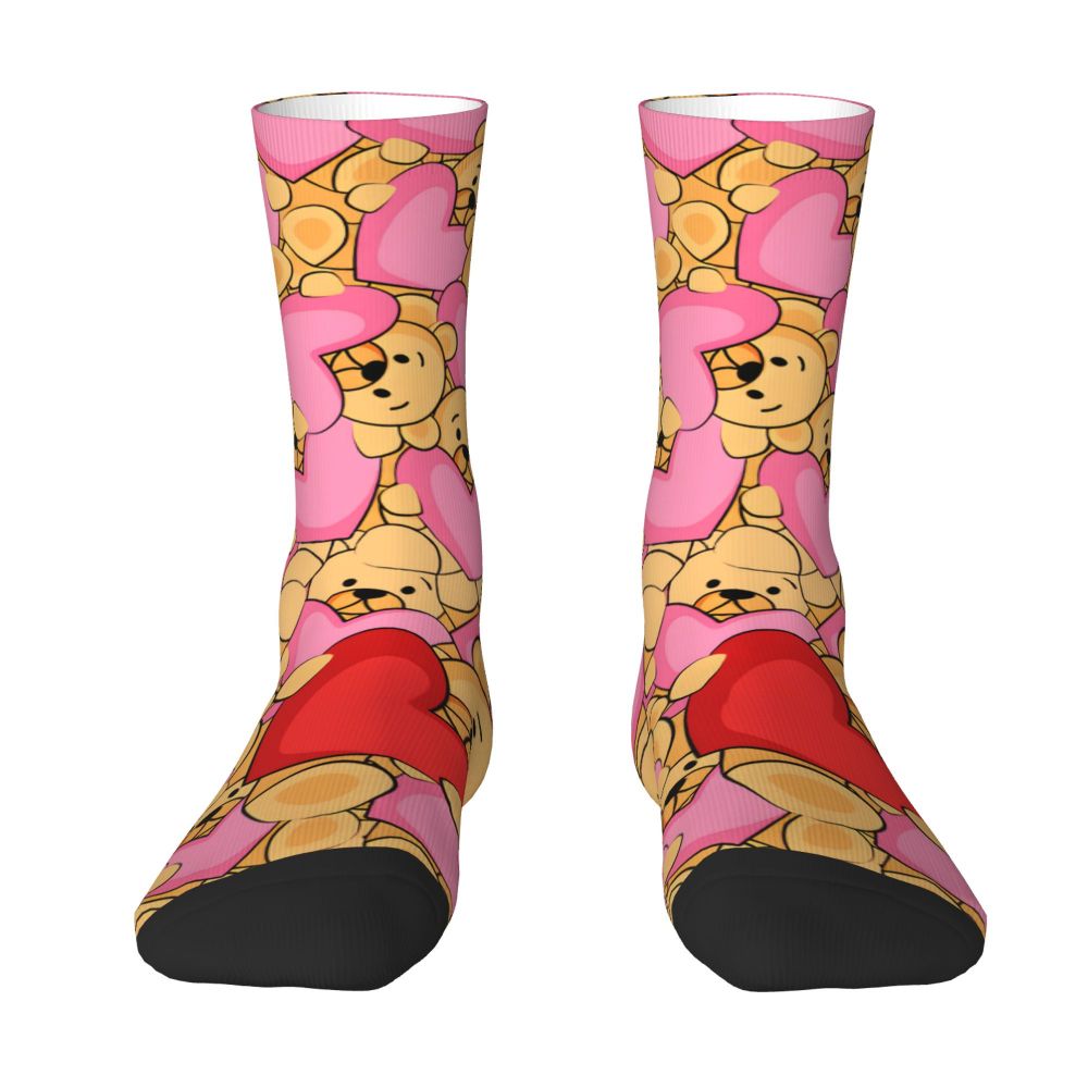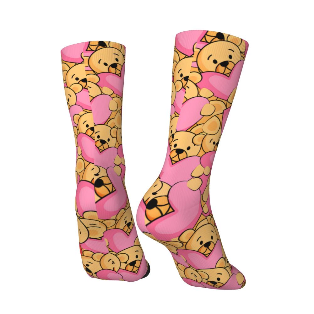 Funny Men's Socks Valentines Day Seamless Design Retro Harajuku Teddy Bear Hip Hop Seamless Pattern Crew Crazy Sock Gift Printed