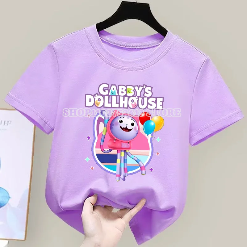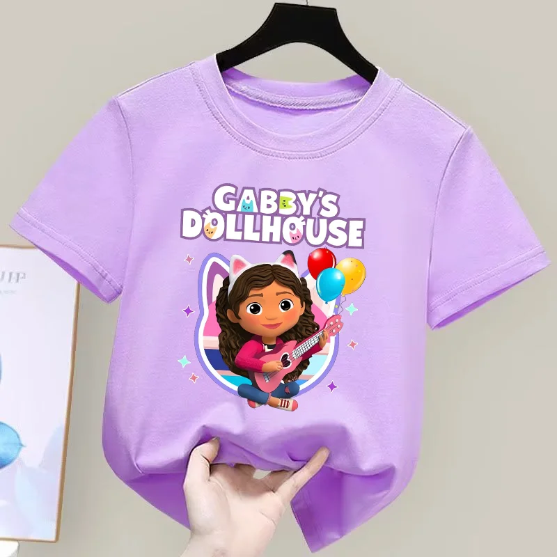 Gabby Dollhouse T-Shirt Anime Print Kleidung Mädchen Niedlich Cartoon Einfache Babykleidung Kind Lila Sommer T-Shirt Kinder Geburtstagsgeschenk