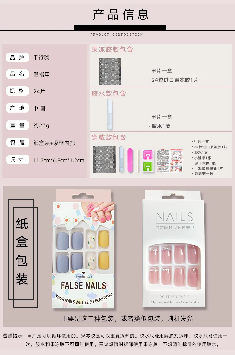 Non-toxic Plastic Materials: False nails made of resin, non-toxic, tasteless, won't hurt your hand. There are 24 fake nails available in 12 different sizes so you can choose the one that suits you best.