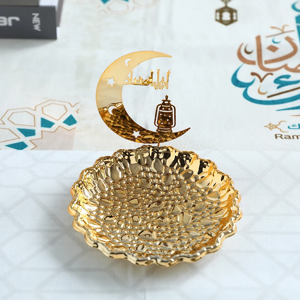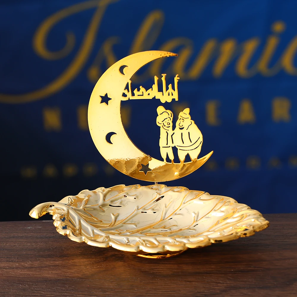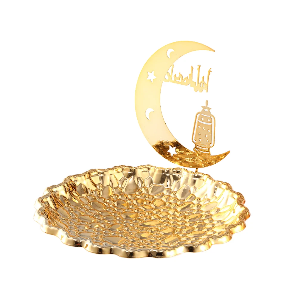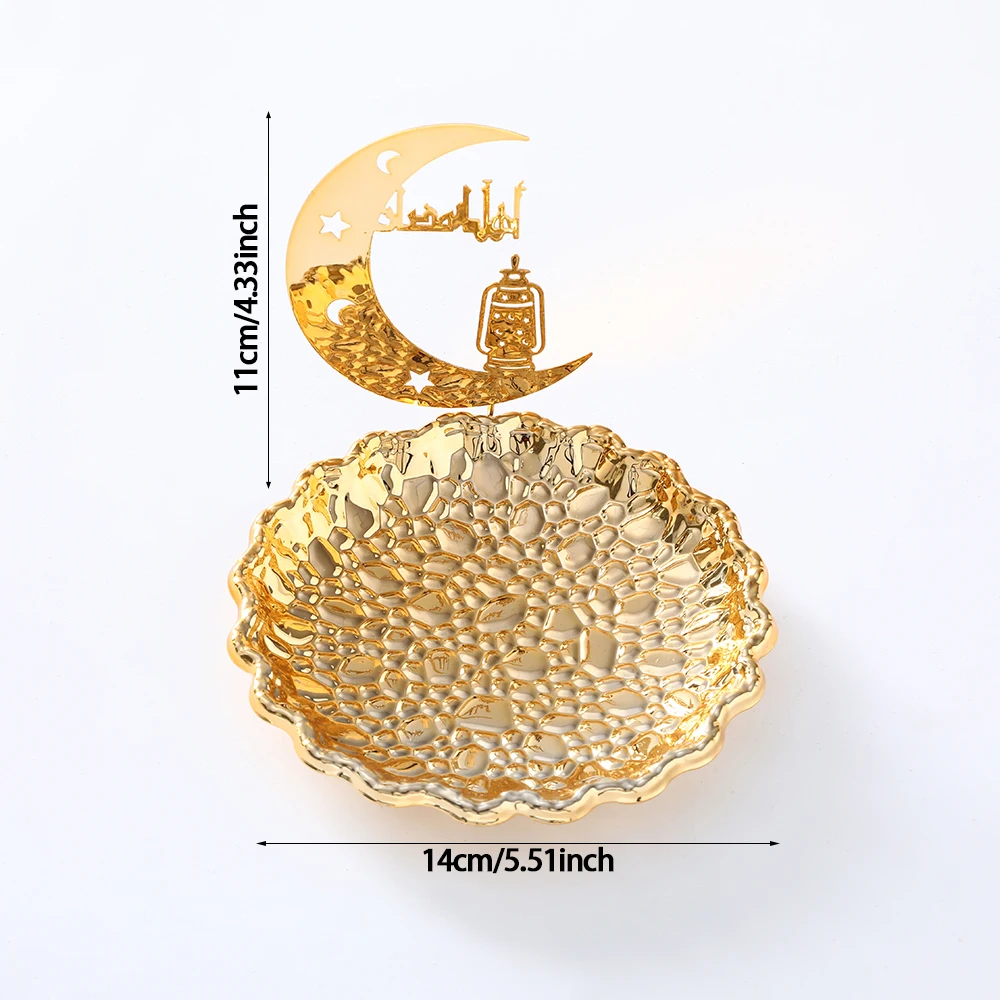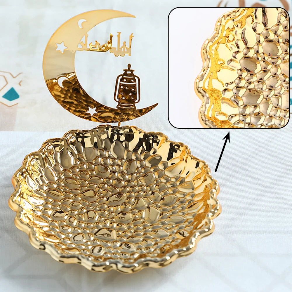 Gold Metal Ramadan Food Tray Eid Mubarak Dessert Fruit Plate Ramadan Decoration Islamic Muslim Festival Decor Gift Jewelry Plate