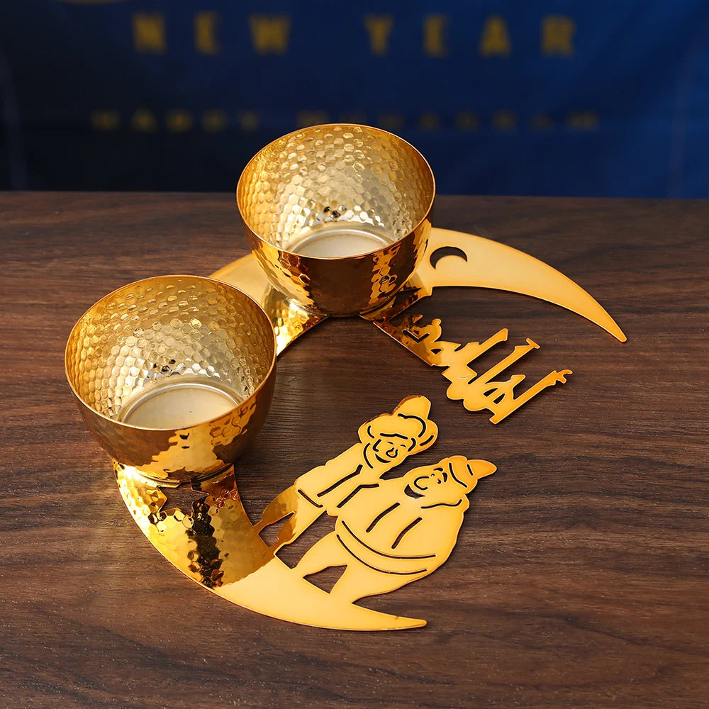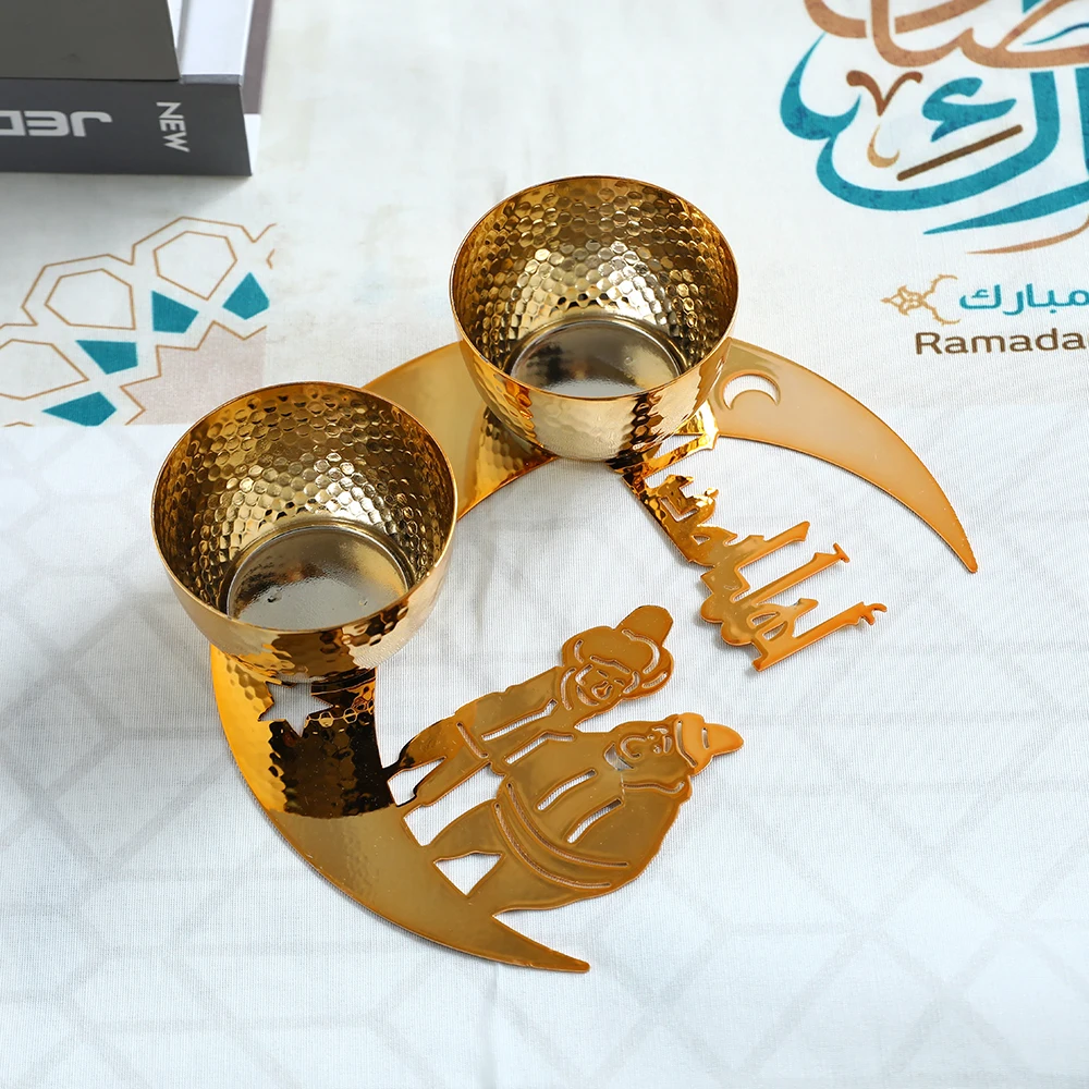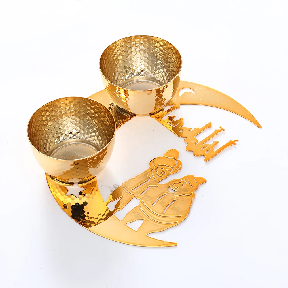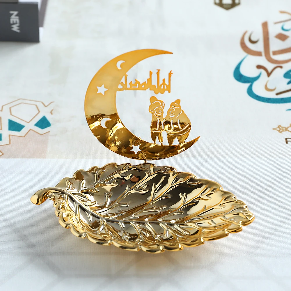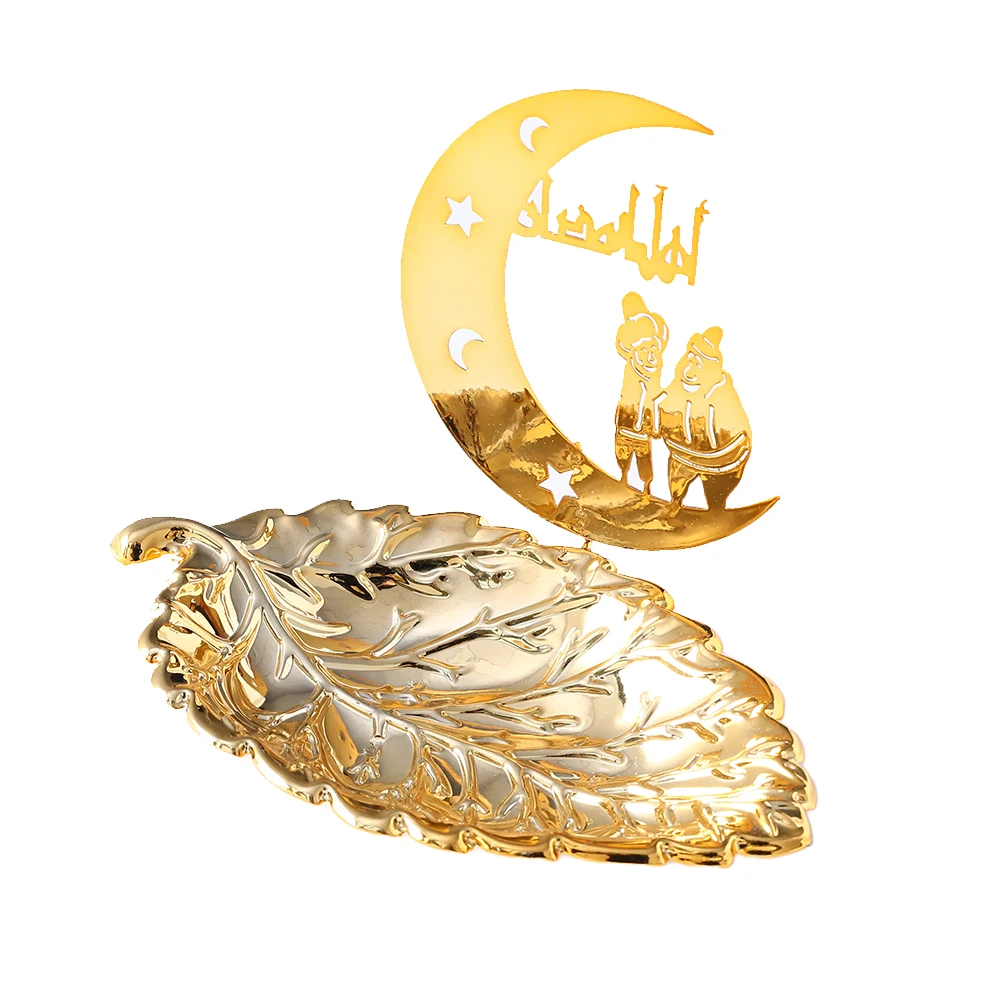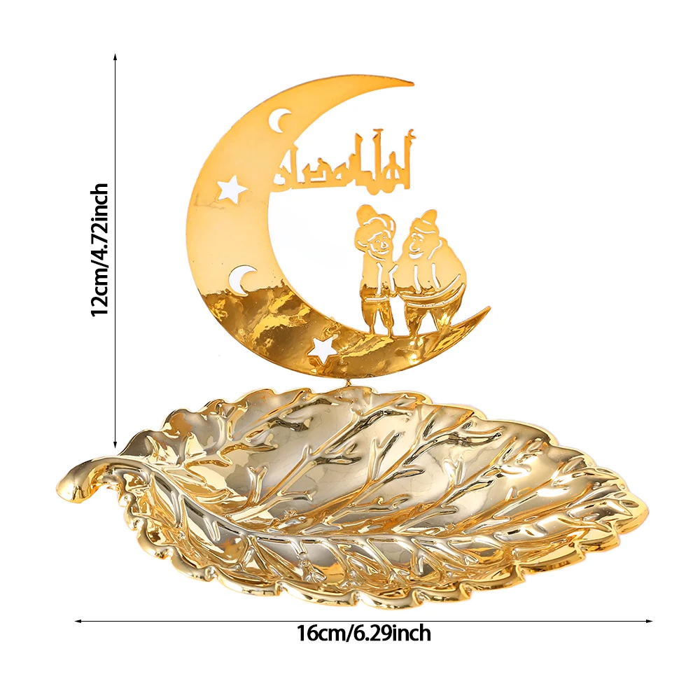 Gold Metal Ramadan Food Tray Eid Mubarak Dessert Fruit Plate Ramadan Decoration Islamic Muslim Festival Decor Gift Jewelry Plate