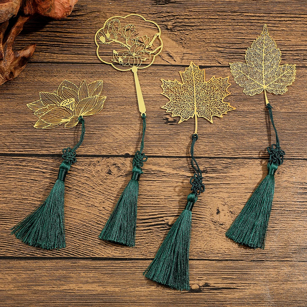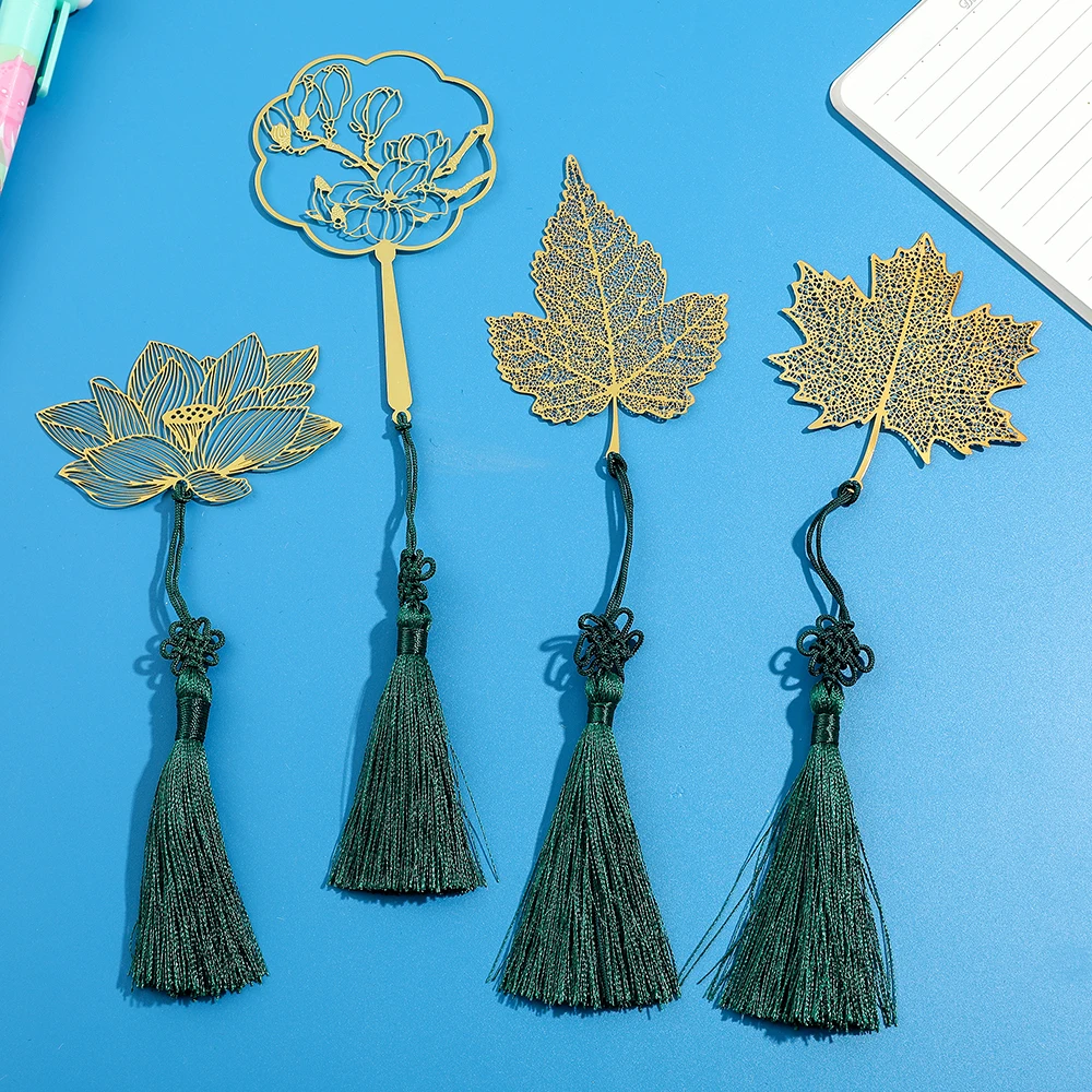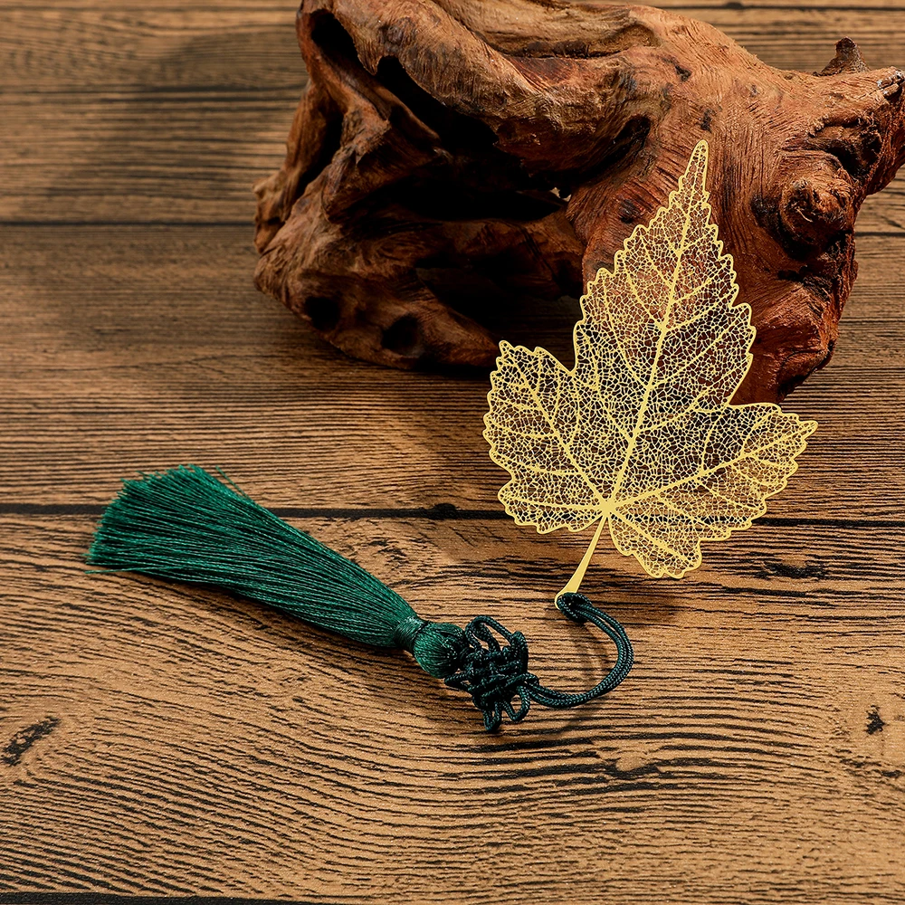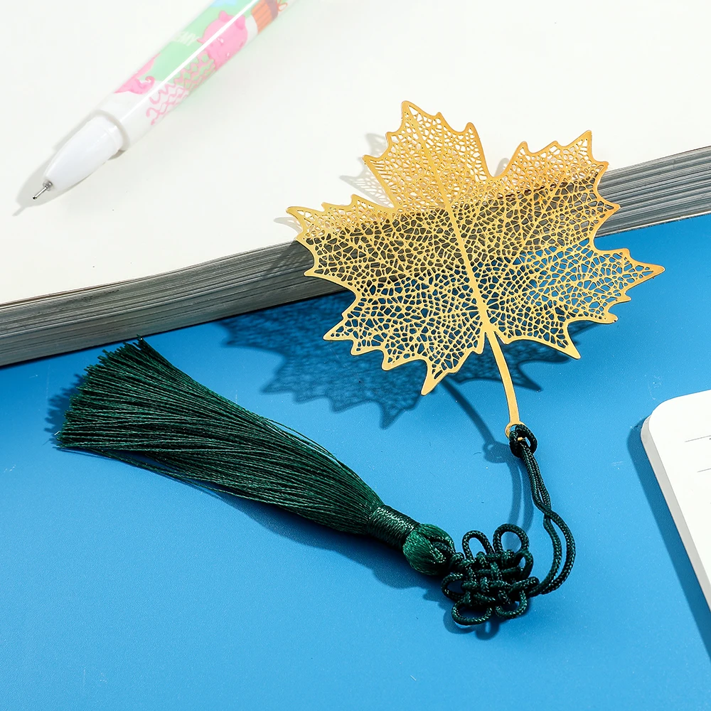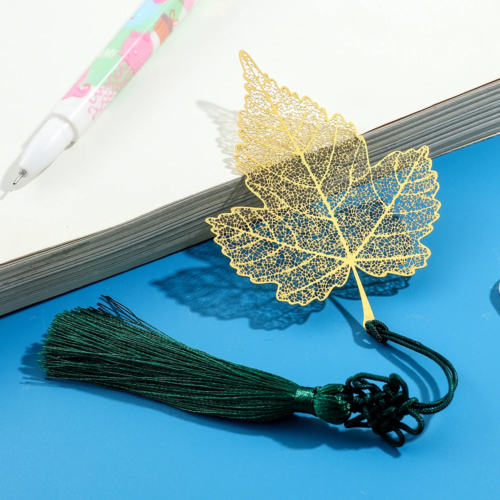 Golden Sycamore Leaves Tassels Hollow Out Bookmark Stainless Steel Page Marker Supplies Stationery Bookmark for Teachers Student