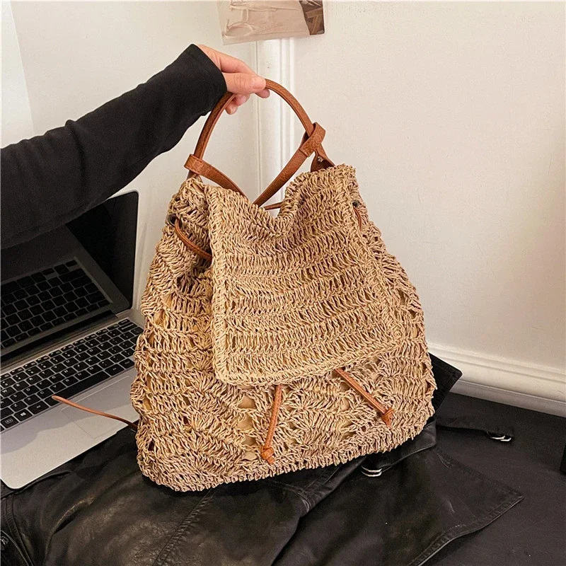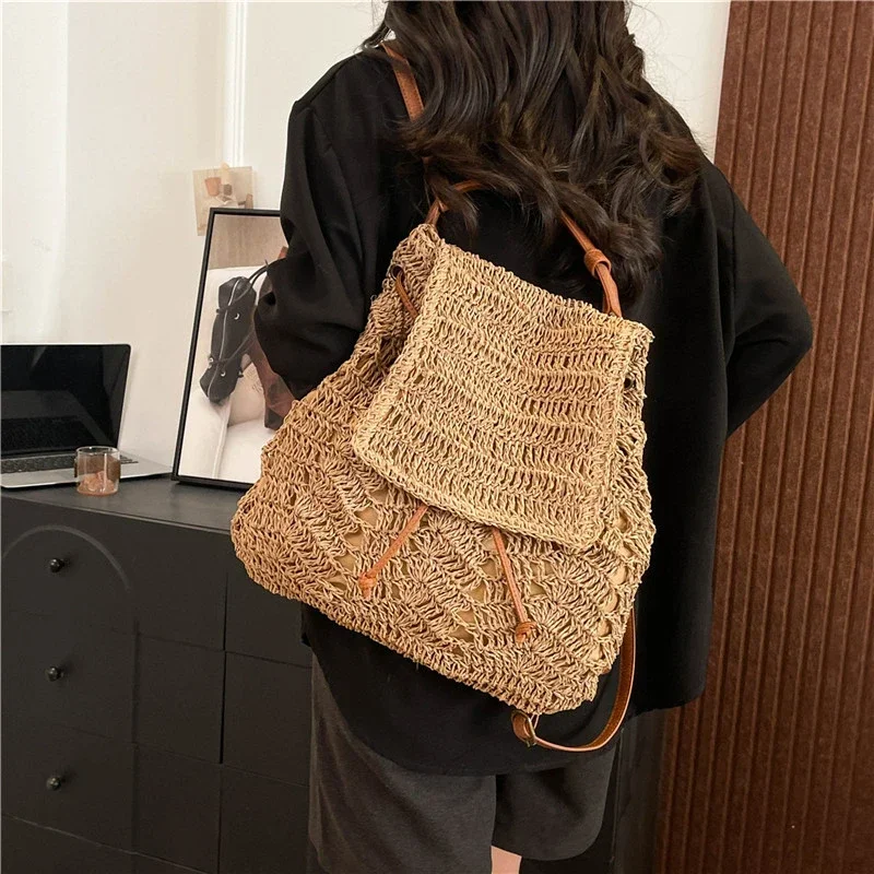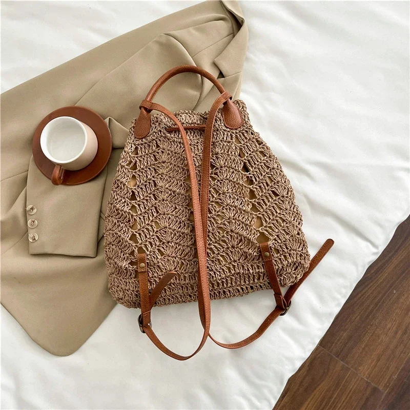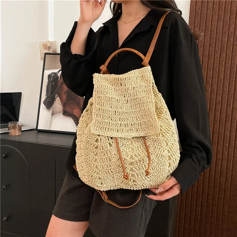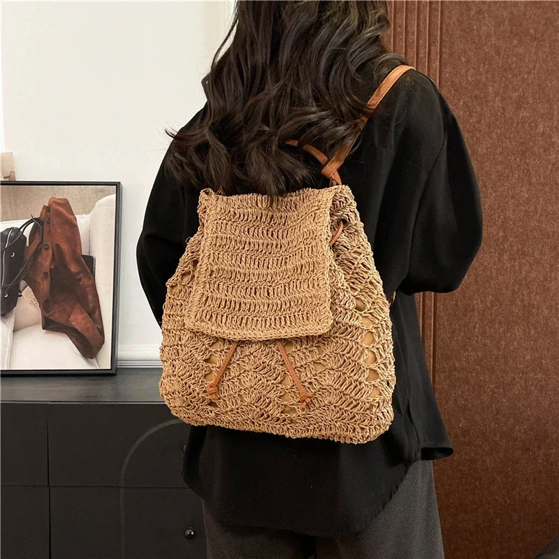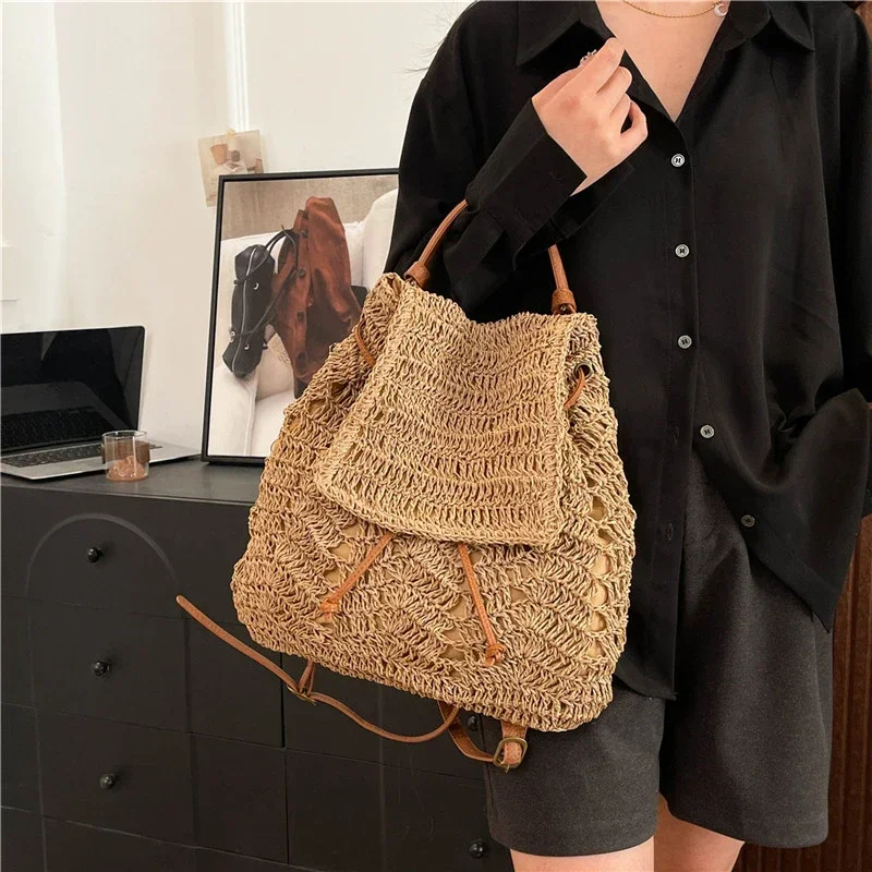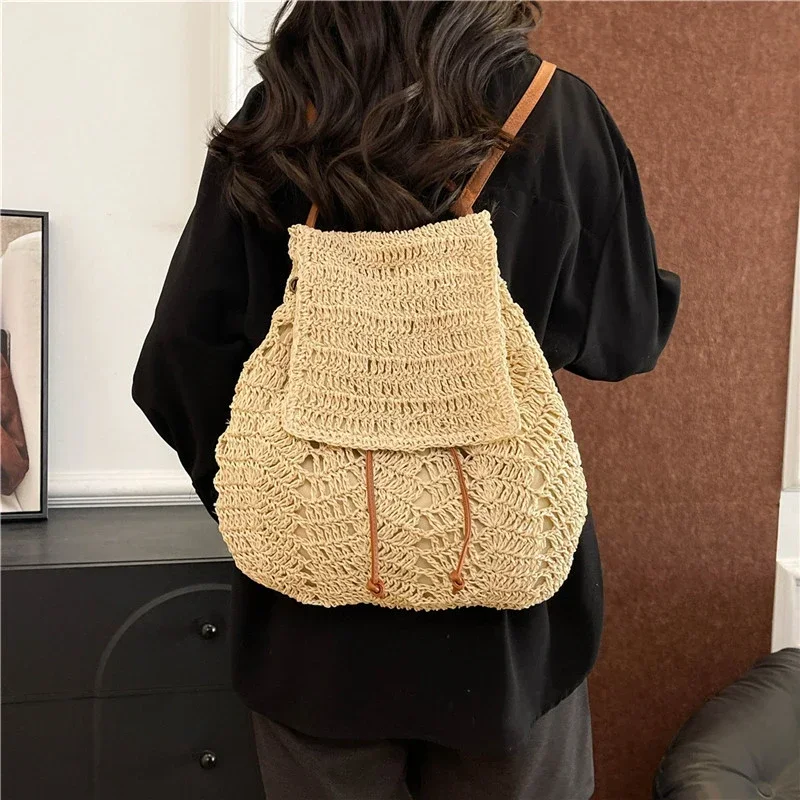 Handmade Woving Women's Backpack Beach Shoulder Bag For Ladies Designer Straw Handbag Travel Anti Theft Backbag Crossbody Purse