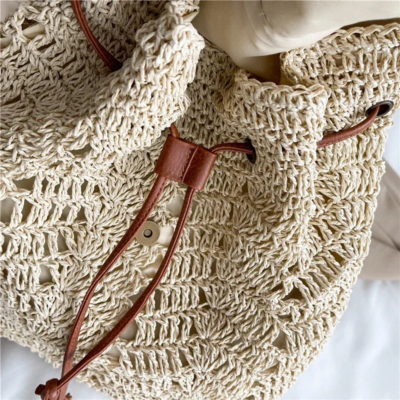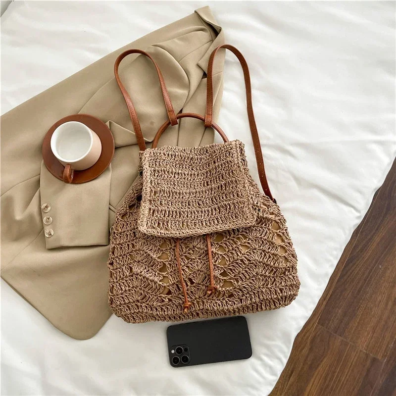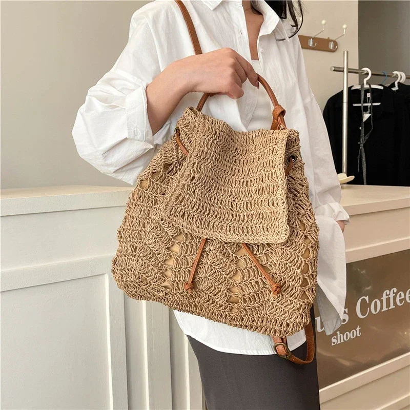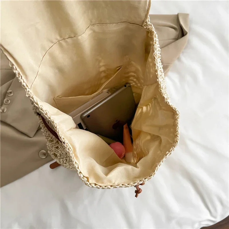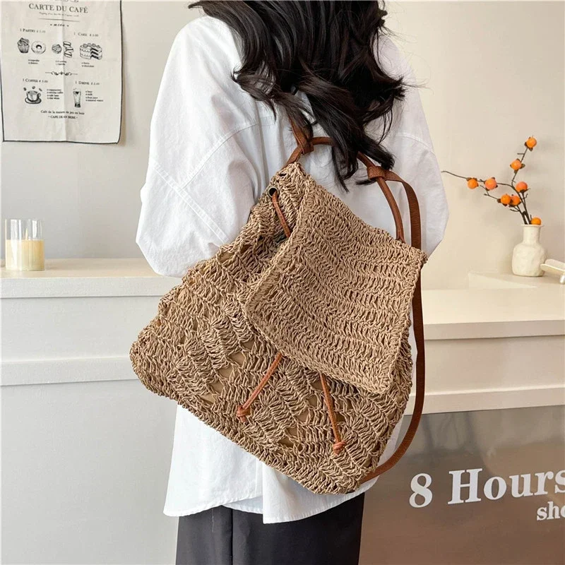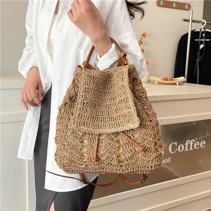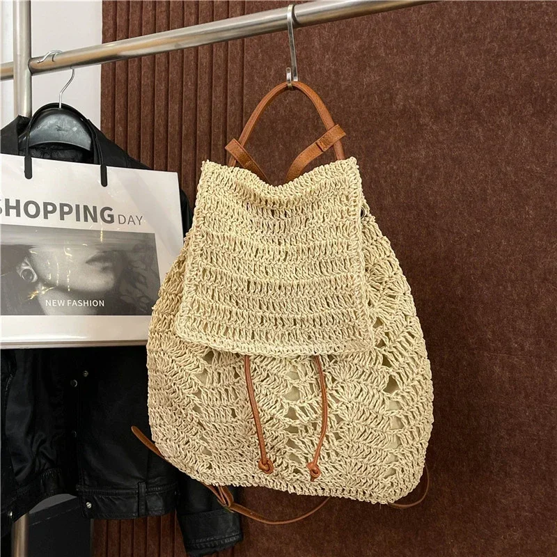 Handmade Woving Women's Backpack Beach Shoulder Bag For Ladies Designer Straw Handbag Travel Anti Theft Backbag Crossbody Purse