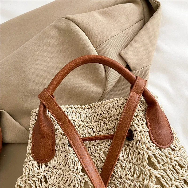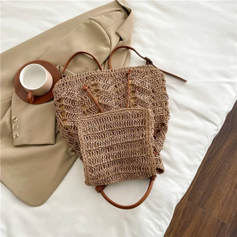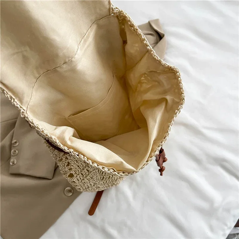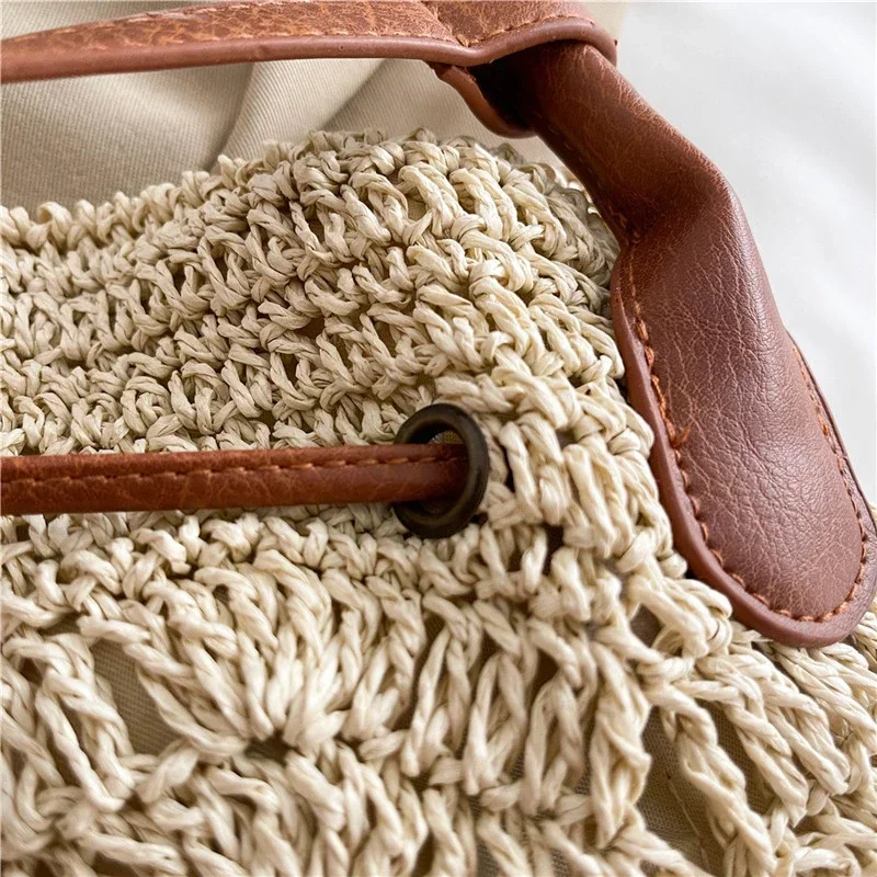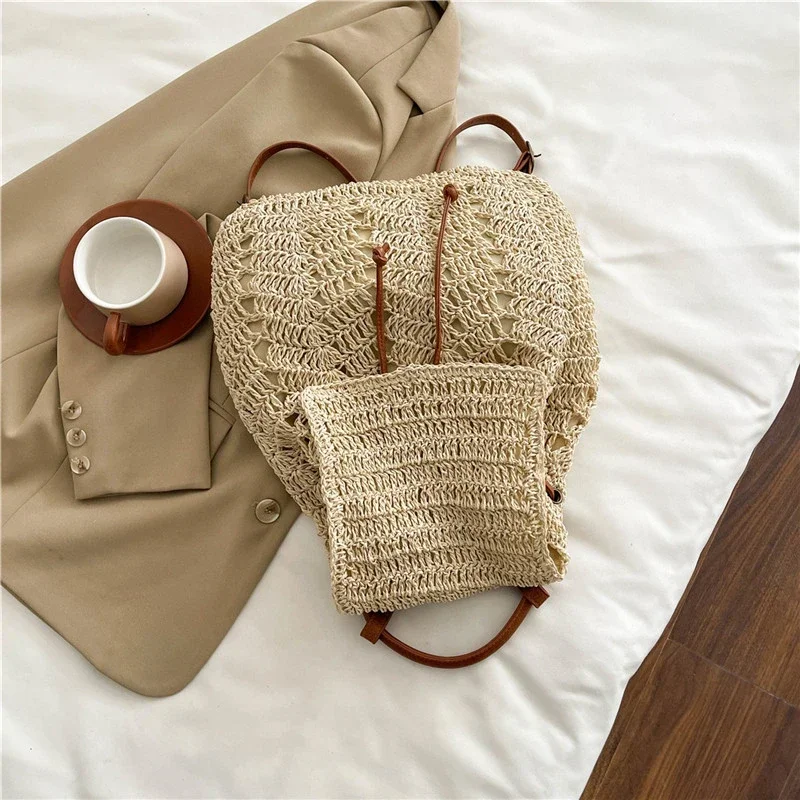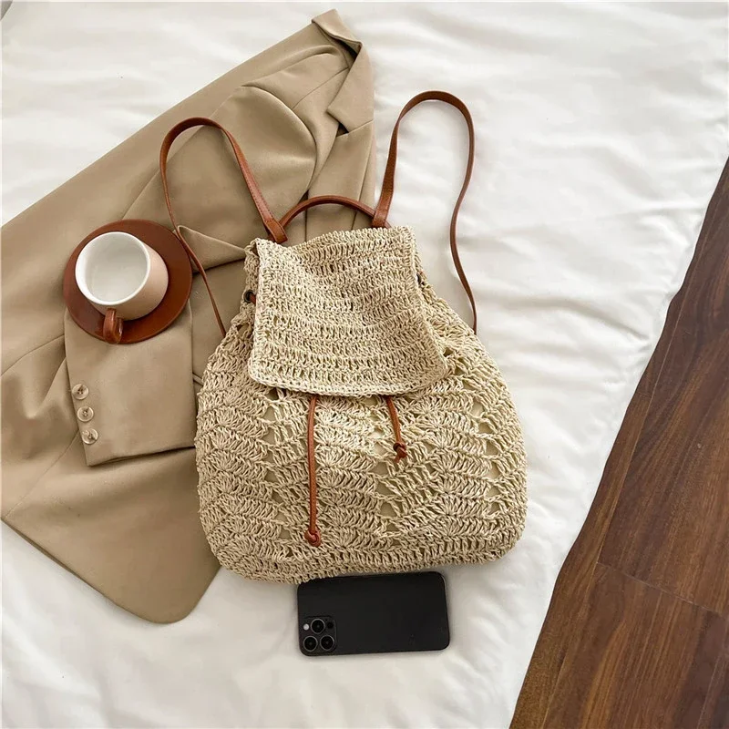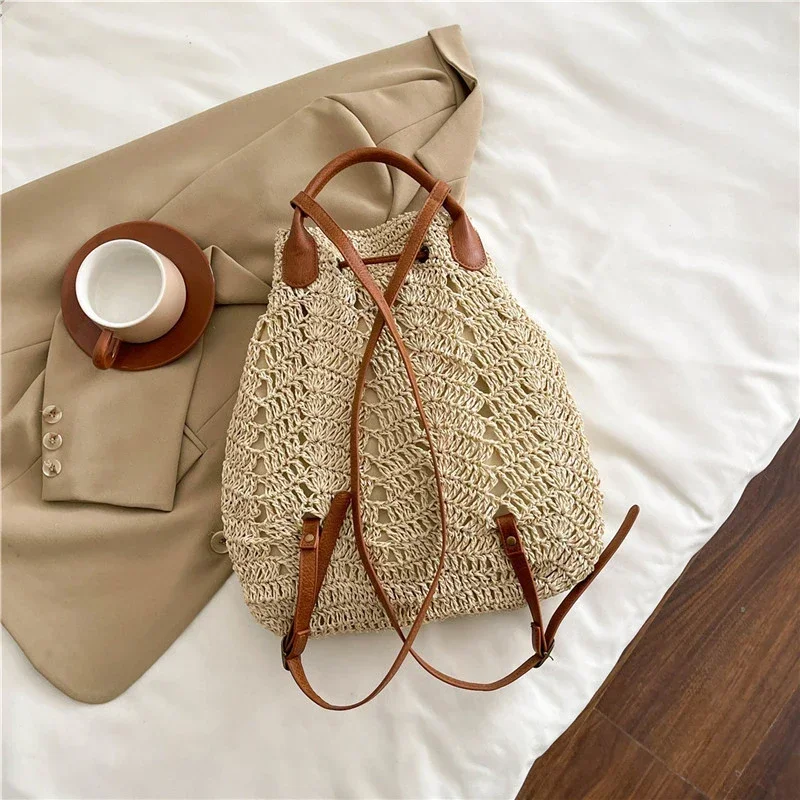 Handmade Woving Women's Backpack Beach Shoulder Bag For Ladies Designer Straw Handbag Travel Anti Theft Backbag Crossbody Purse