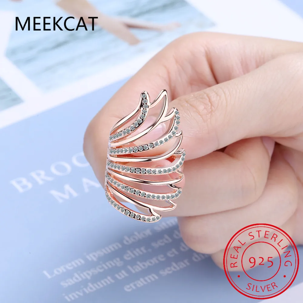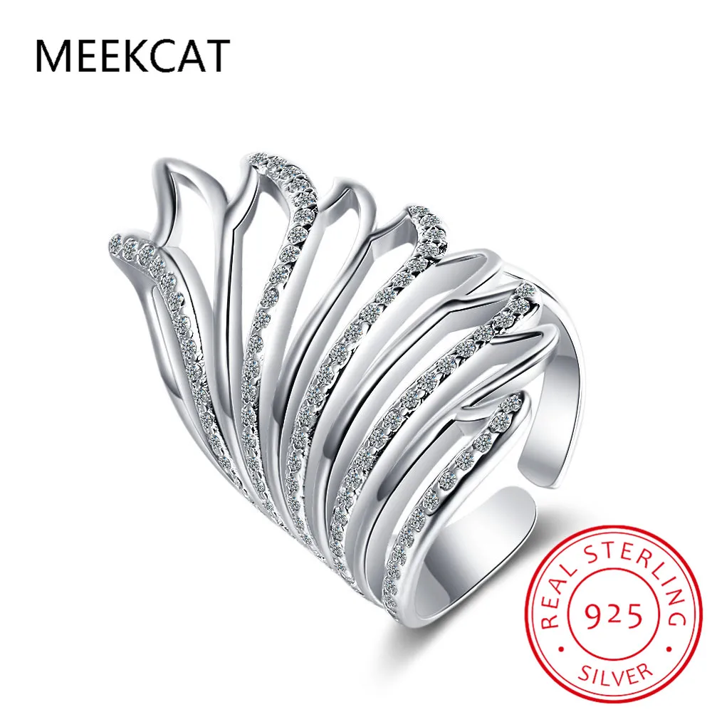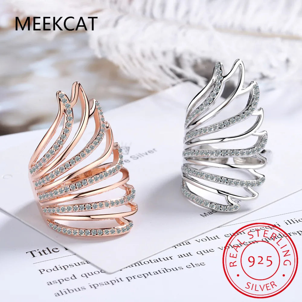 Hot Sale Authentic 925 Sterling Silver Feather Wings Adjustable Finger Ring for Women Sterling Silver Jewelry Gift SCR313
