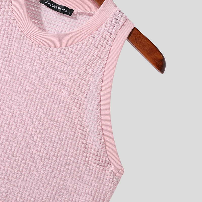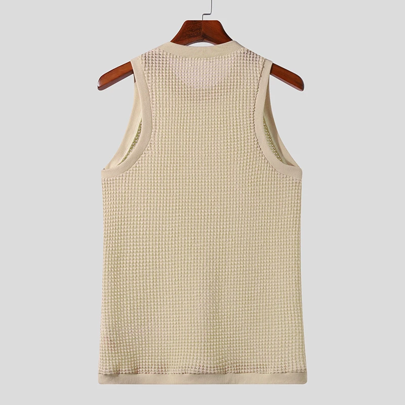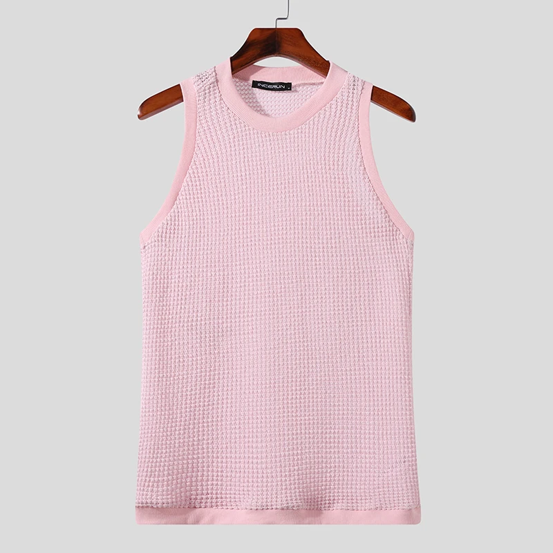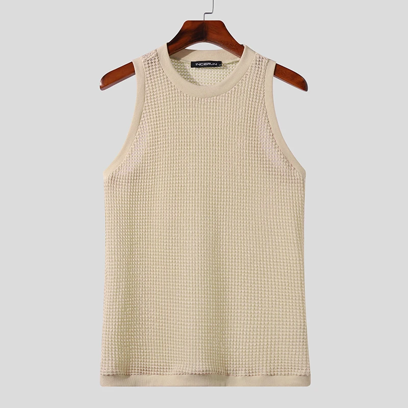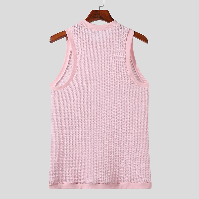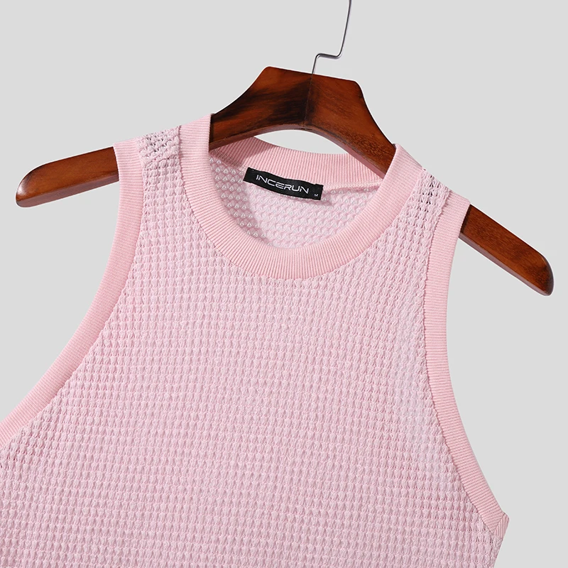 INCERUN Men Tank Tops Mesh Hollow Out See Through Solid Vests Summer Streetwear 2024 Fitness Fashion Casual Men Clothing S-5XL