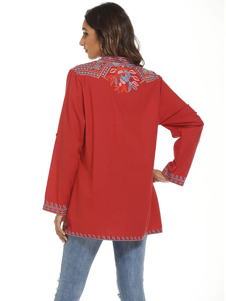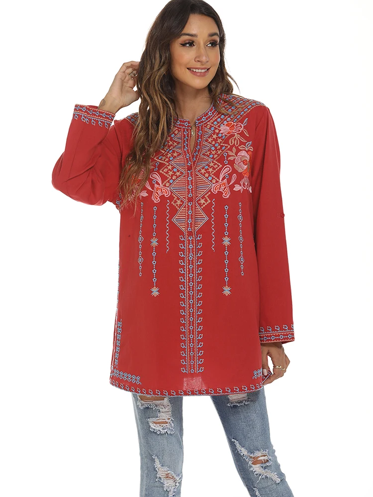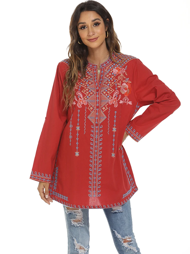 KHALEE YOSE Vintage Floral Embroidery Blouses Shirt Boho Mexican Shirts Autumn Long Sleeve 2xl 3xl Ethnic Hippie Woman Tops