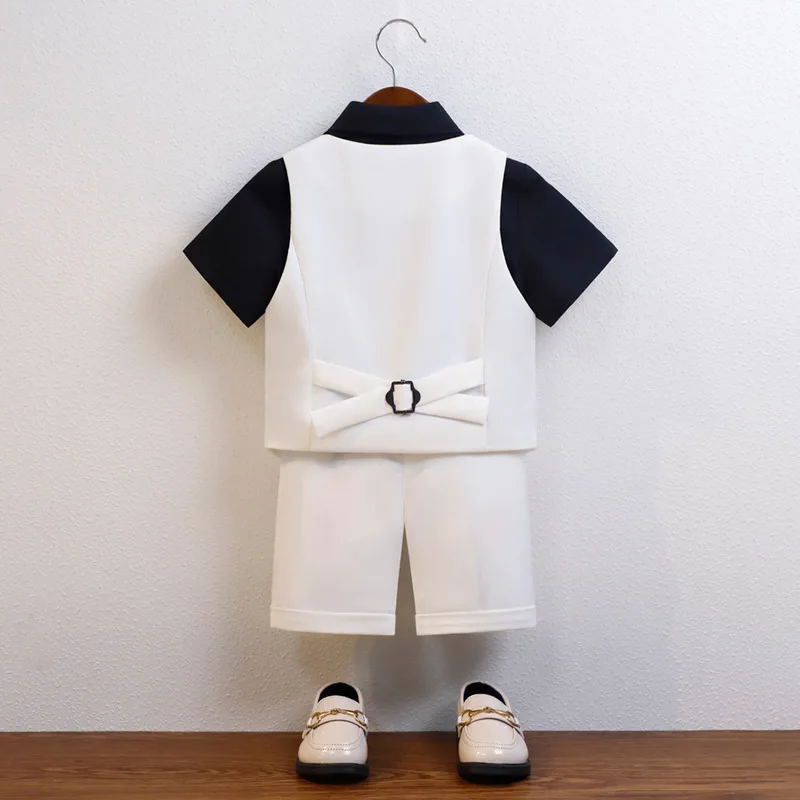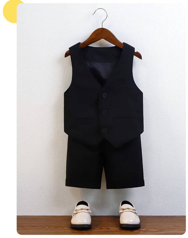 Kids Cool Vest Shirt Shorts Bowtie Ceremony Costume Boys Silm Fit Wedding Dress Chilren's Host Performance Costome