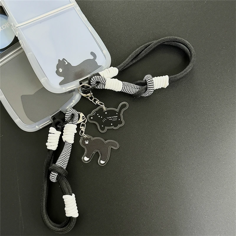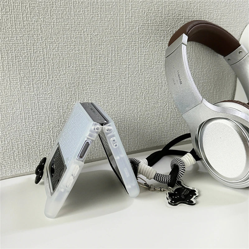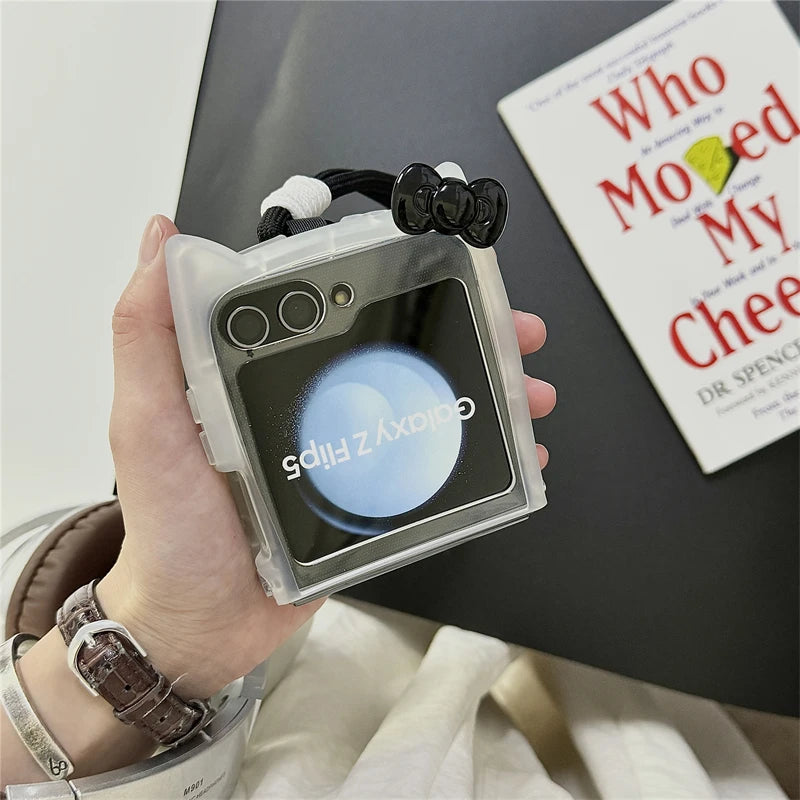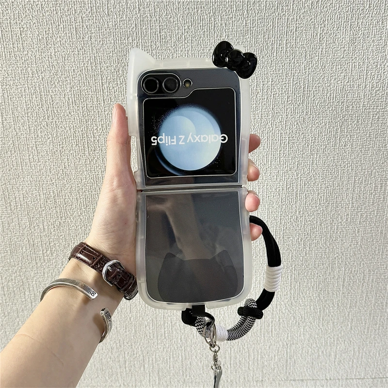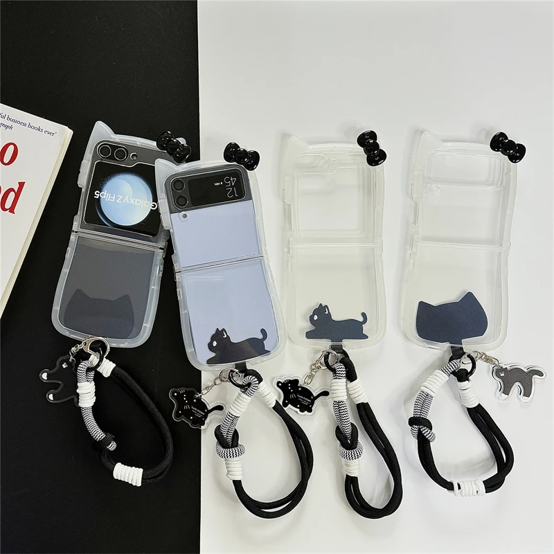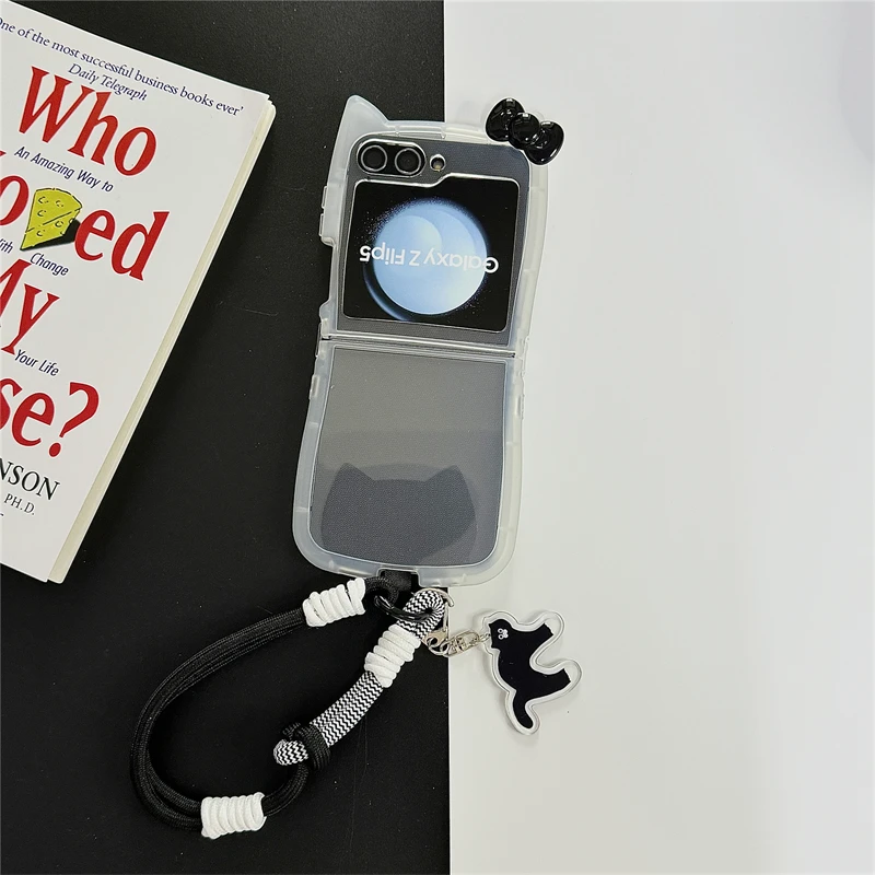 Korean Cute 3D Cat Phone Case For Samsung Galaxy Z Flip 6 5 4 Z Flip5 Flip6 Flip4 5G Cover with Hand Strap Pendant Silicone Capa