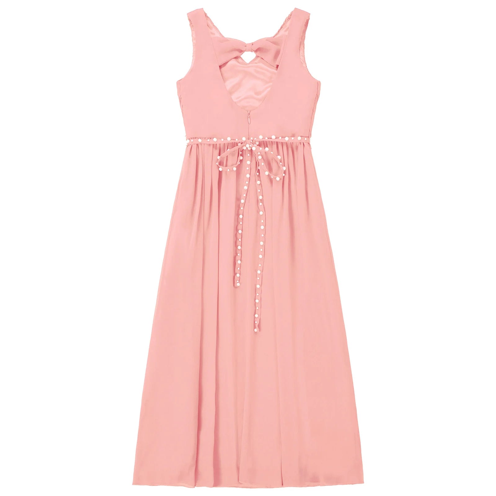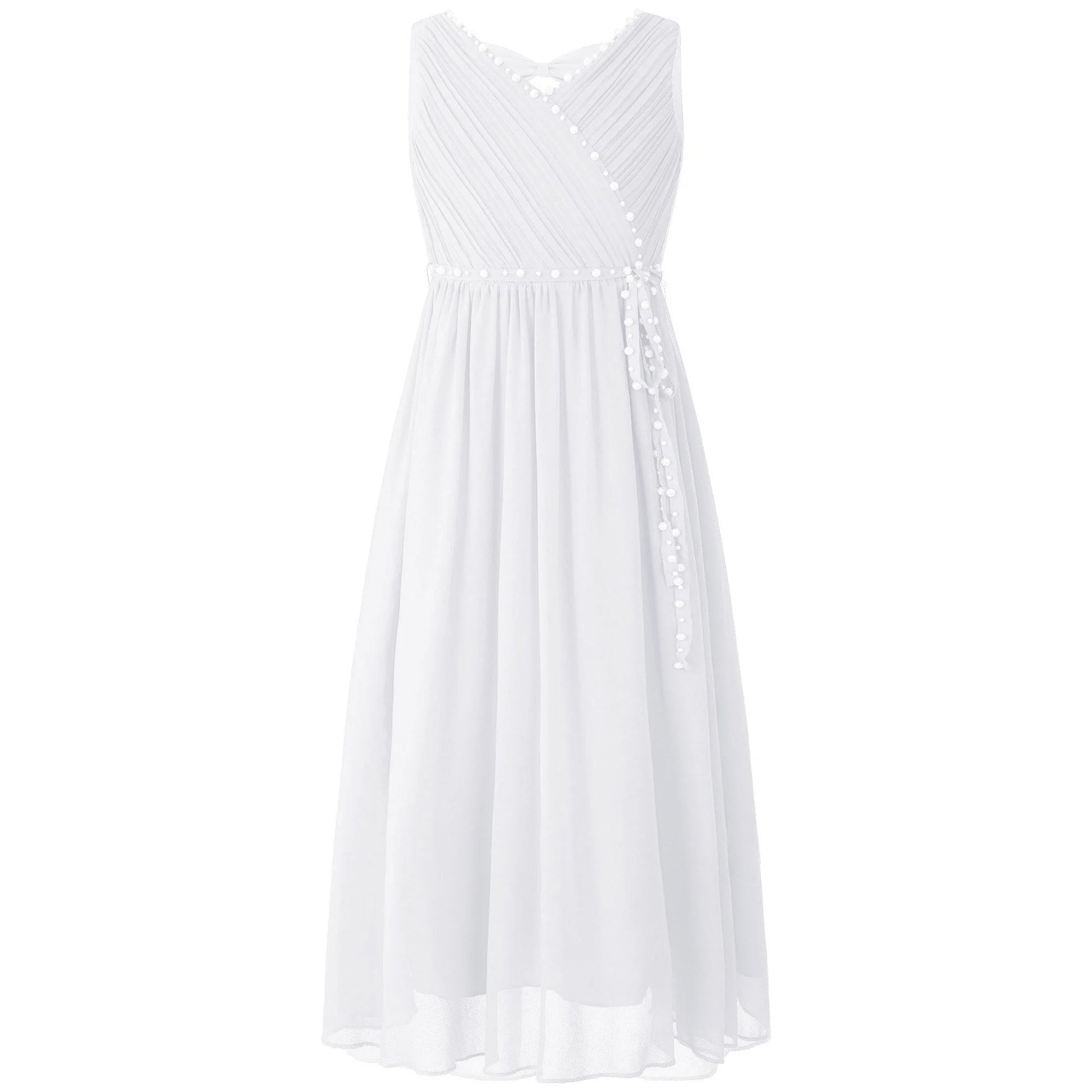 Pearls beaded adorned at neckline and sash, and the sash is detachable, making girls look elegant and attractive.