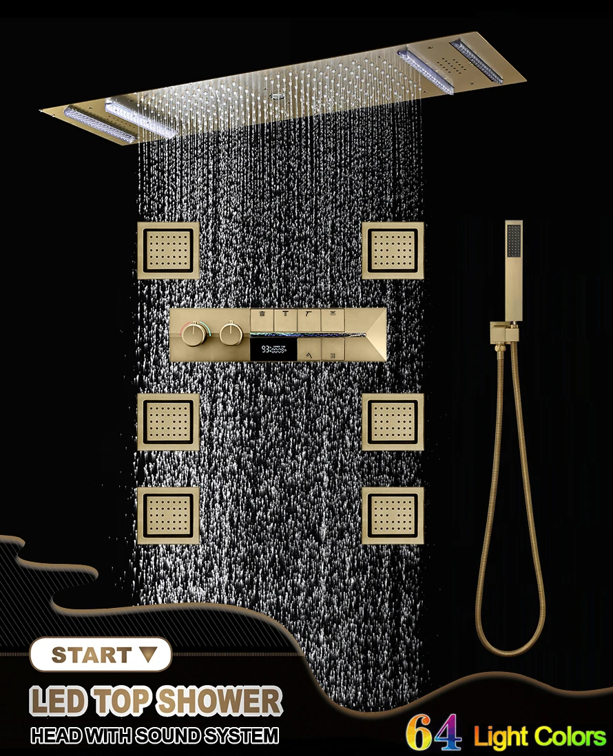 M Boenn Emotional Appeal Paar Musik Spa Doppelter Regenduschkopf Badezimmer Duschsystem Druckknopf Typ Thermostat Armaturen