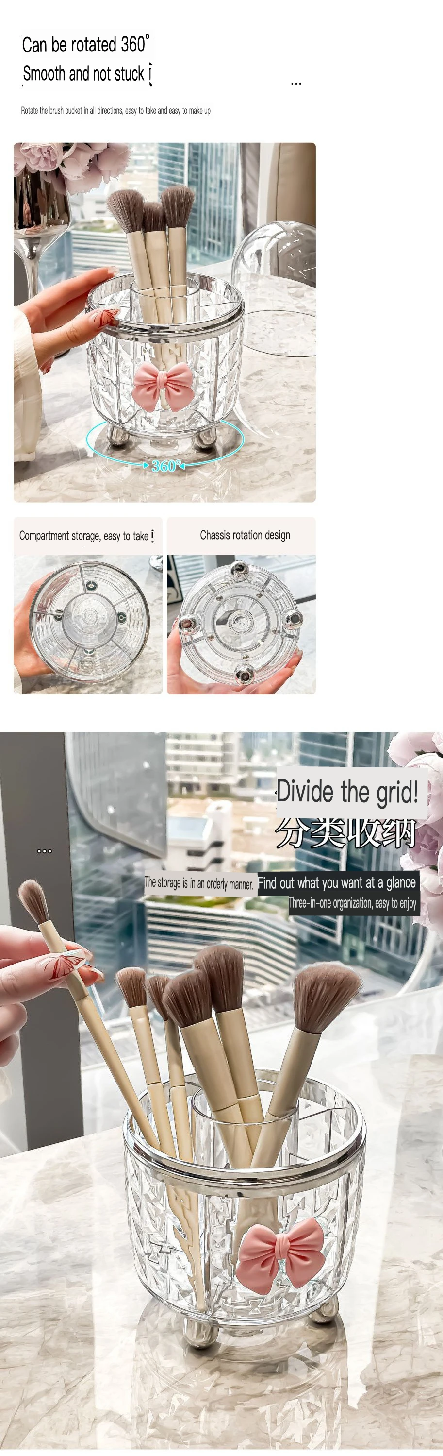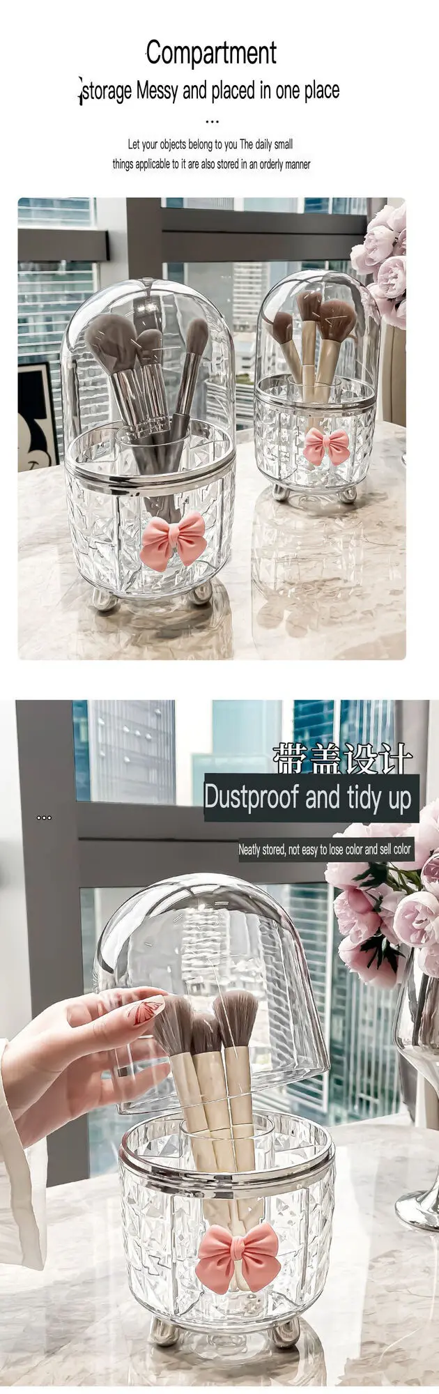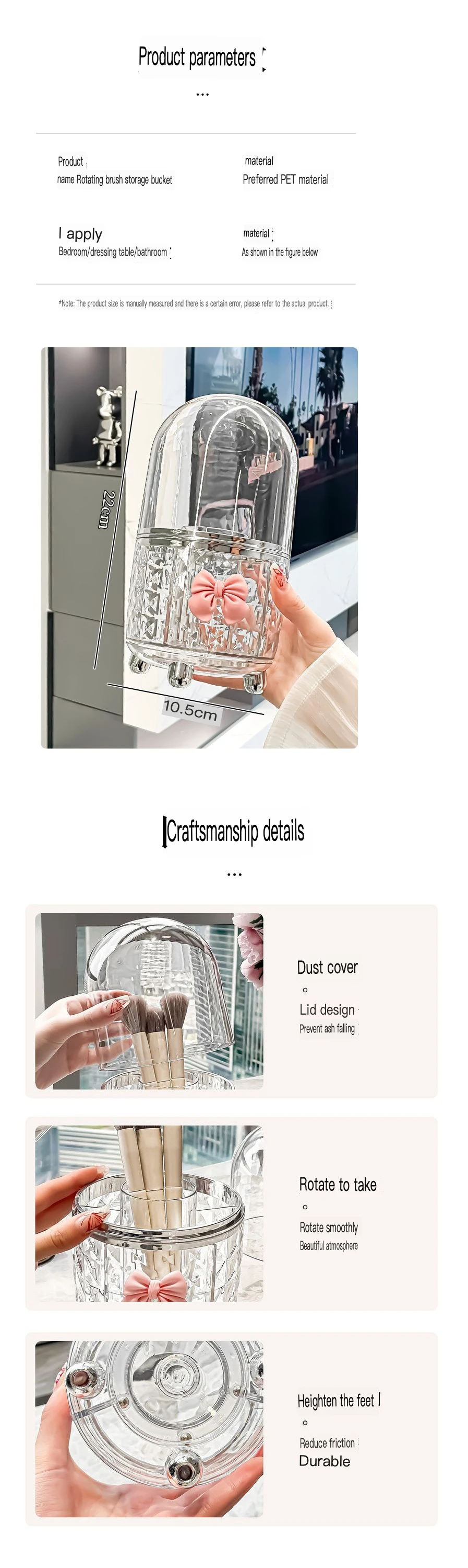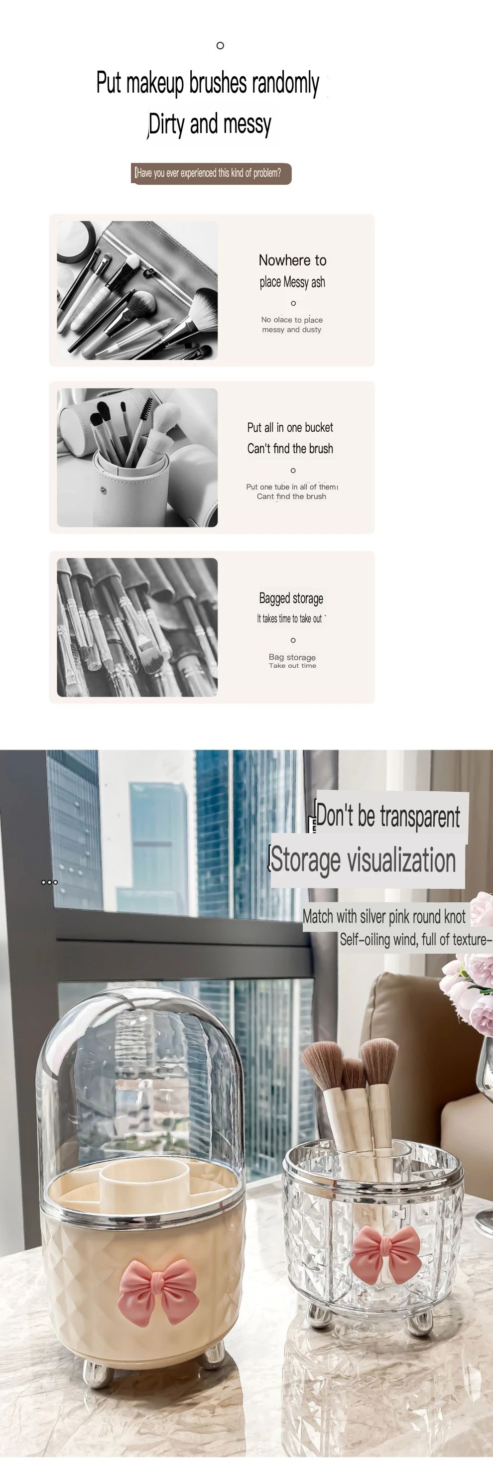 Makeup Storage Case Rotating Dustproof Makeup Brush Storage Container Pen Brush Bucket Dresser Desktop Lipstick Storage Rack