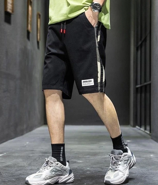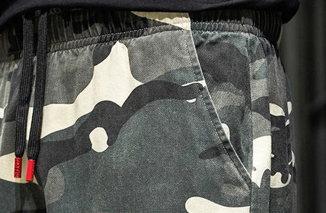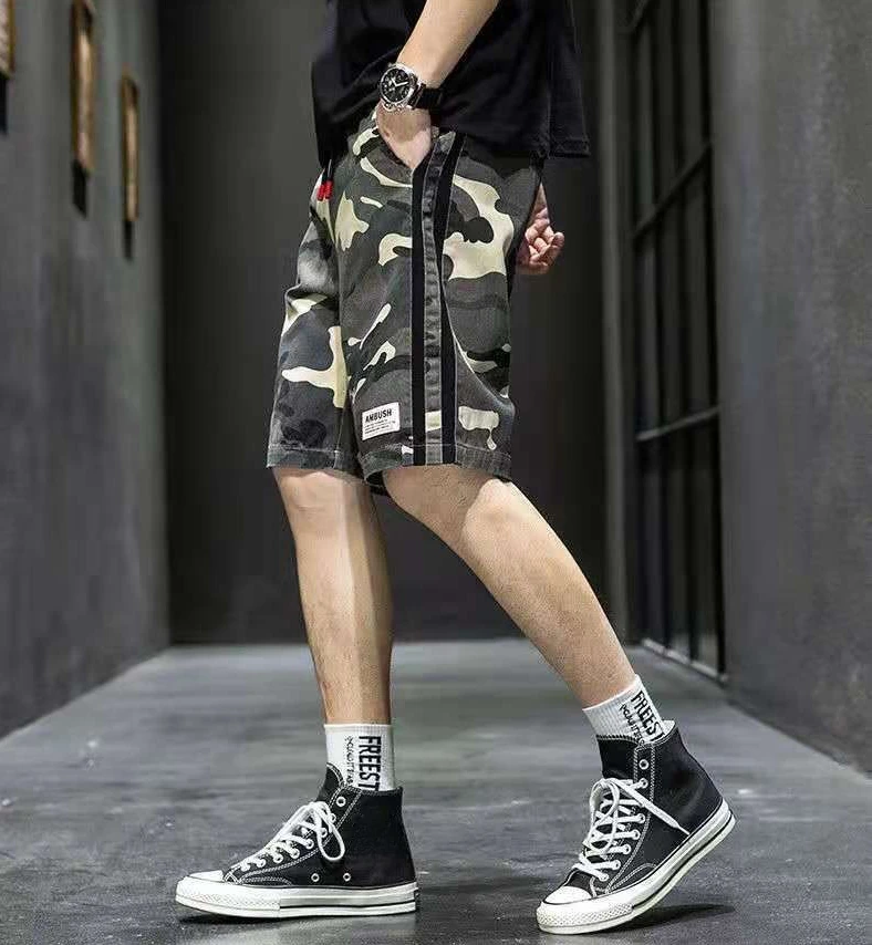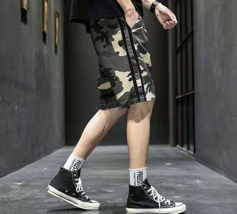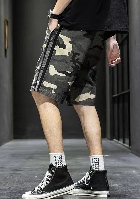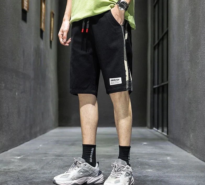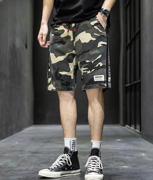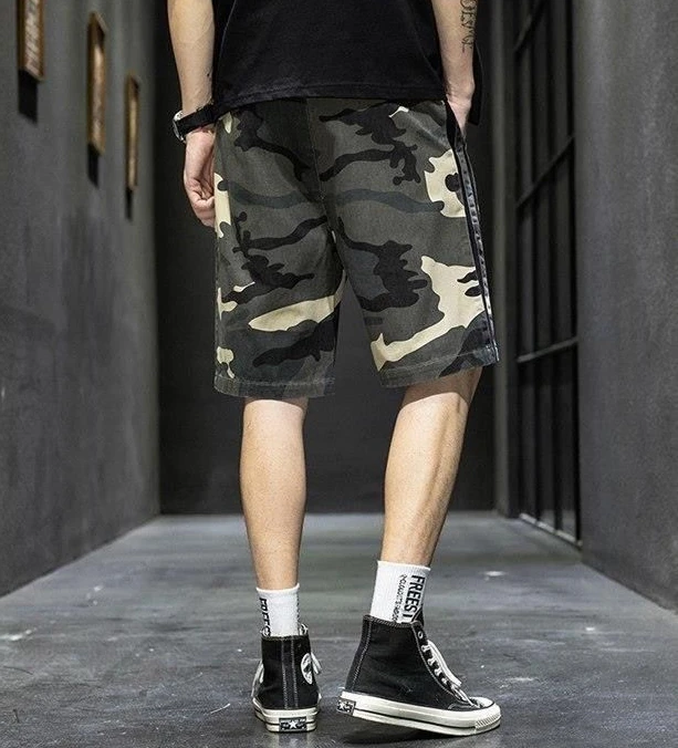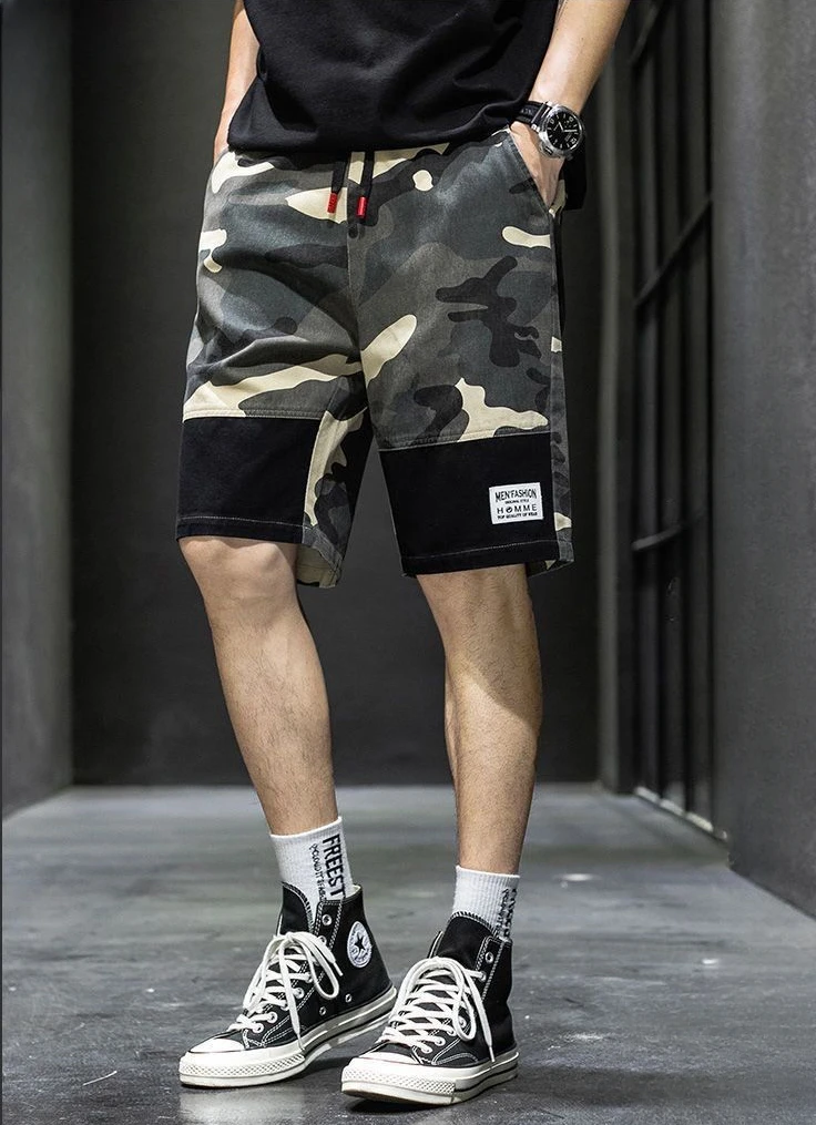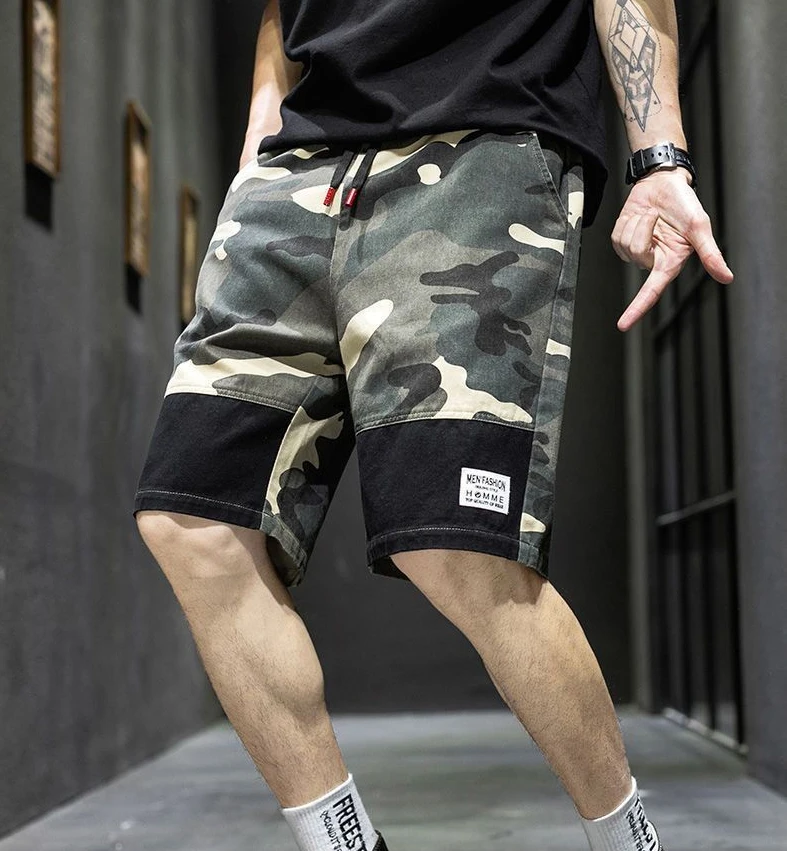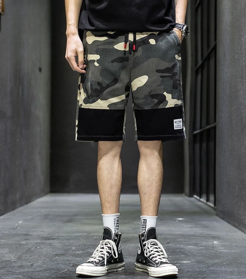 Male Short Pants Camouflage Spliced Camo Oversize Black Men's Cargo Shorts Big Size with Draw String Homme Streetwear Designer